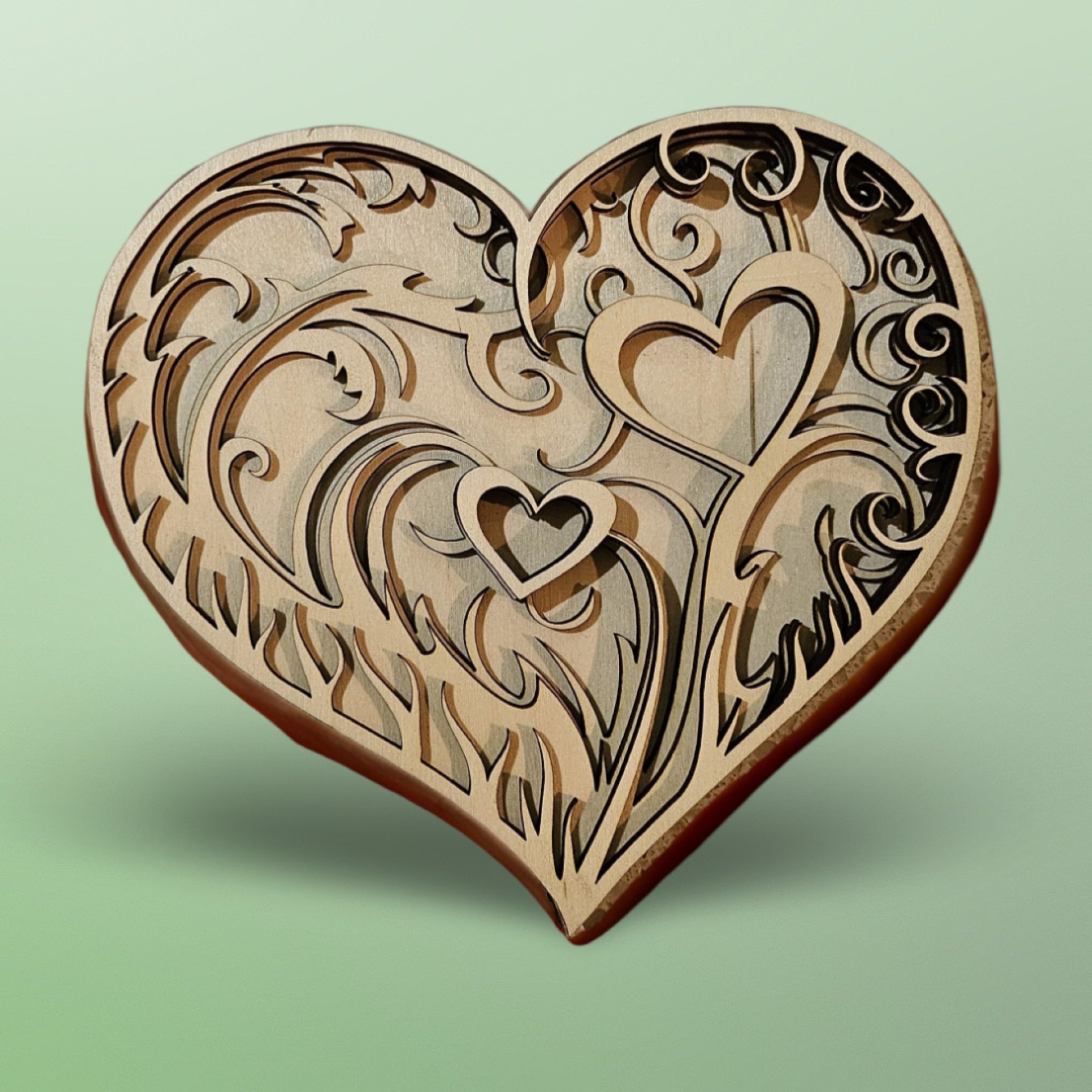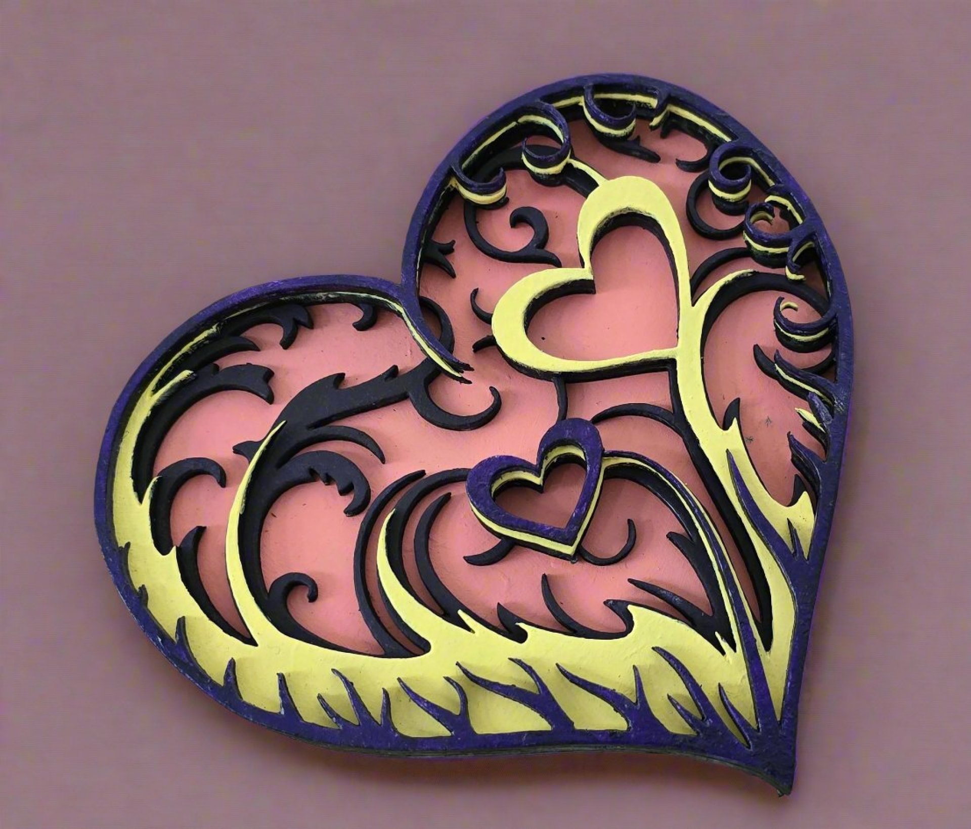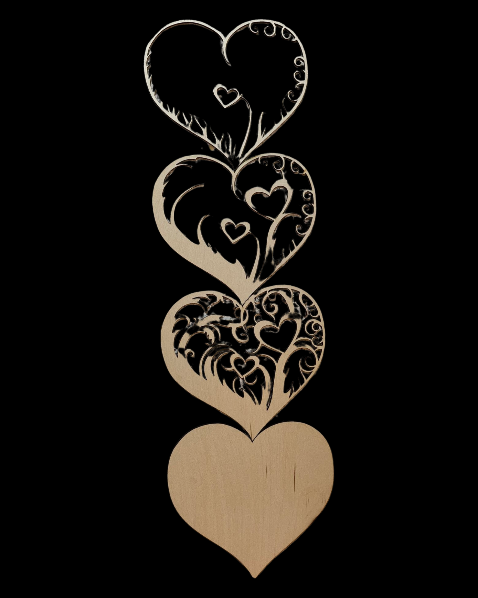 This unique heart features four layers that can be customized with paint or stain. Due to its intricate swirls and branches, this design is more delicate than others. Approximate size is 5x5 inches. Great as a gift for a special occasion, or something to do by yourself on a rainy day. The creative possibilities are endless with this laser engraved piece of artwork.