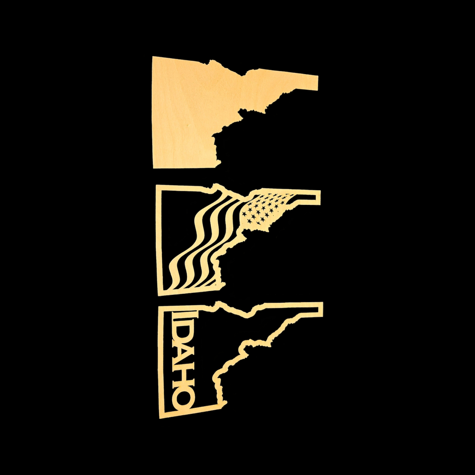 This Idaho three layered picture features a laser cut wood design showcasing the state's outline, accented with the American flag. The finished product measures approximately 6 inches wide by 9.25 inches tall. The difficulty level for this picture is: easy. Great as a gift for a special occasion, or something to do by yourself on a rainy day. The creative possibilities are endless with this laser engraved piece of artwork.