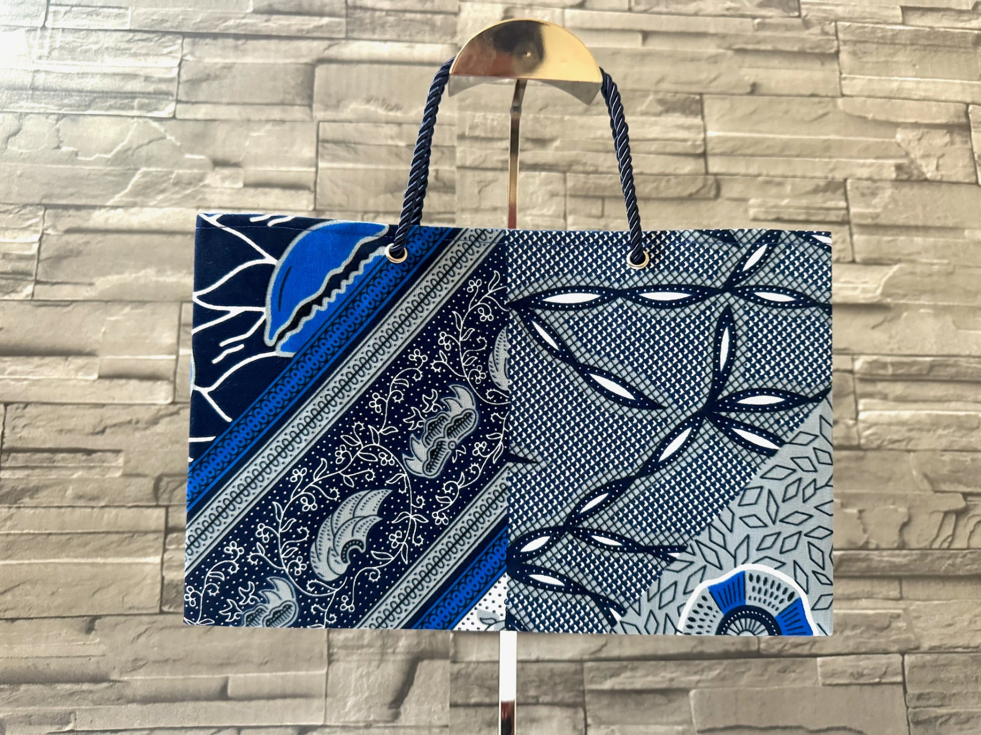 Elevate your gift-giving experience with our Medium Wardrobe Gift Bag  , crafted from vibrant African wax print fabric. Measuring 7.25” x 12.25” x 4.75”, this bag is perfect for clothing, spa sets, or other medium-sized gifts. Each bag is handmade, ensuring it is as unique as the gifts it holds. Reusable and eco-friendly, this bag is ideal for birthdays, anniversaries, holidays, and more, adding cultural sophistication to your presents.