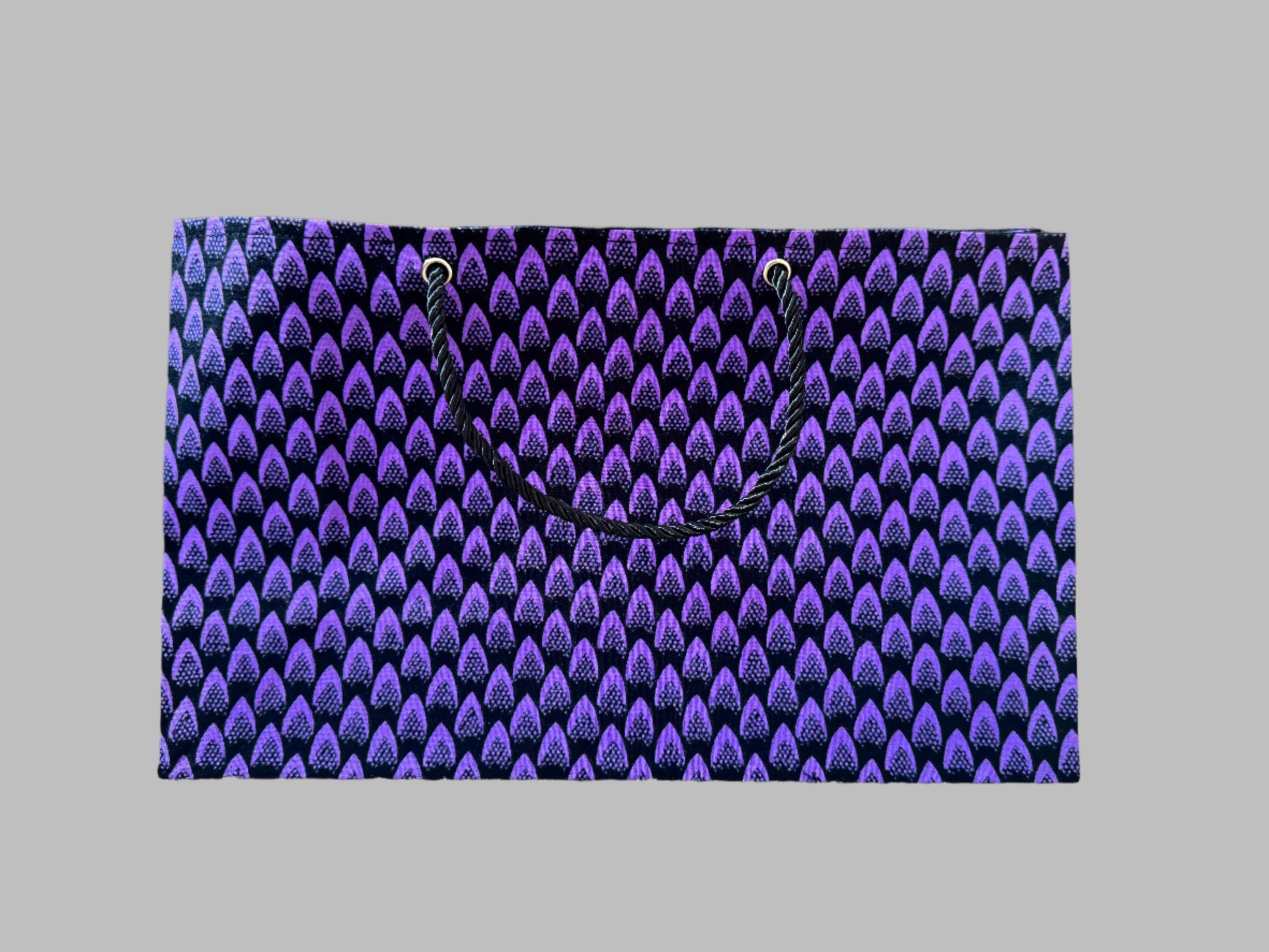 Elevate your gift-giving experience with our Medium Wardrobe Gift Bag  , crafted from vibrant African wax print fabric. Measuring 7.25” x 12.25” x 4.75”, this bag is perfect for clothing, spa sets, or other medium-sized gifts. Each bag is handmade, ensuring it is as unique as the gifts it holds. Reusable and eco-friendly, this bag is ideal for birthdays, anniversaries, holidays, and more, adding cultural sophistication to your presents.