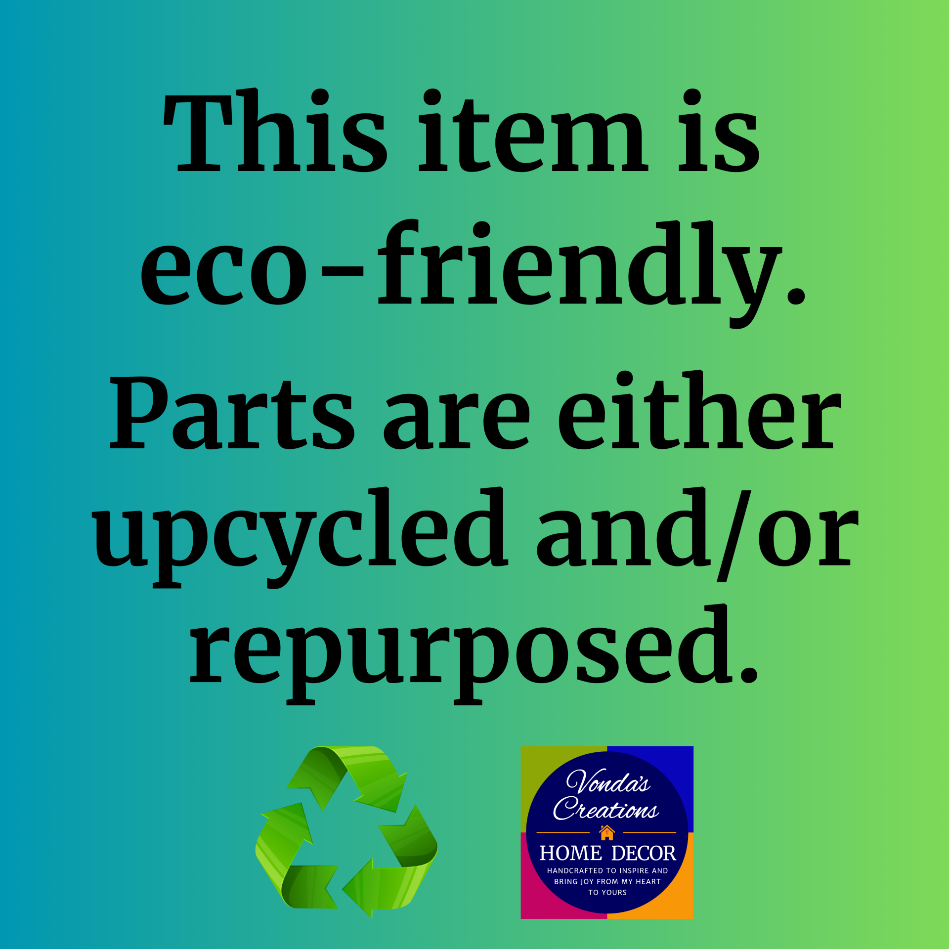 This is made from upcycled pallet wood, stained, painted, and accent added. This has a hanger on the back as well, the sign is approximately 7-8" wide.