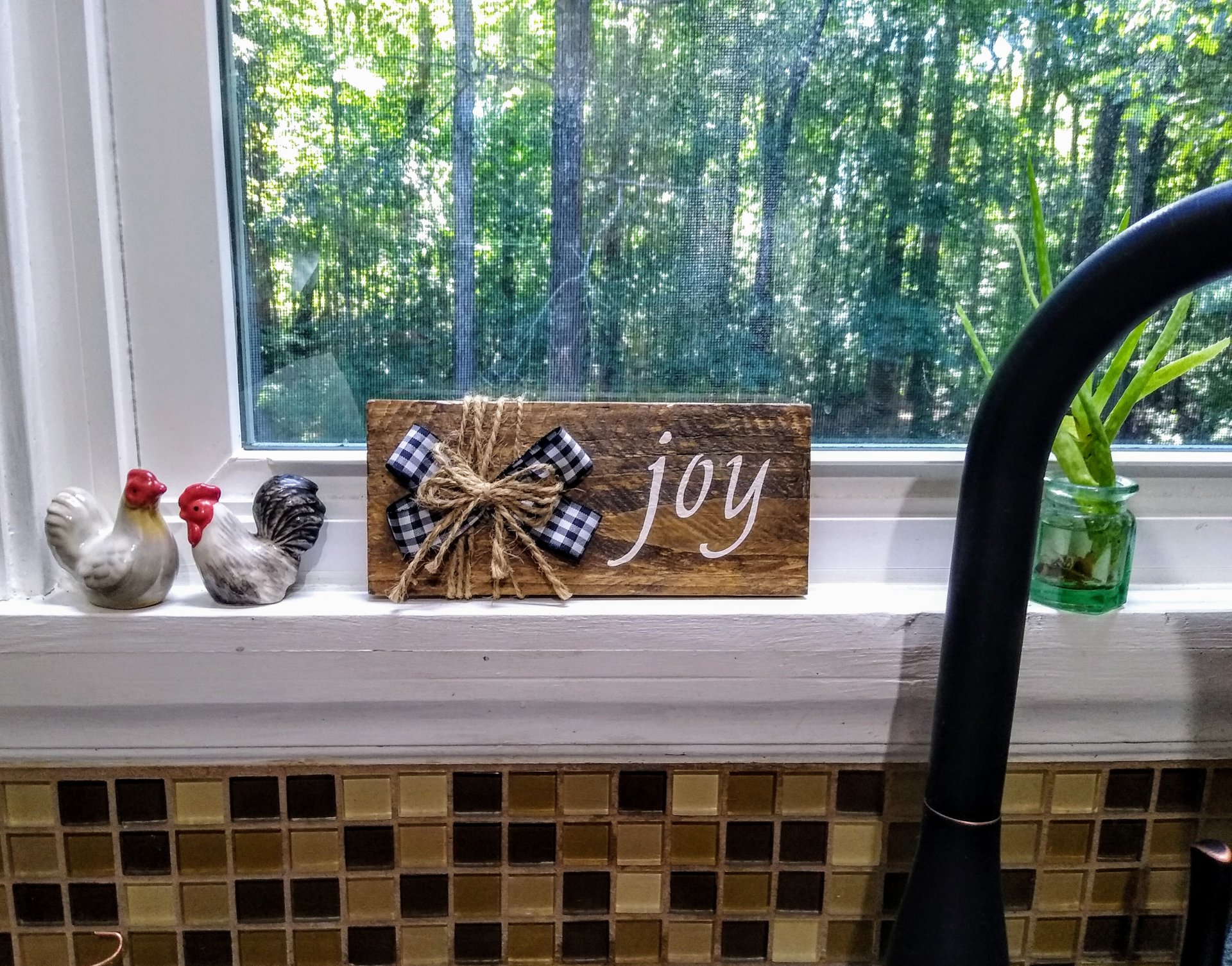 "Abide in me" or "joy" is a great home decor piece to remind us to rest in God's presence and there we will find peace and joy.