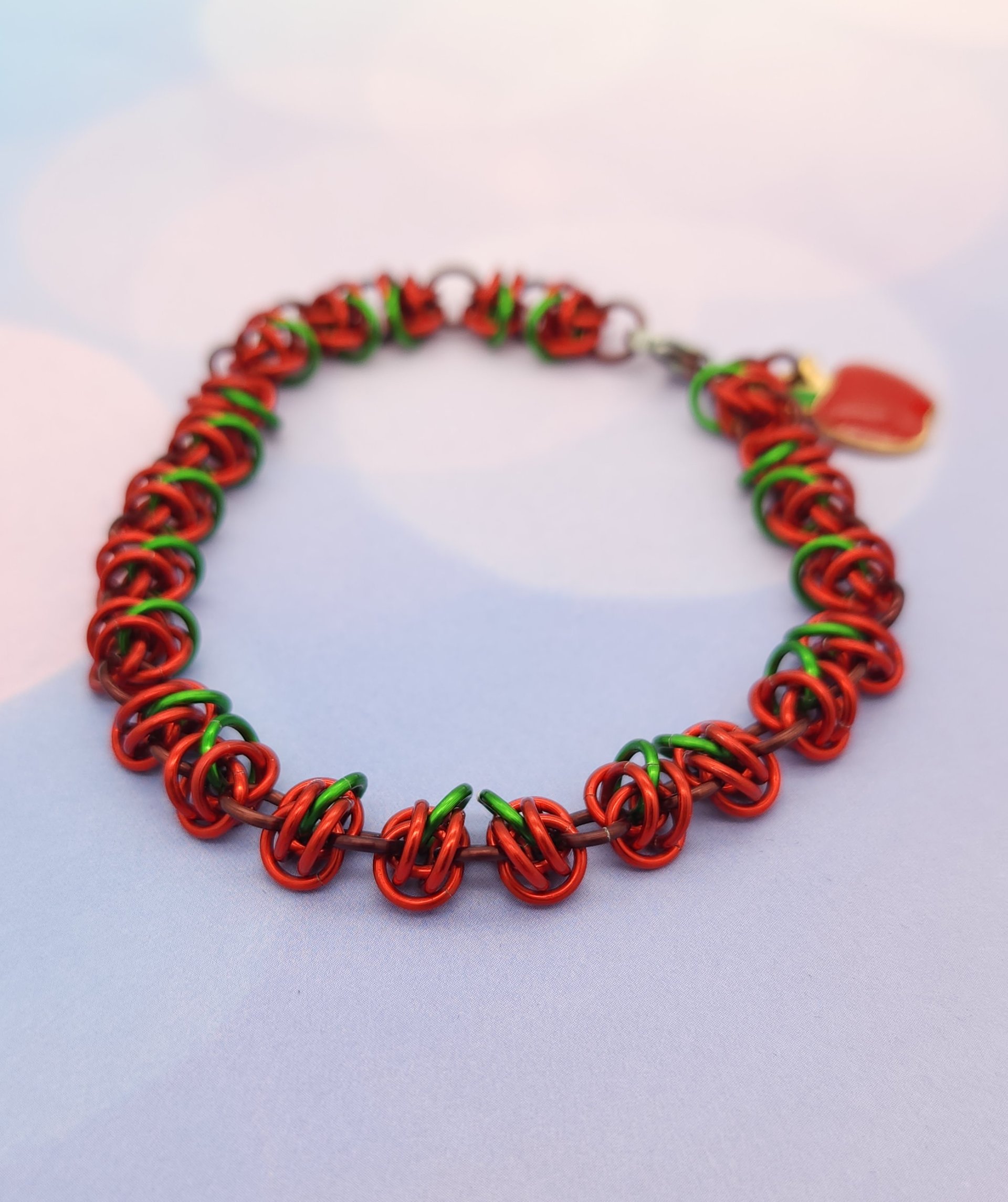 Embrace autumn's enchantment with the Apple Harvest Barrel Bracelet! This fun play on the barrel weave, adds a touch of warmth and charm to any outfit. Perfect for those who love whimsical, one-of-a-kind accessories, this bracelet also makes a fun and thoughtful gift for teachers, celebrating the classic symbol of knowledge and appreciation. Add a splash of orchard magic to your style with the Apple Harvest!
