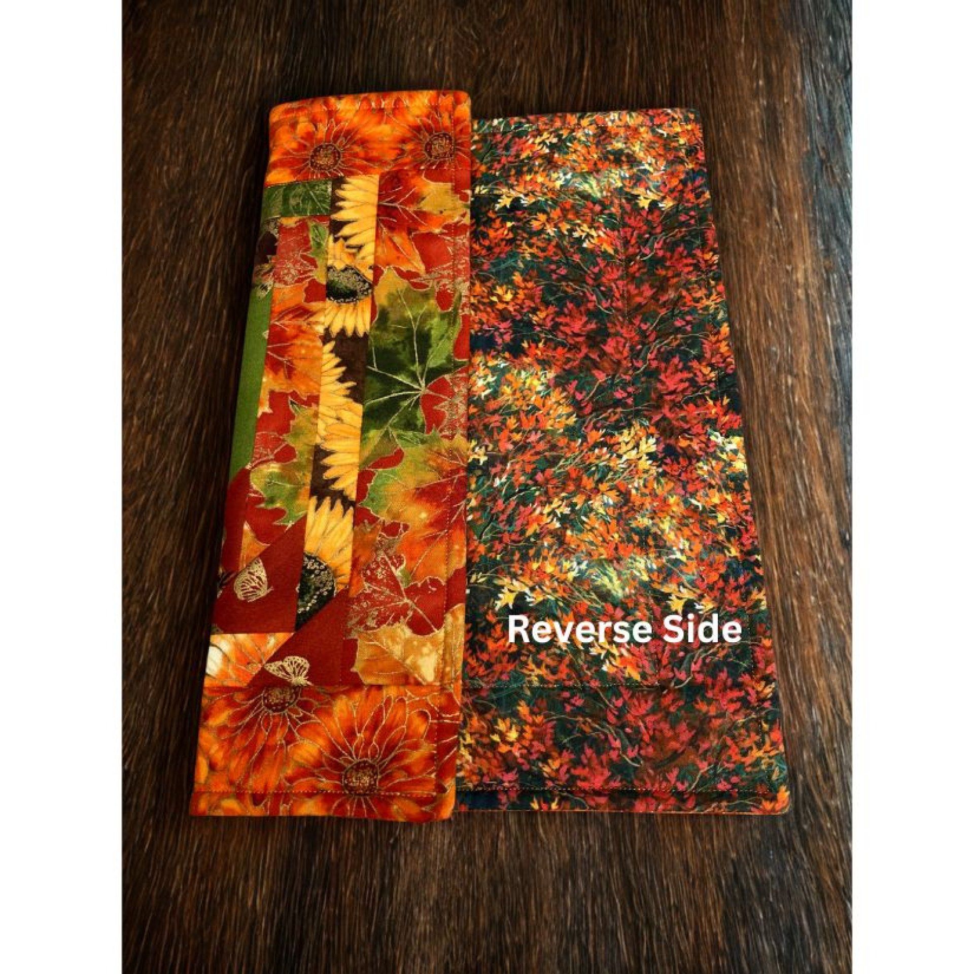 Autumn Glow is a set of four handmade quilted place mats, each measuring 13" x 13", and brings the warmth and charm of autumn to your table. Featuring a log cabin design in vibrant hues of sunflower gold, pumpkin orange, and rustic green, these place mats celebrate the beauty of fall with every stitch. Perfect for adding seasonal flair to everyday meals or festive gatherings, their cozy, homespun style instantly brightens your dining space. Durable, reusable, and full of cottage-core charm, this set makes both a practical and decorative addition to your home.