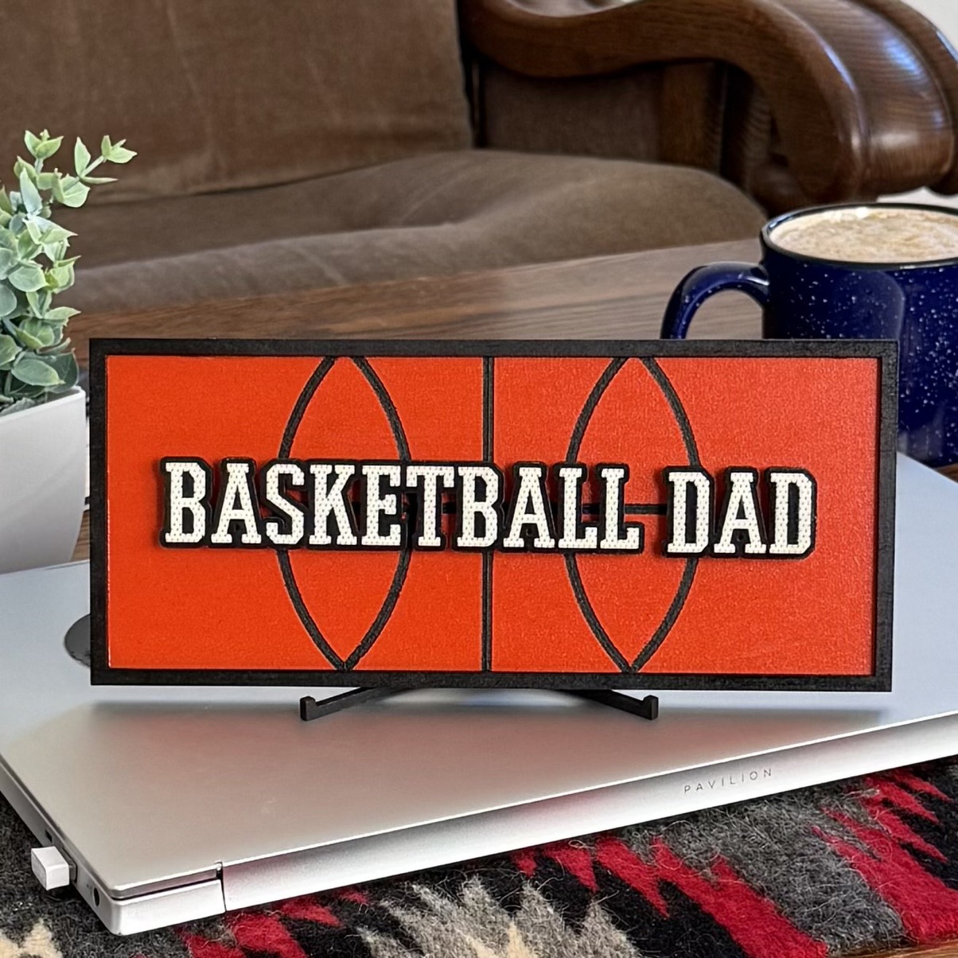 Hey Basketball Dad! Let everyone know your favorite sport is Basketball with this winning desk sign. Bright b-ball orange is highlighted with glossy black and floating mesh-style lettering. Your desk is full of awesome, well deserved trophies - this sign will complete the look of a champion coach!
