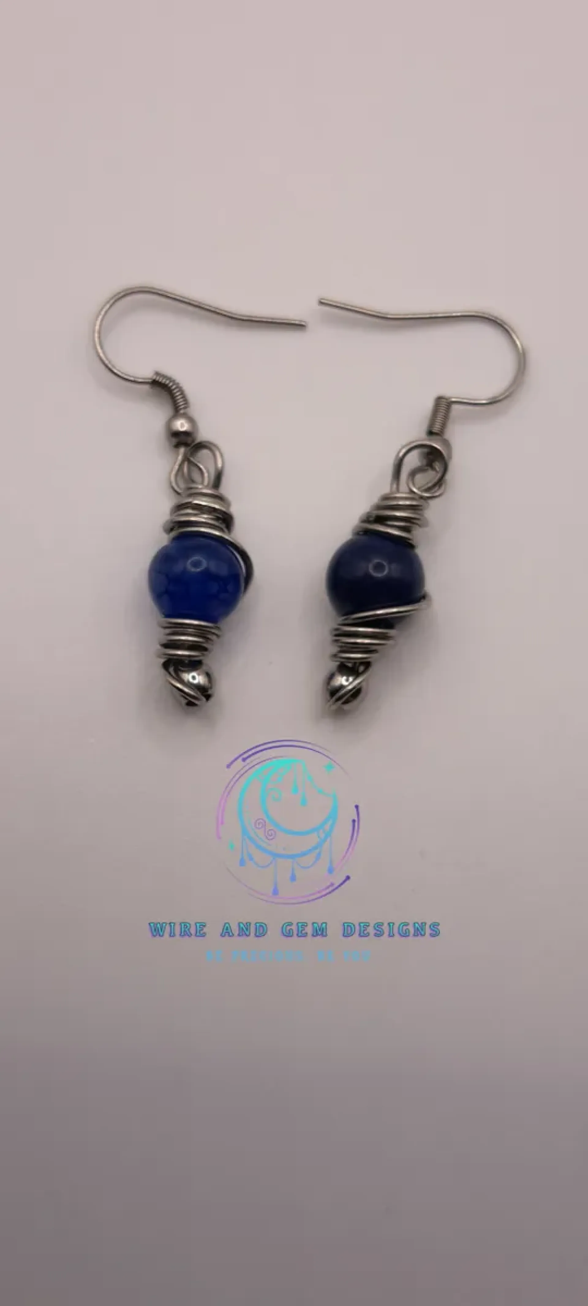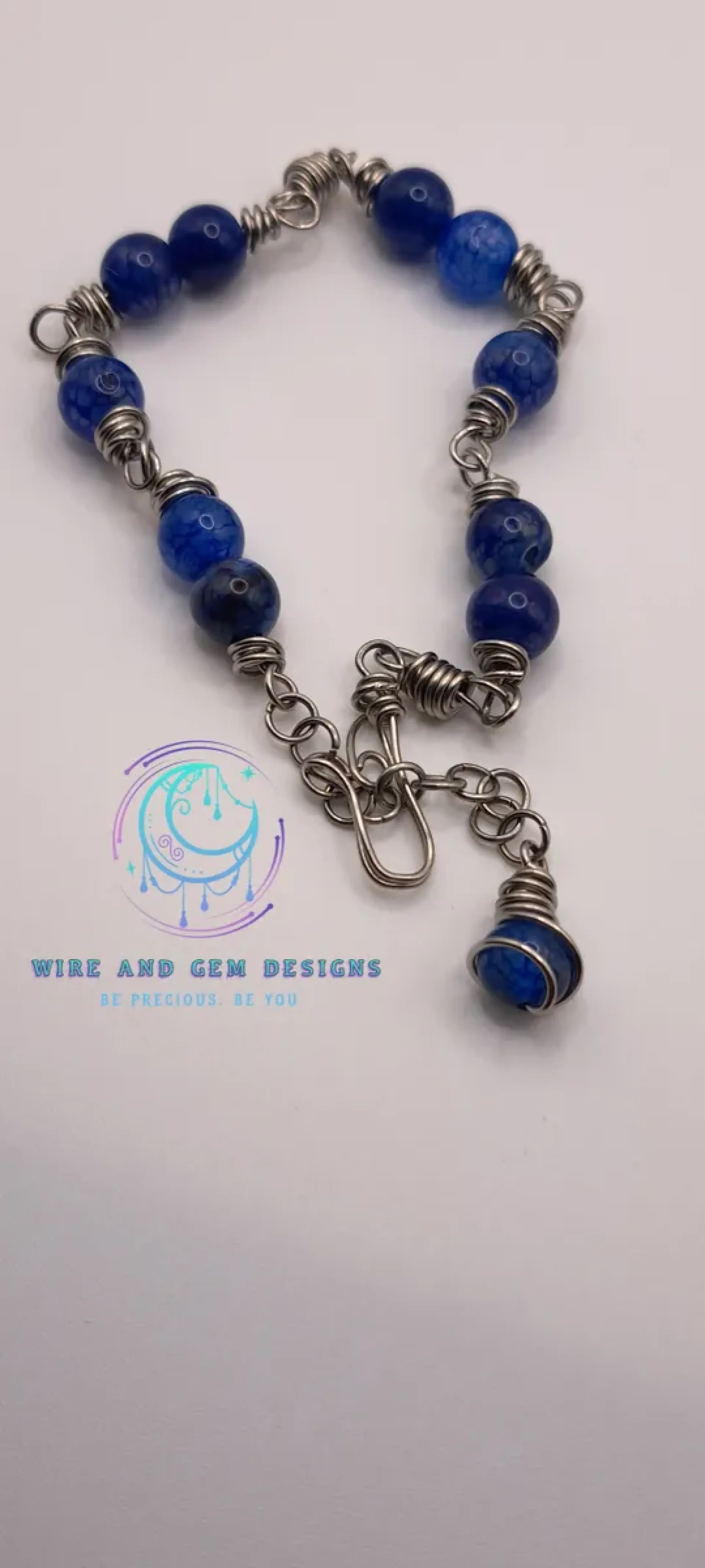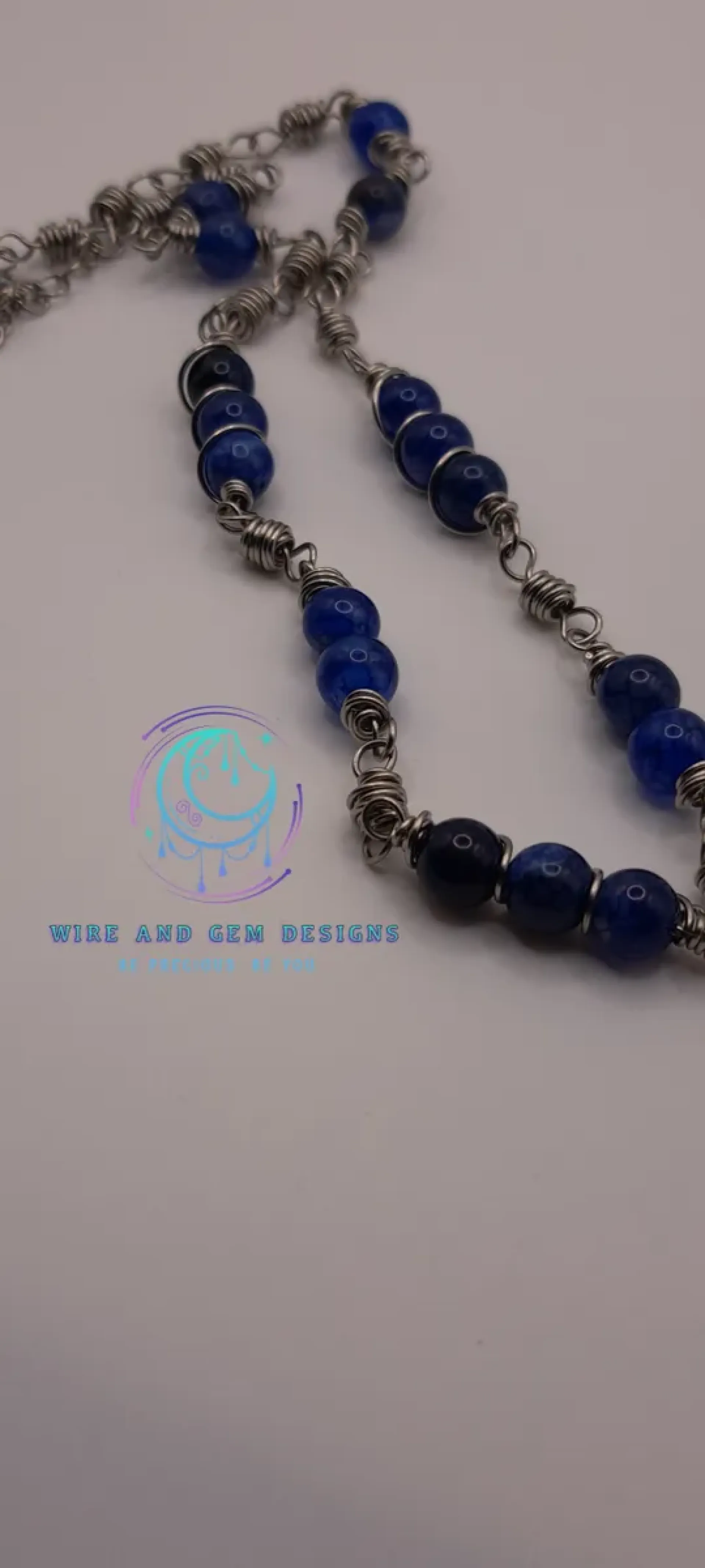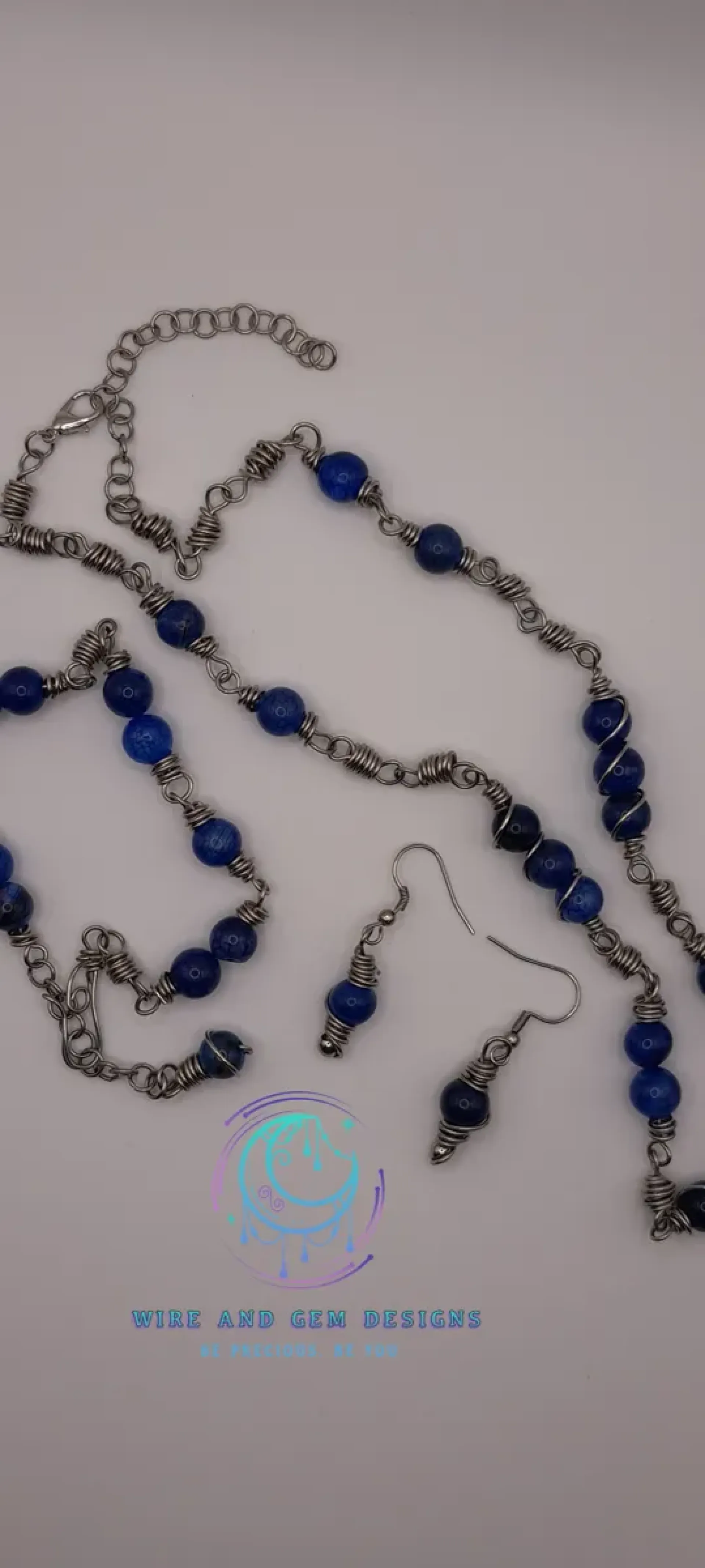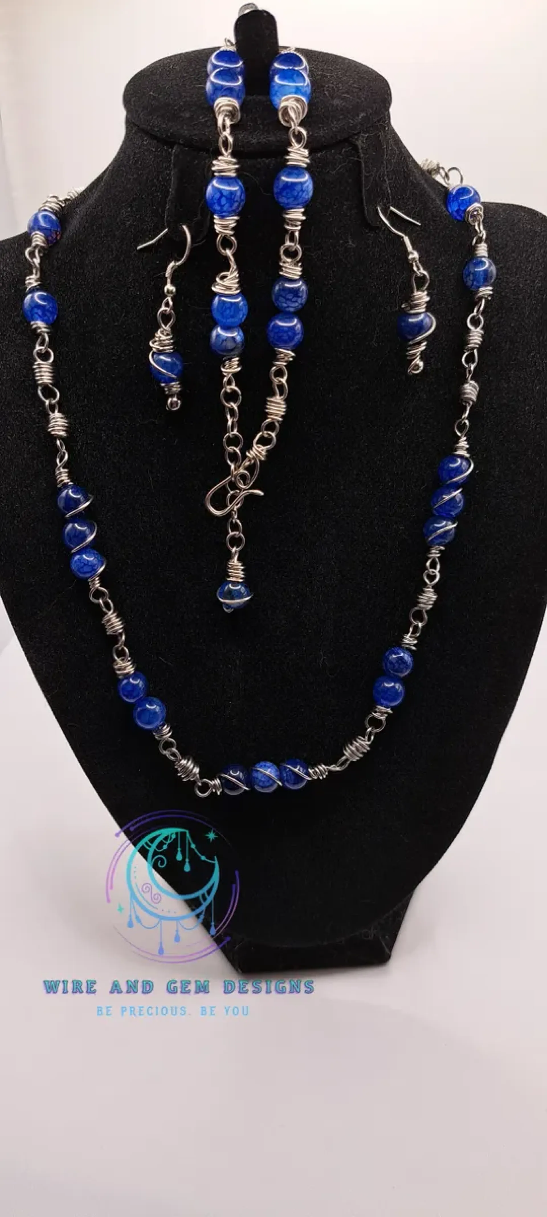Blue Dragon Vein Beads Set with handmade chains, clasps all are stainless steel wires.