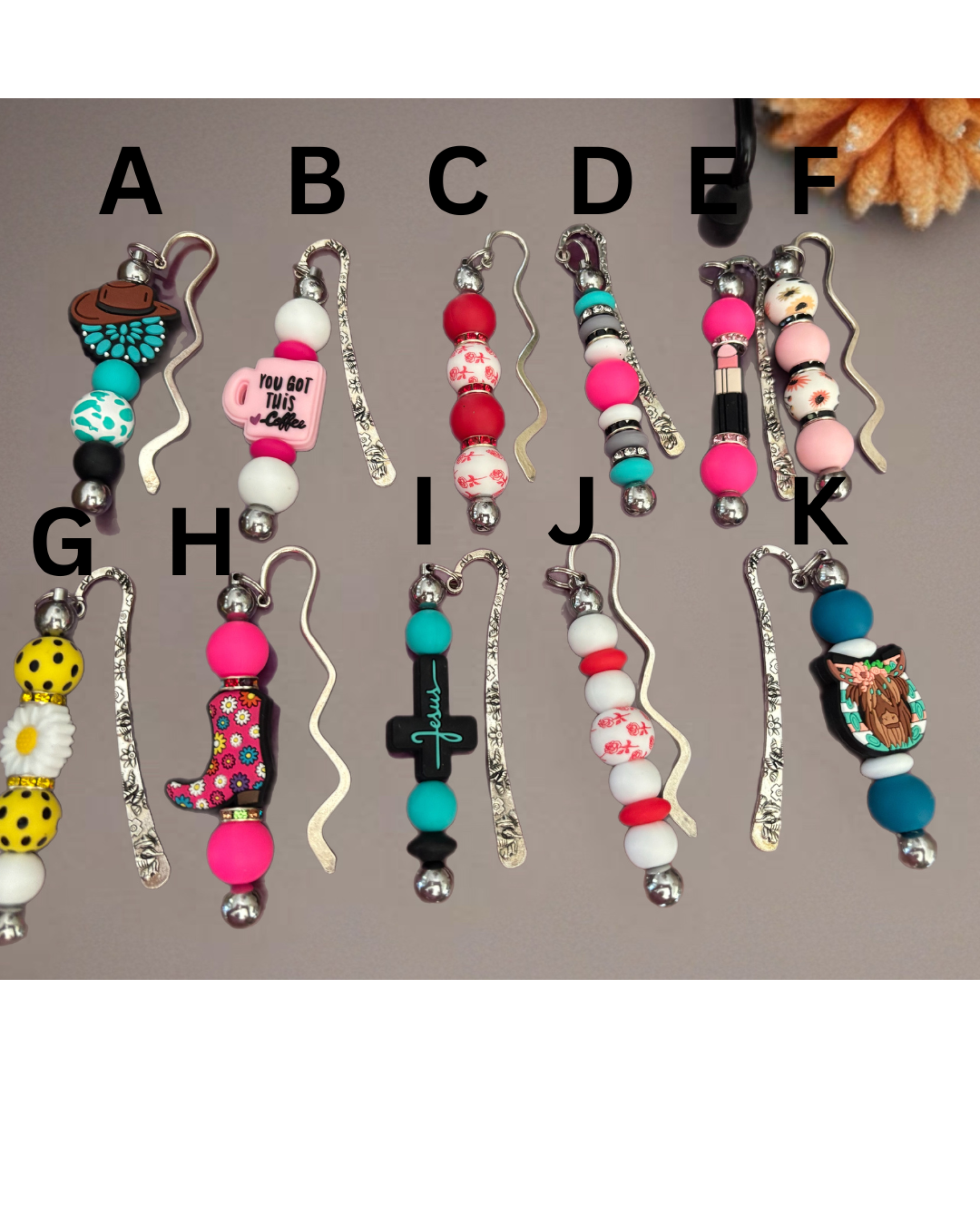Metal book mark with silicone beads