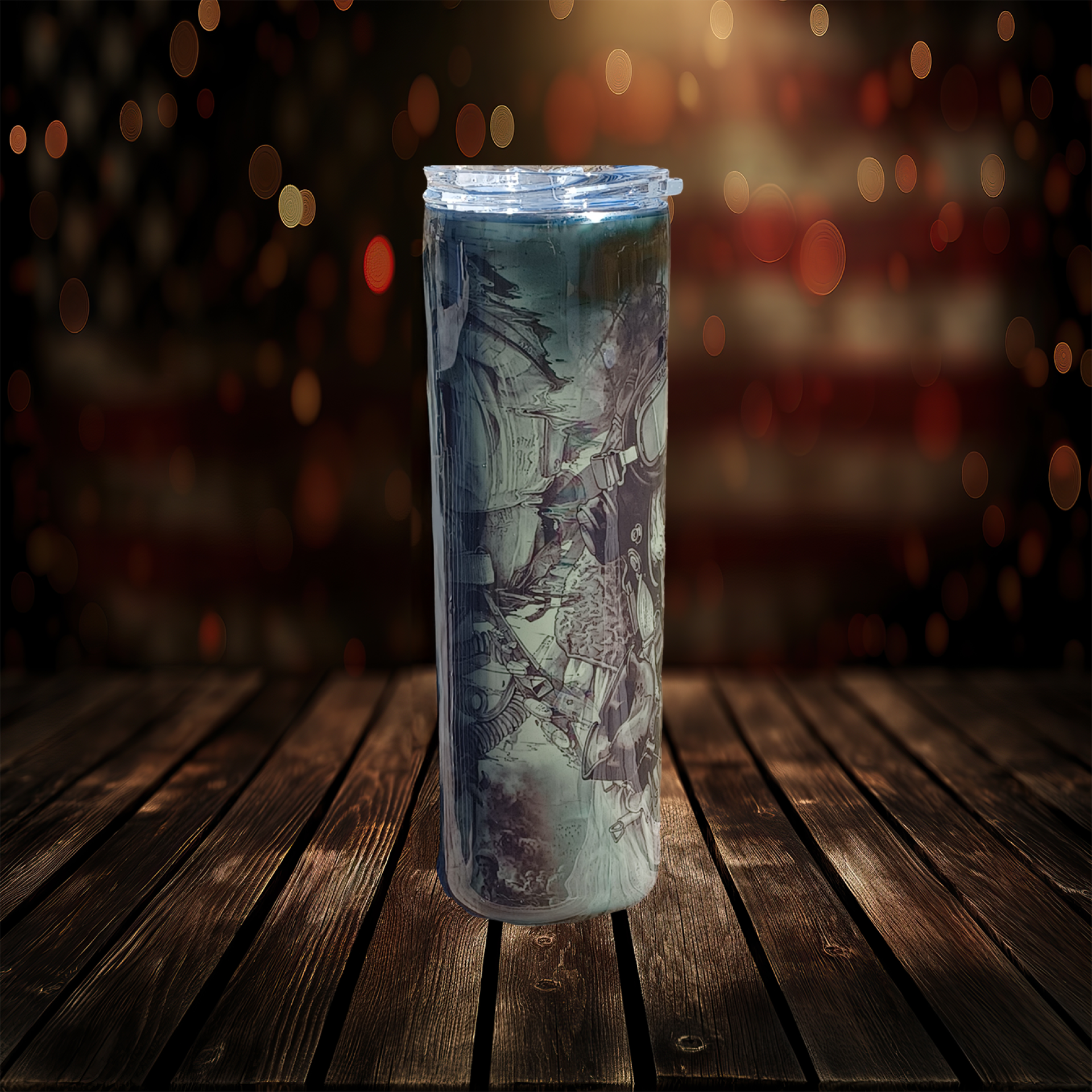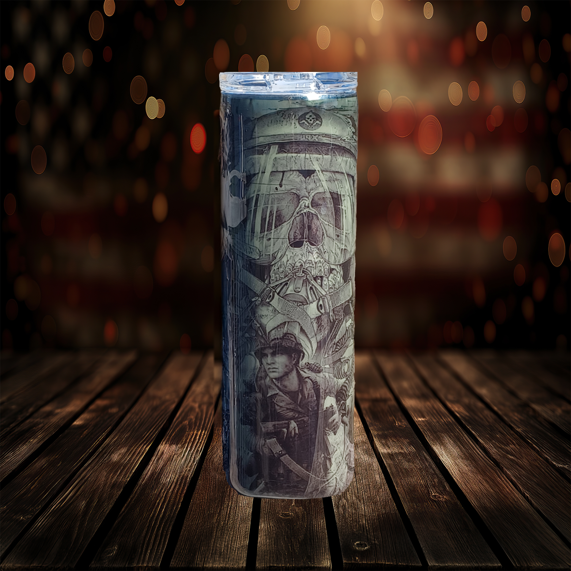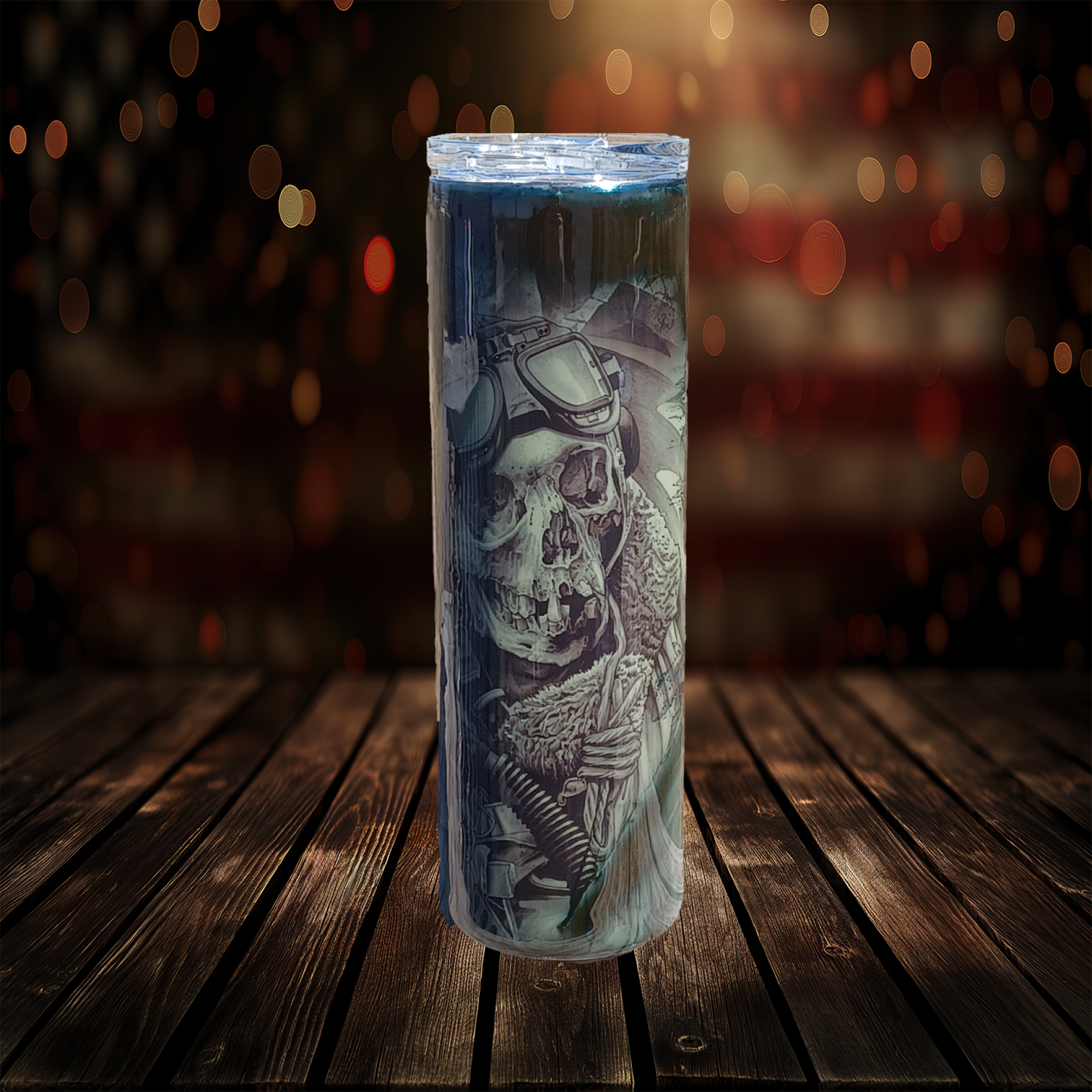 When the sky calls for the bold, the fearless answer. Callsign: Reaper is a custom military-themed tumbler that pays tribute to the warrior spirit with a chilling, high-impact design. Featuring a skeletal pilot clad in flight gear and oxygen mask, this tumbler embodies the unshakable resolve and silent grit of those who live for altitude and adrenaline.