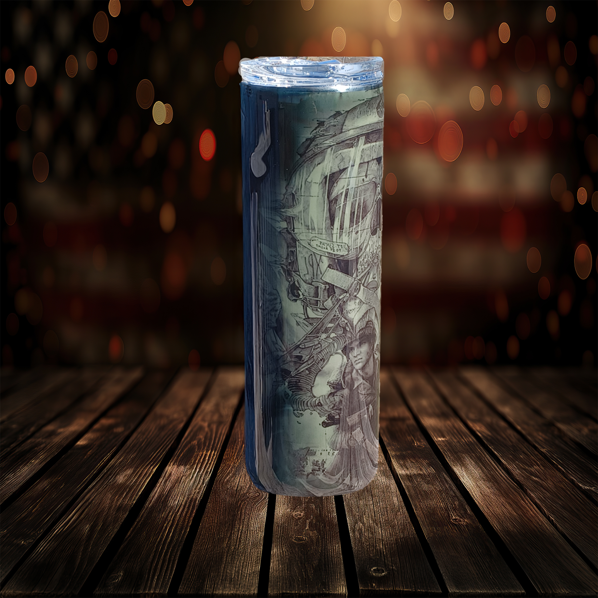 From flightline to frontline, this rugged design makes the perfect gift for Air Force veterans, aviation enthusiasts, or anyone who respects those who fly into danger. The highly detailed wrap-around image delivers an eerie, cinematic edge, while the tumbler’s glossy epoxy finish ensures a long-lasting tribute that looks as strong as it performs.