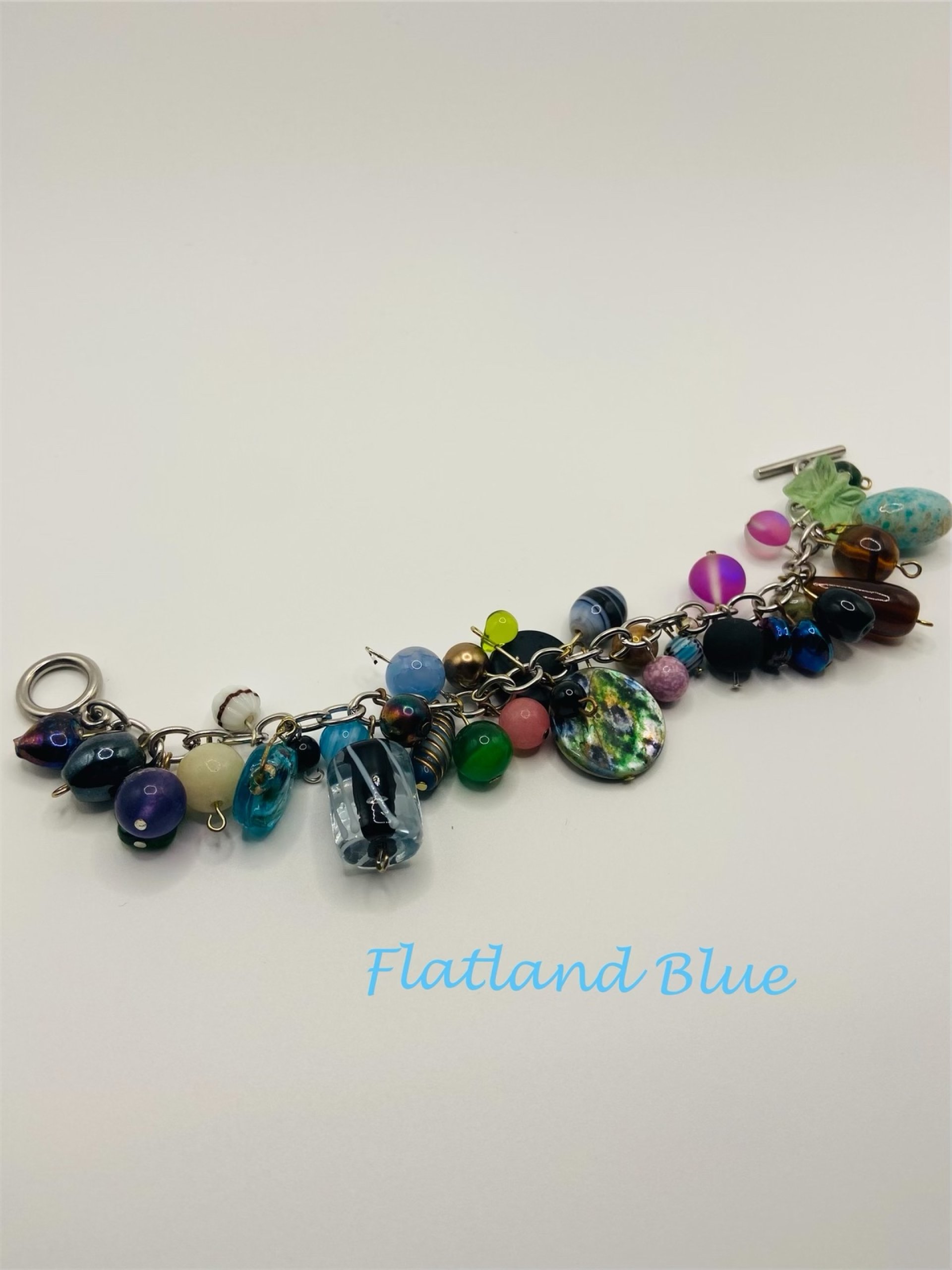 This cha cha bracelet is a vibrant and stylish piece of jewelry that showcases an assortment of materials. Each bead is individually hand-wired, which not only enhances the artistic quality but also ensures that each piece is unique. This technique allows for flexibility in movement, giving the bracelet a lively feel when worn. The cha cha bracelet measures 7 inches in length. This size makes it suitable for most wrist sizes while allowing for comfortable wear throughout the day. It fastens with a toggle clasp.