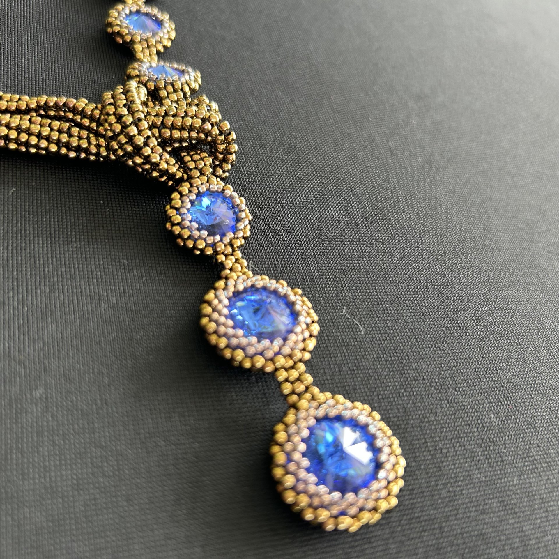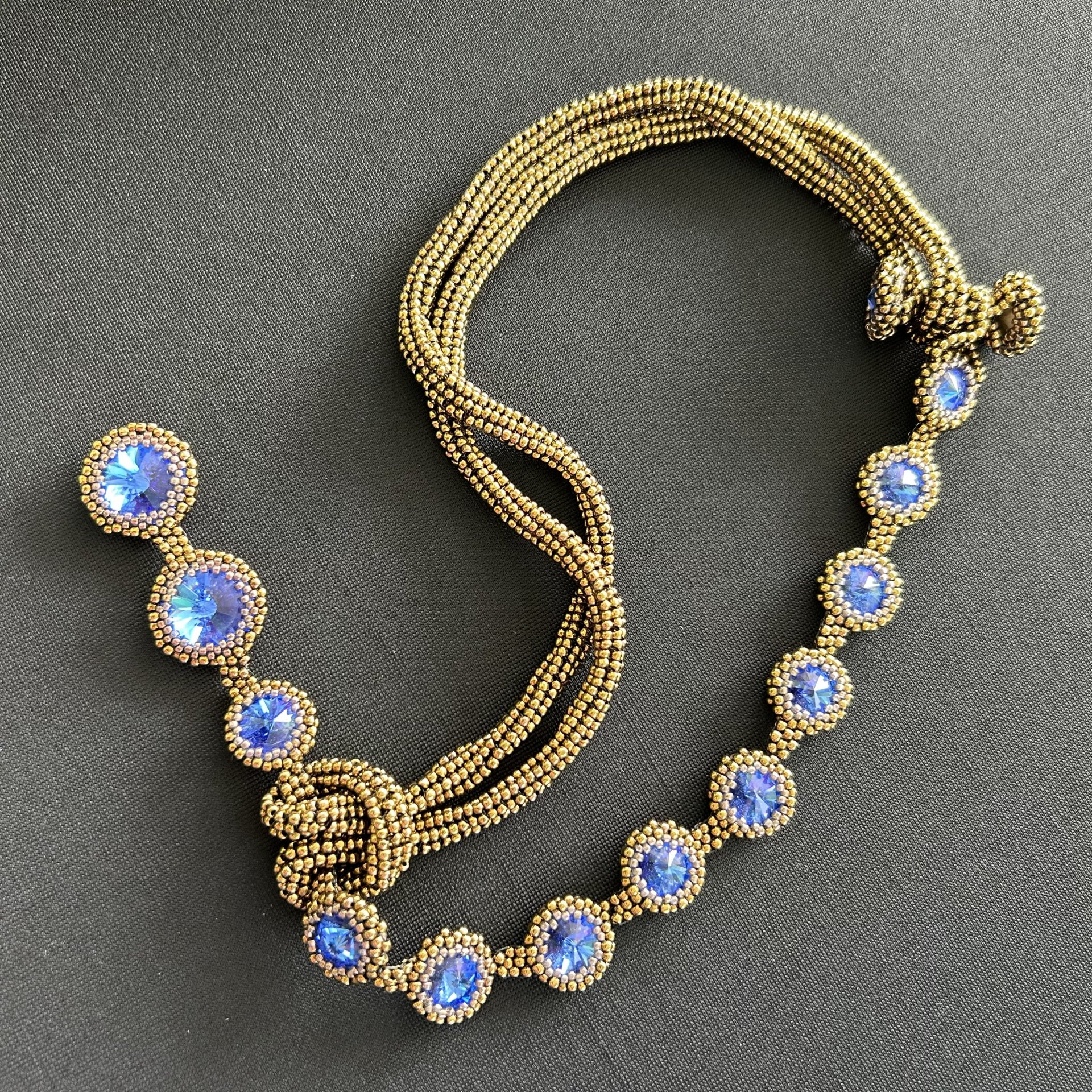 Strung one by one using a needle and top quality Fireline brand thread. Handmade with genuine Australian crystals and antique bronze colored glass seed beads. Beaded toggle clasp. Approximately 20 inches long.