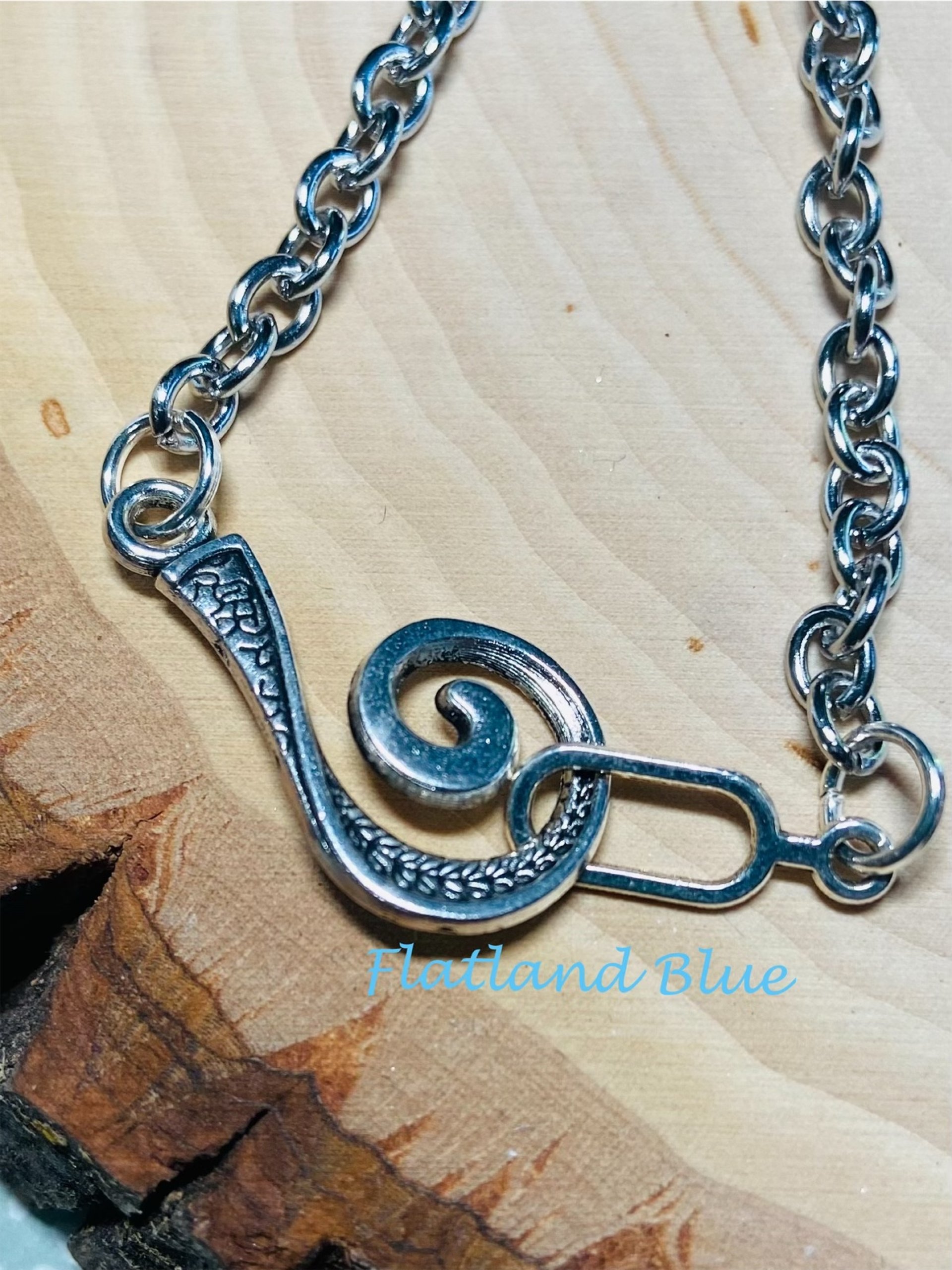 This 21" rolo chain necklace adorned with purple-gray crystals and featuring an unusual spiral hook clasp combines functionality with artistic design, making it an excellent choice for anyone looking to enhance their jewelry collection.