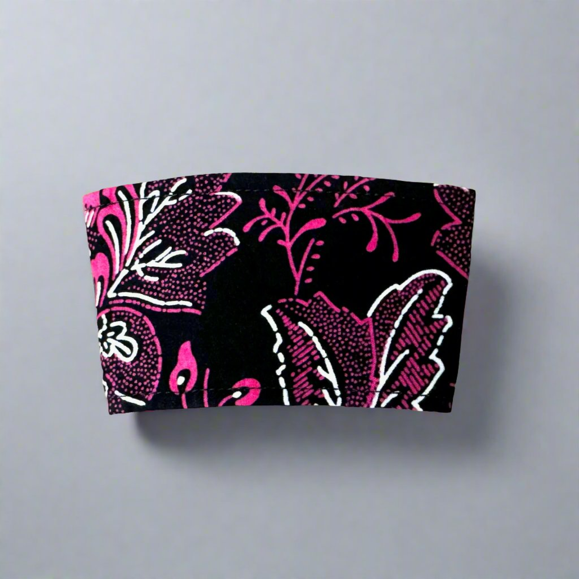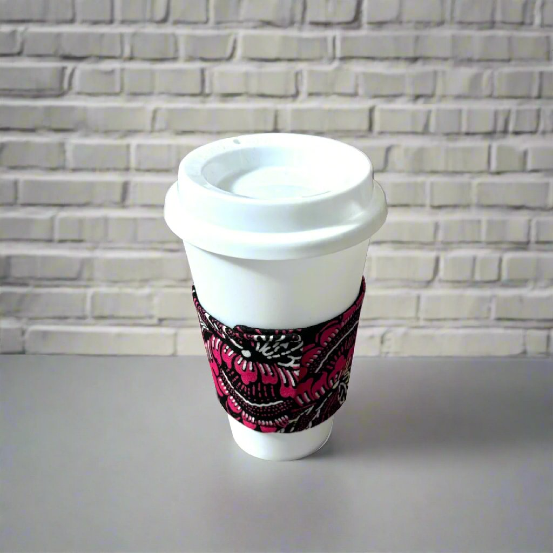 CUP10013 - Ethnic, Fabric, Patterned, Handmade Black, Pink and White Cup Sleeve