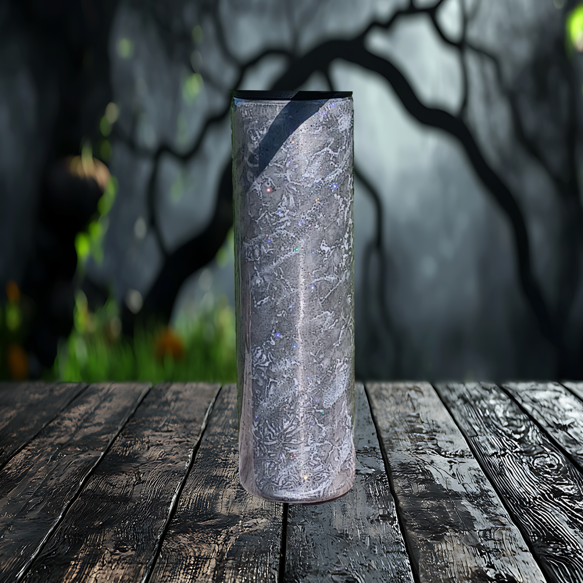 Premium handcrafted tumbler with silver glitter + cracked effect H