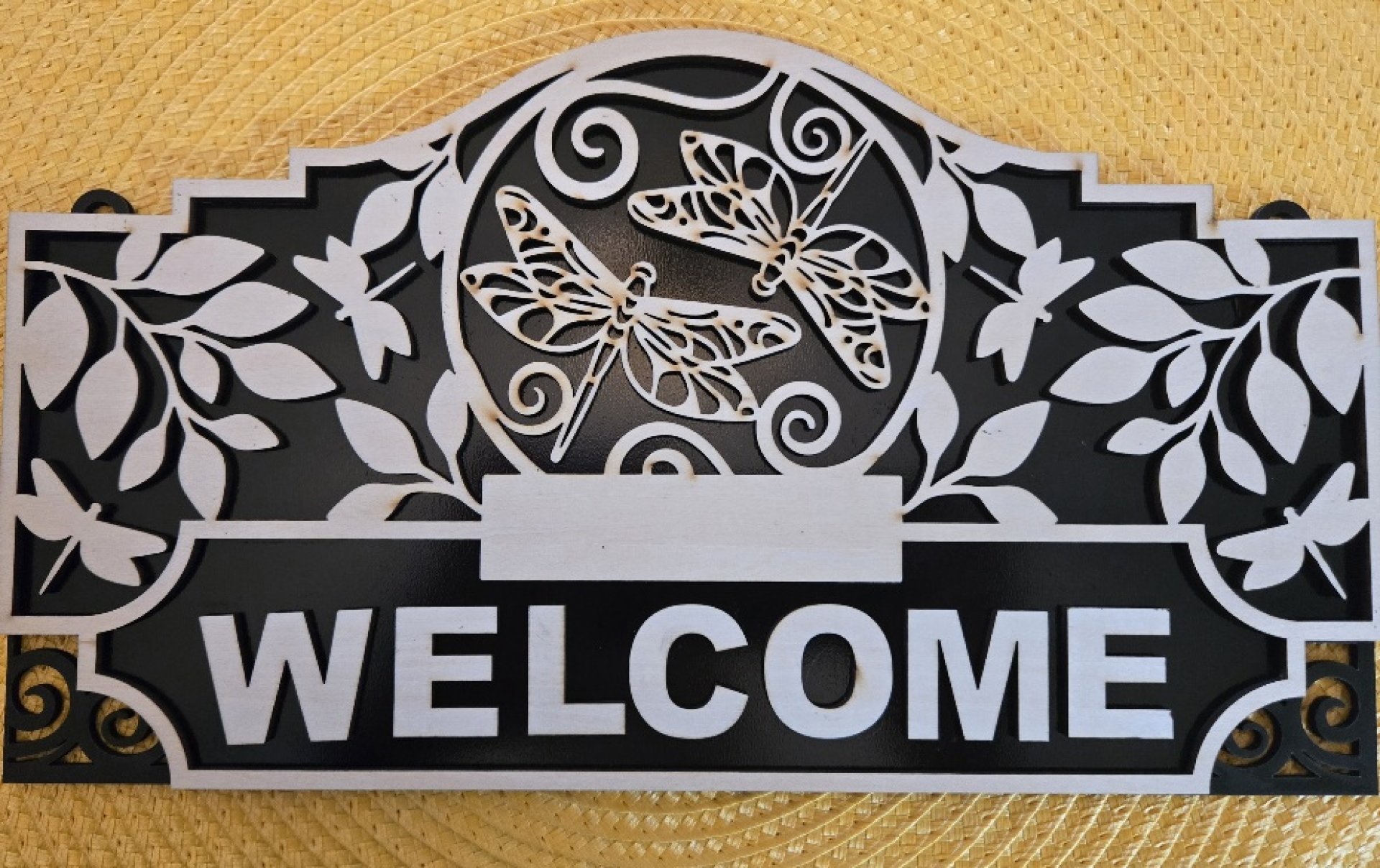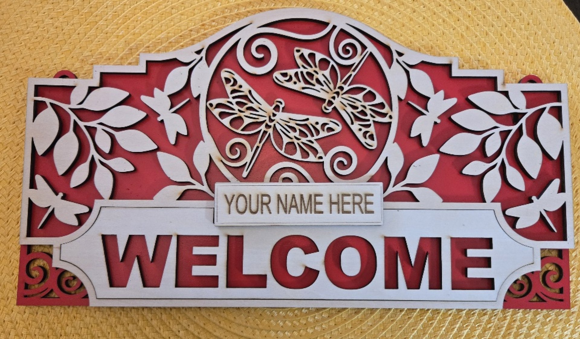 Capture the light and beauty of nature with a custom-made wood welcome sign featuring a stunning dragonfly design. Each sign is handcrafted to add a touch of whimsy and elegance to your home's entrance, garden gate, or sunroom.