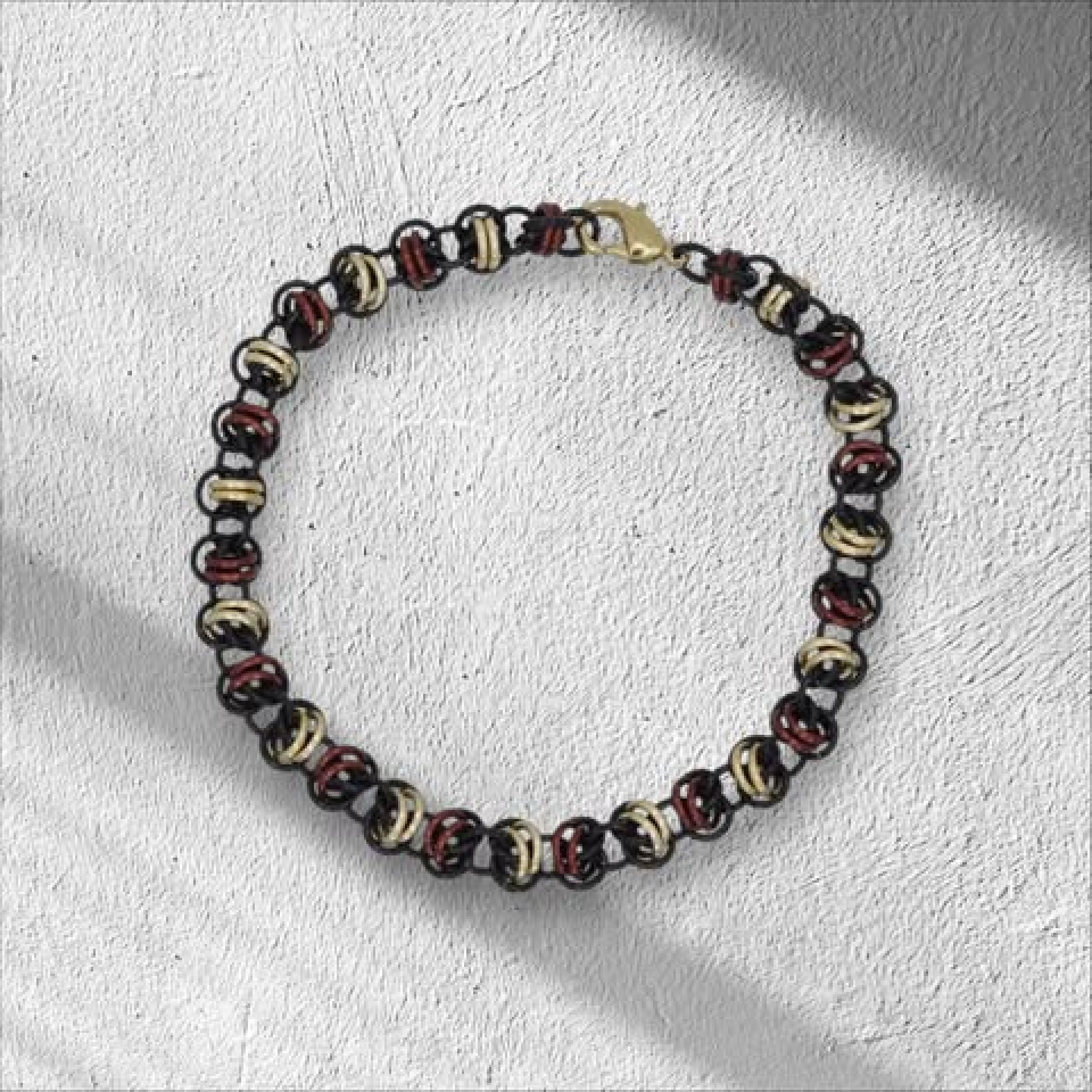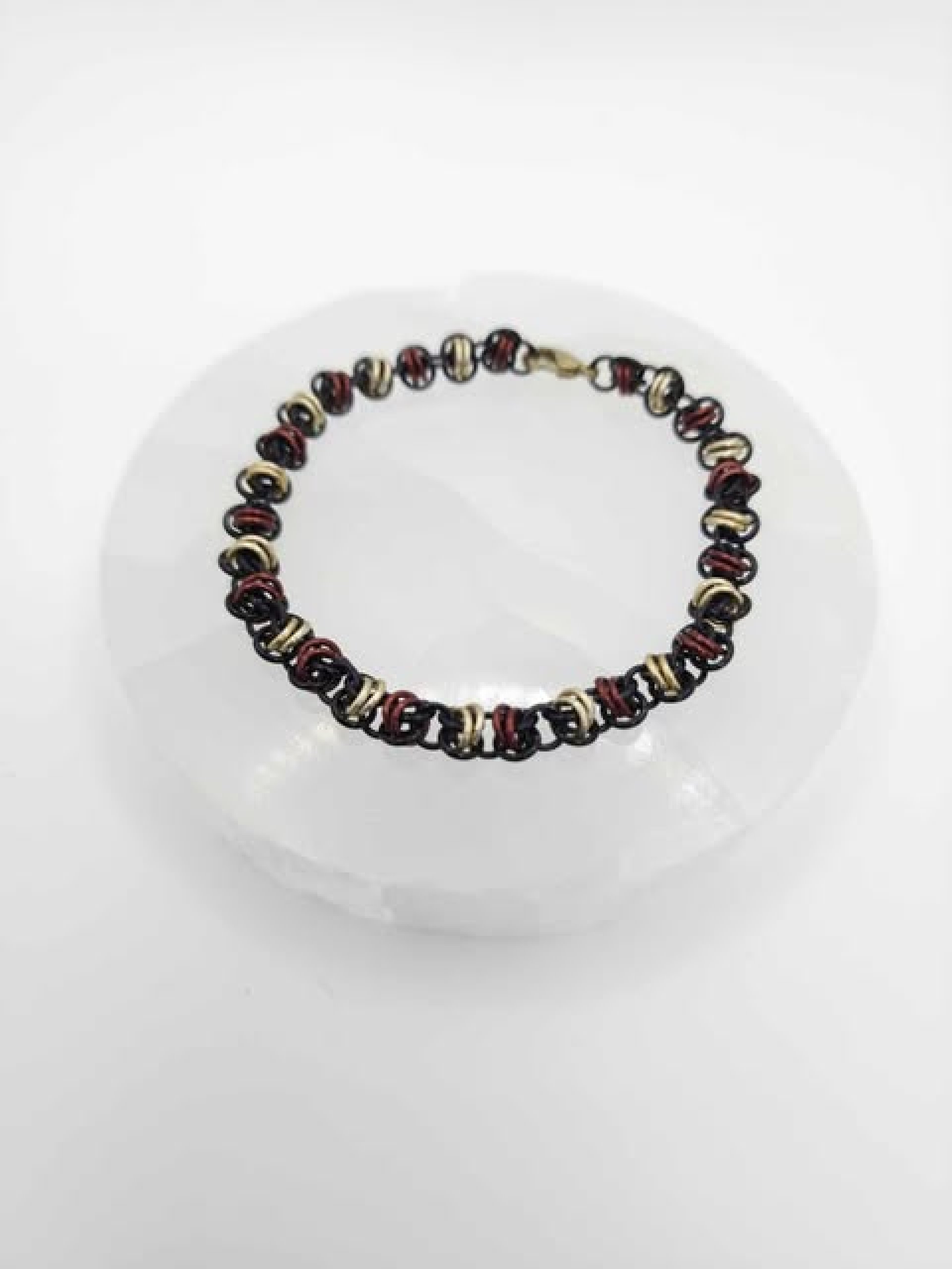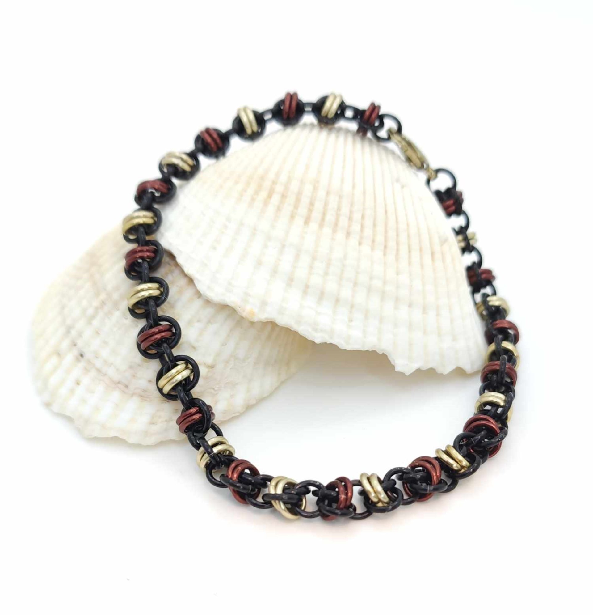 Crafted from anodized aluminum jump rings, the Wonderful Earth palette features Onyx, Henna, and Champagne colored rings, capturing the essence of nature's beauty. Durable and lightweight, this bracelet adds a touch of elegance to any ensemble, perfect for nature lovers and fashion enthusiasts alike. Can be worn daily or for an evening out, making this a piece you can truly live in!