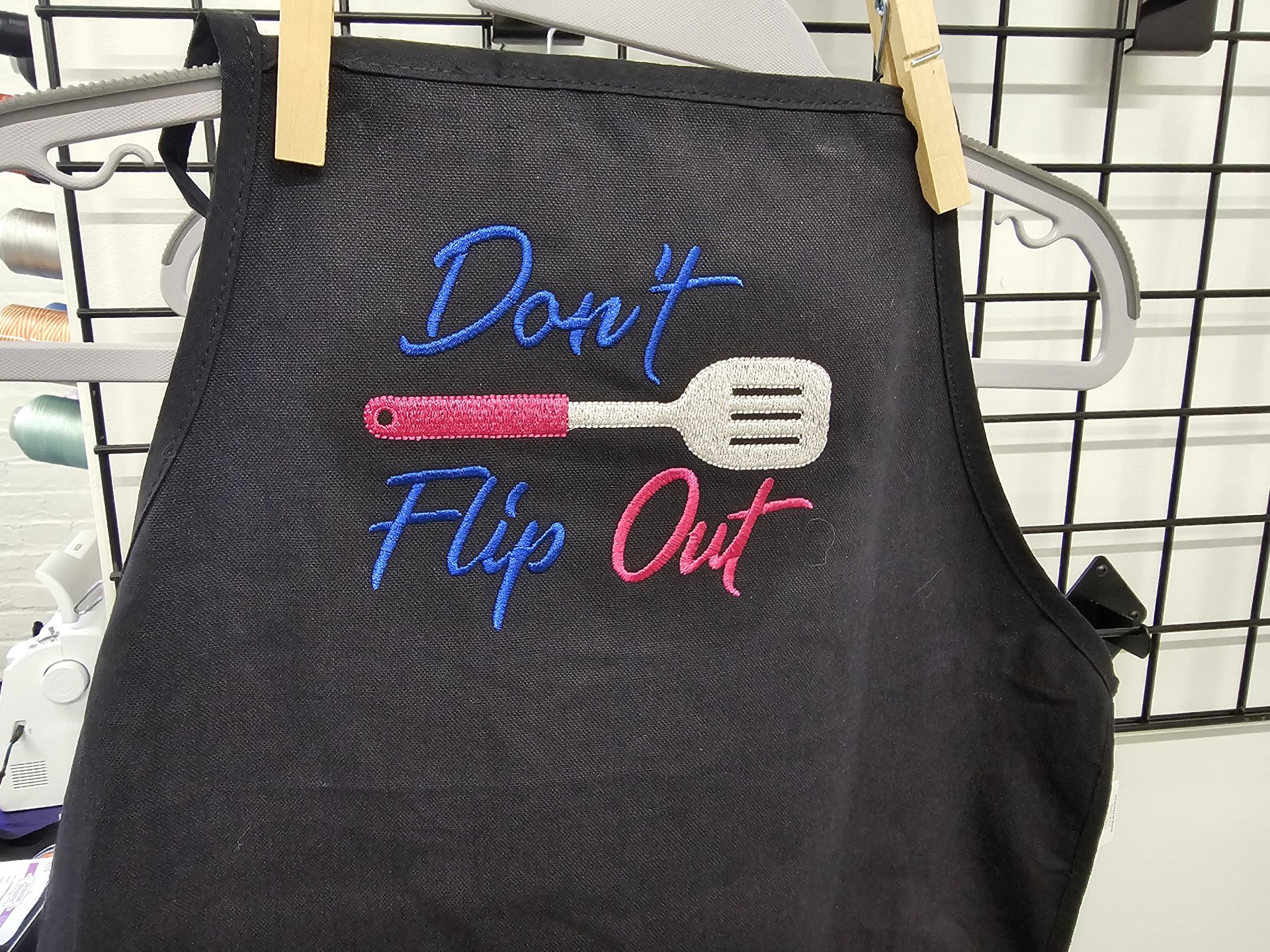 This child-sized black apron is as durable as it is adorable, keeping young cooks splatter-free and stylish in the kitchen or by the grill. With its fun 'Don't Flip Out' design, it’s sure to make cooking time even more exciting. Adjustable straps ensure a snug fit for every little food enthusiast. Let their culinary creativity shine!