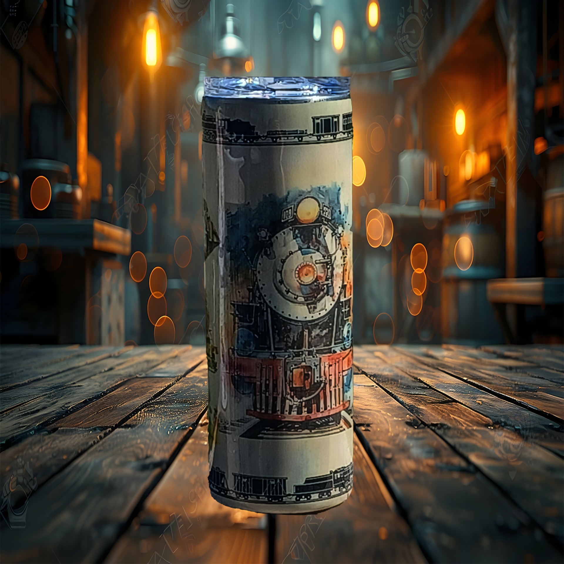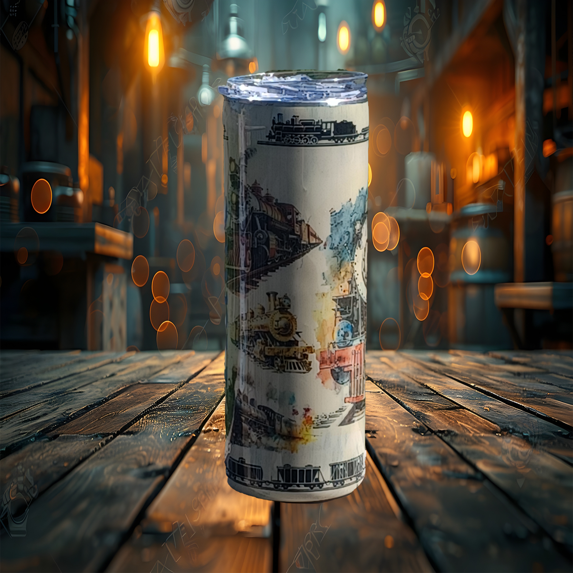 Celebrate the boundless curiosity and imagination of an autistic child with our Full Steam Ahead tumbler. Featuring a classic steam locomotive brought to life with rich, vintage colors and train silhouettes circling the top and bottom, this design is perfect for train lovers of all ages. Whether it's a calming visual focus or a symbol of a favorite hobby, this cup honors the unique passions that make neurodivergent kids shine.