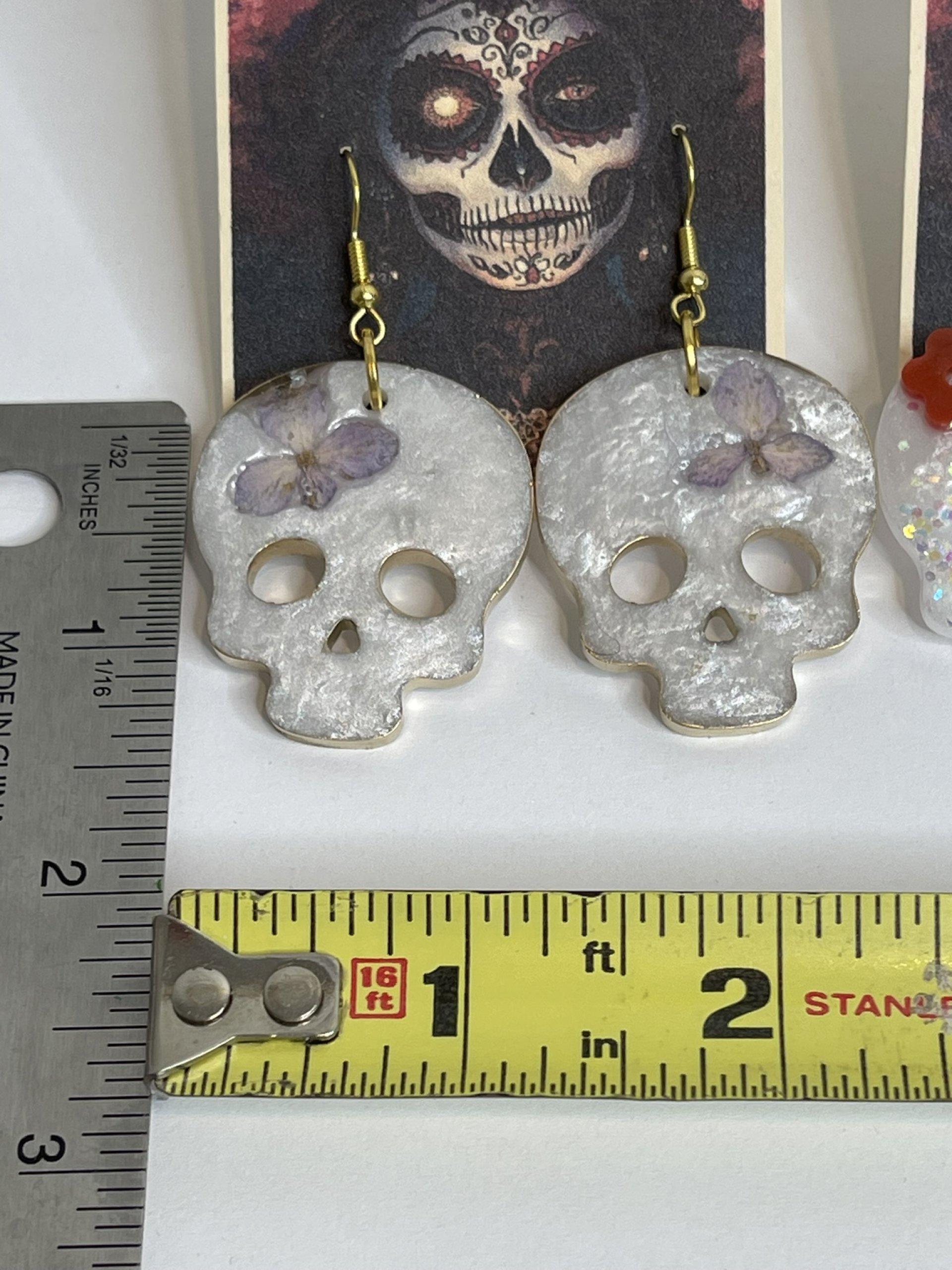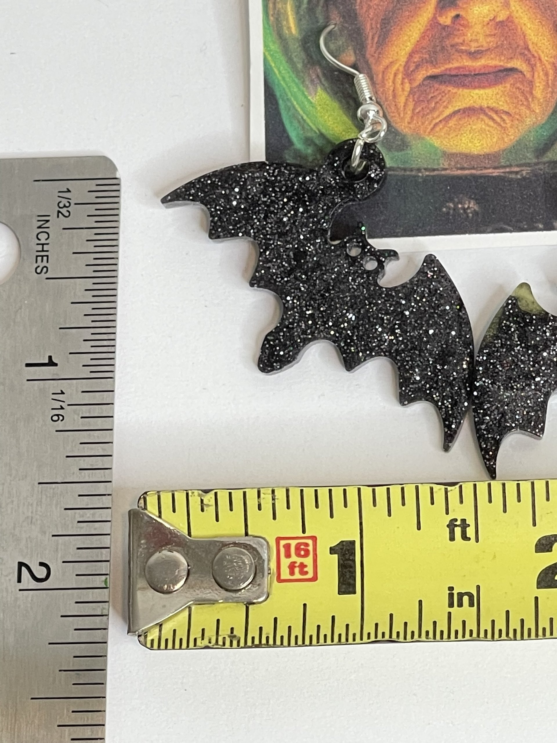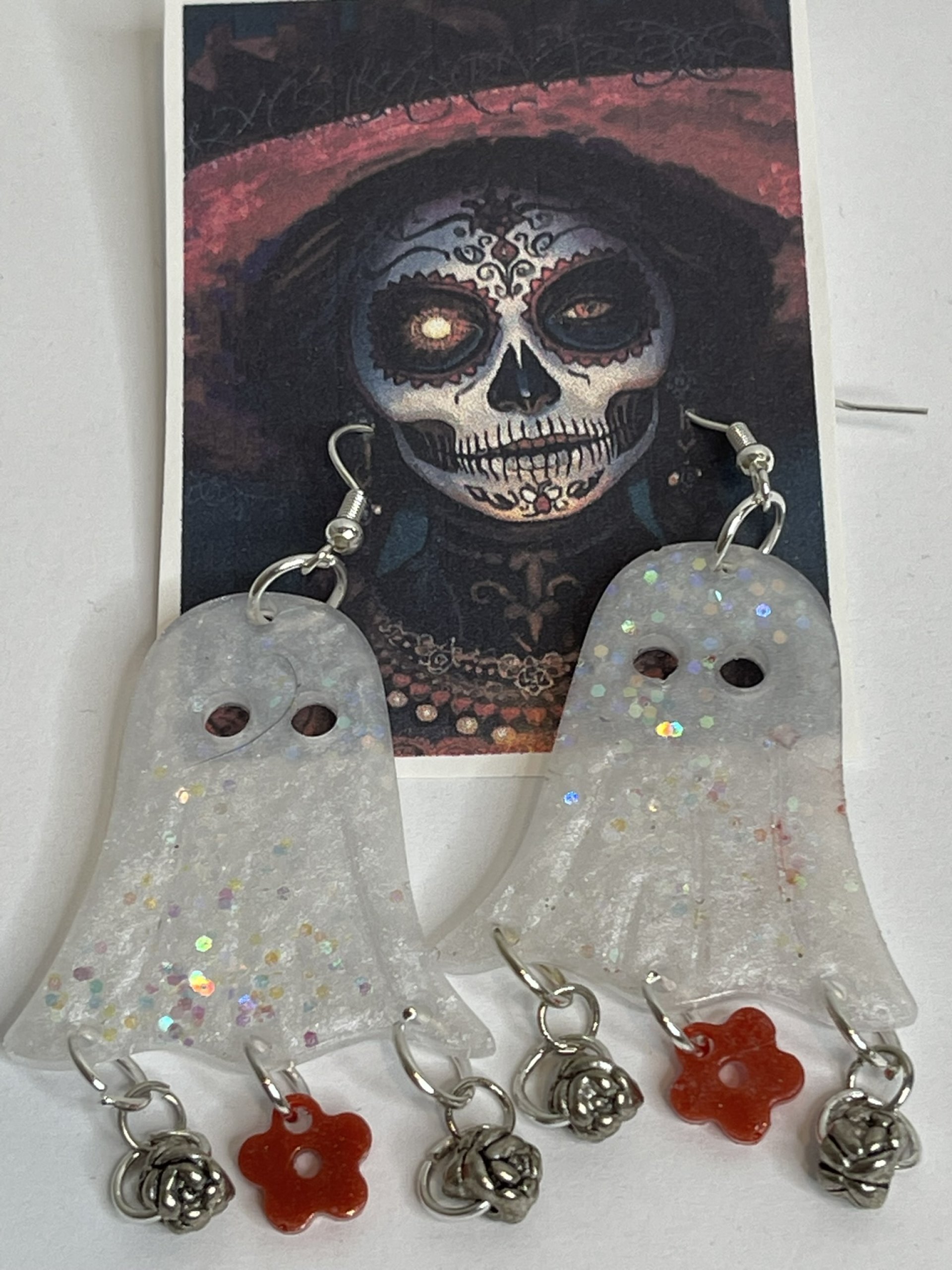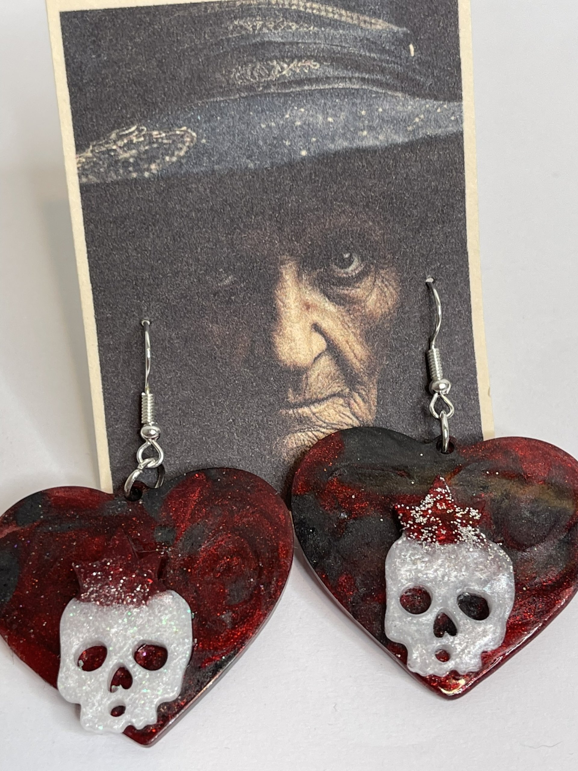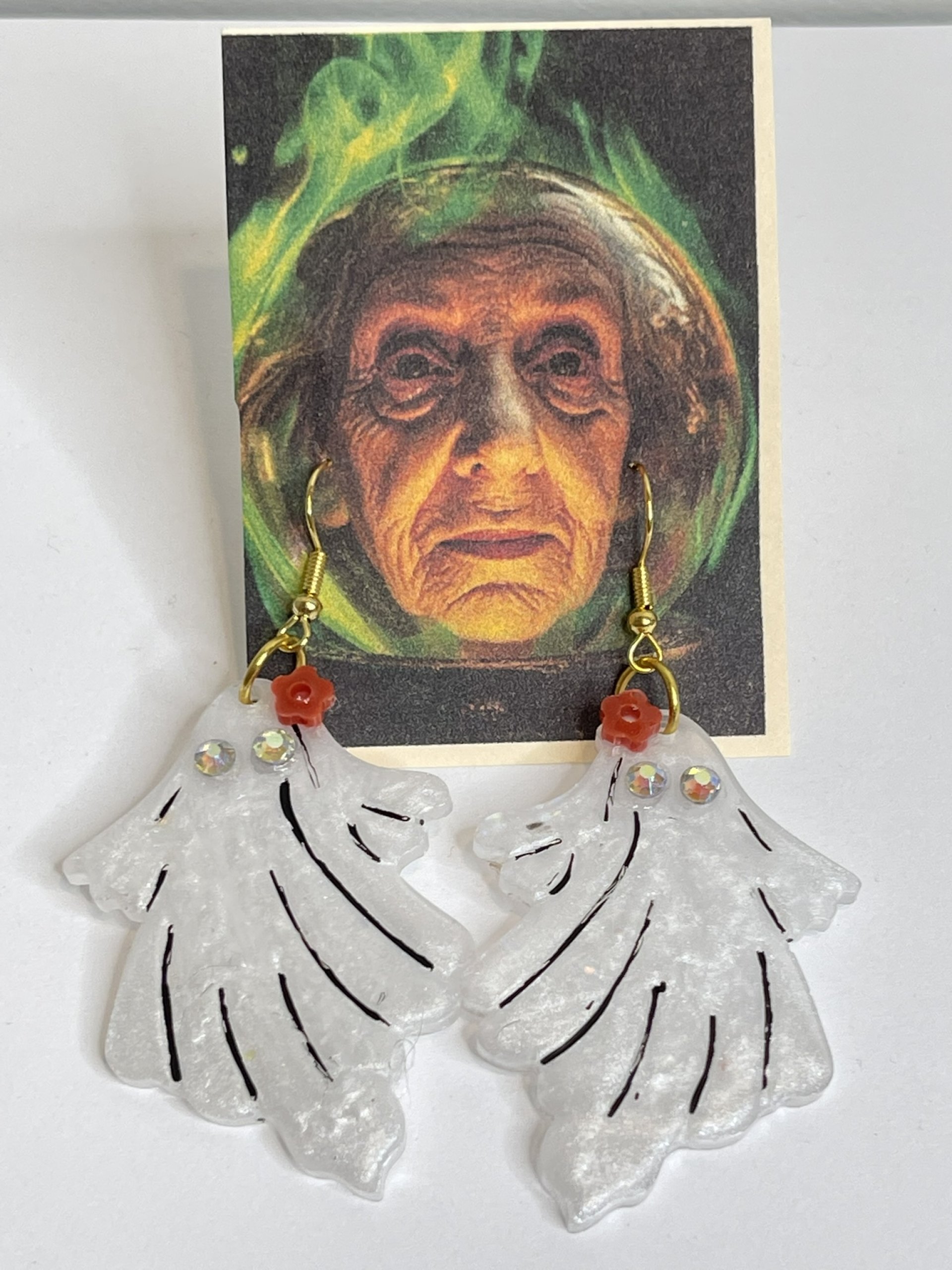 Hand poured array of Halloween-themed earrings. Made with high quality resin, pigments, mica powders, glitters... Each are unique. Findings are made with base metals.