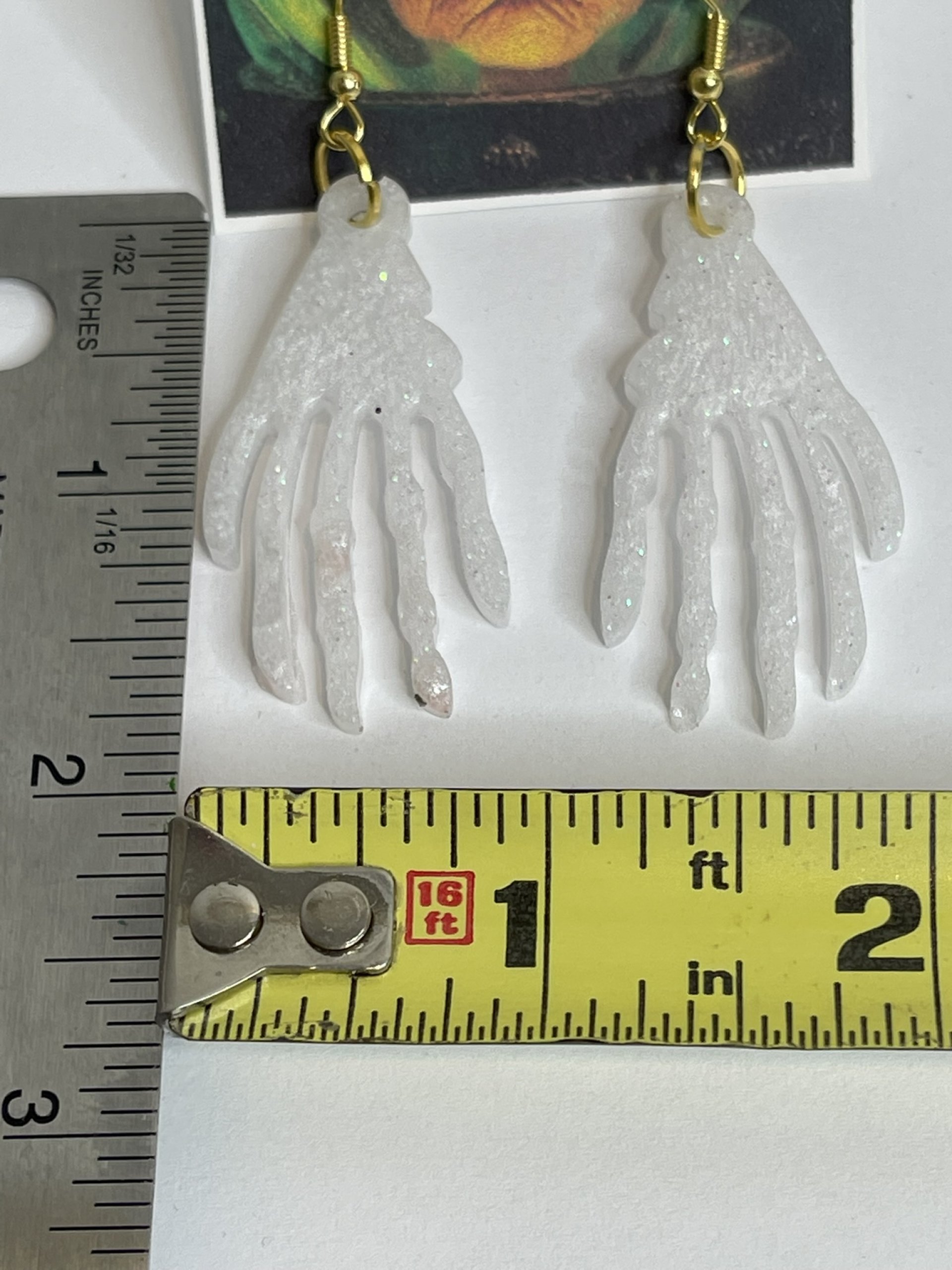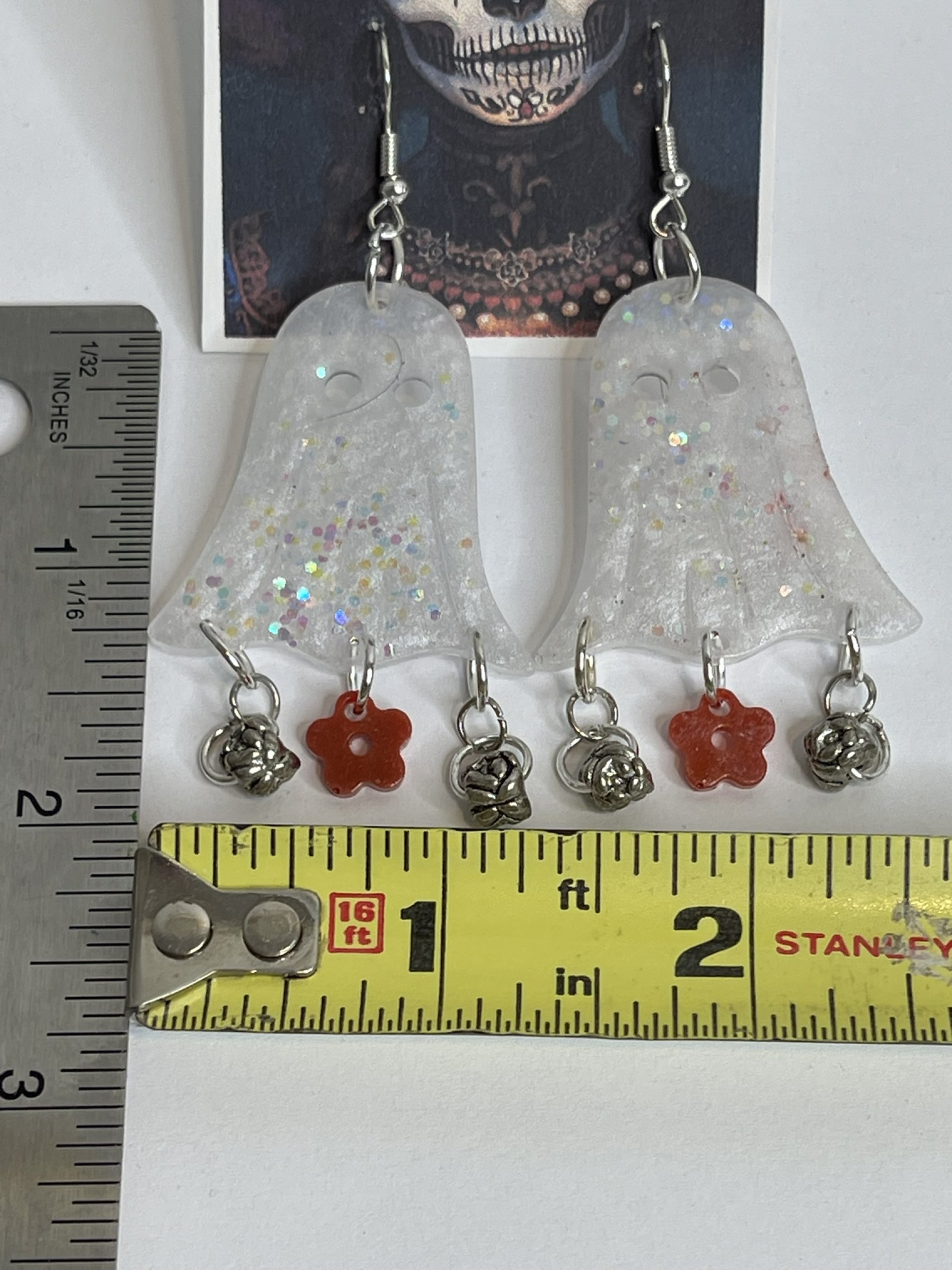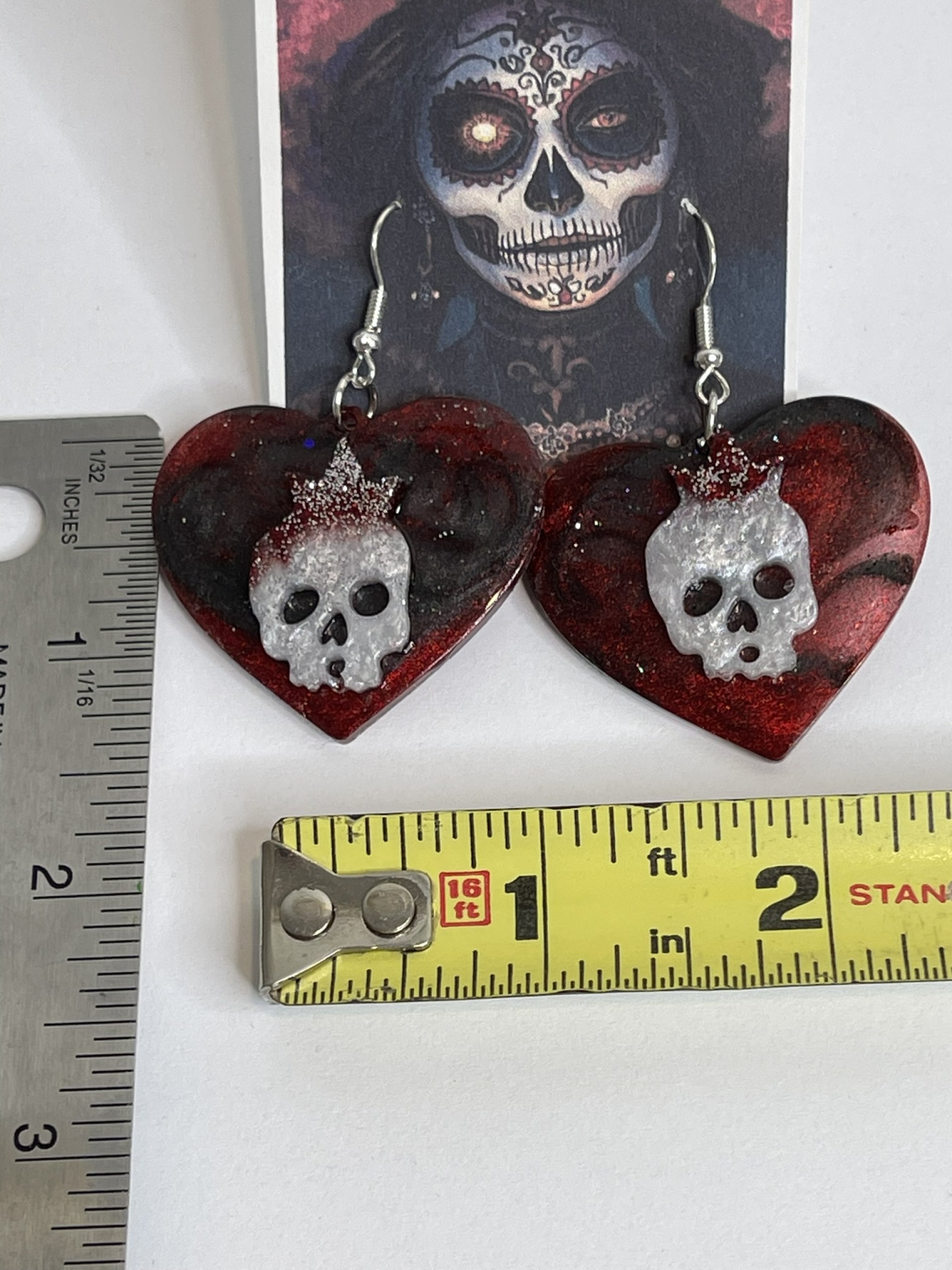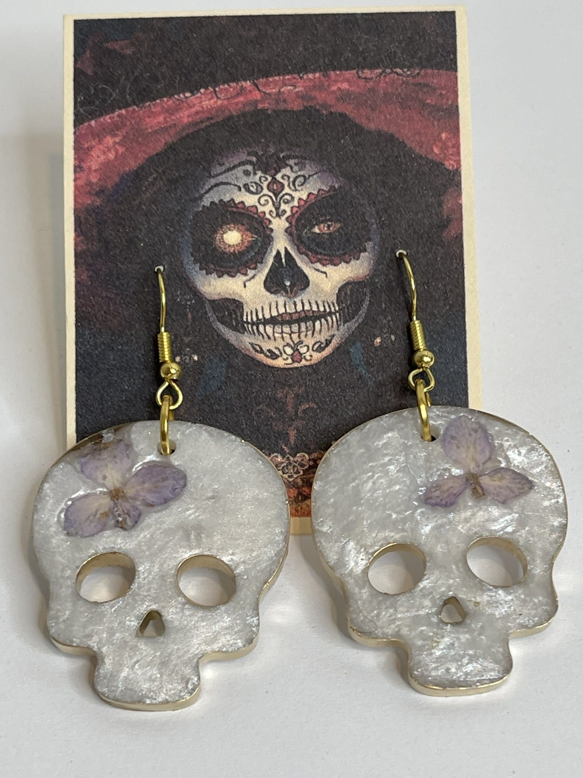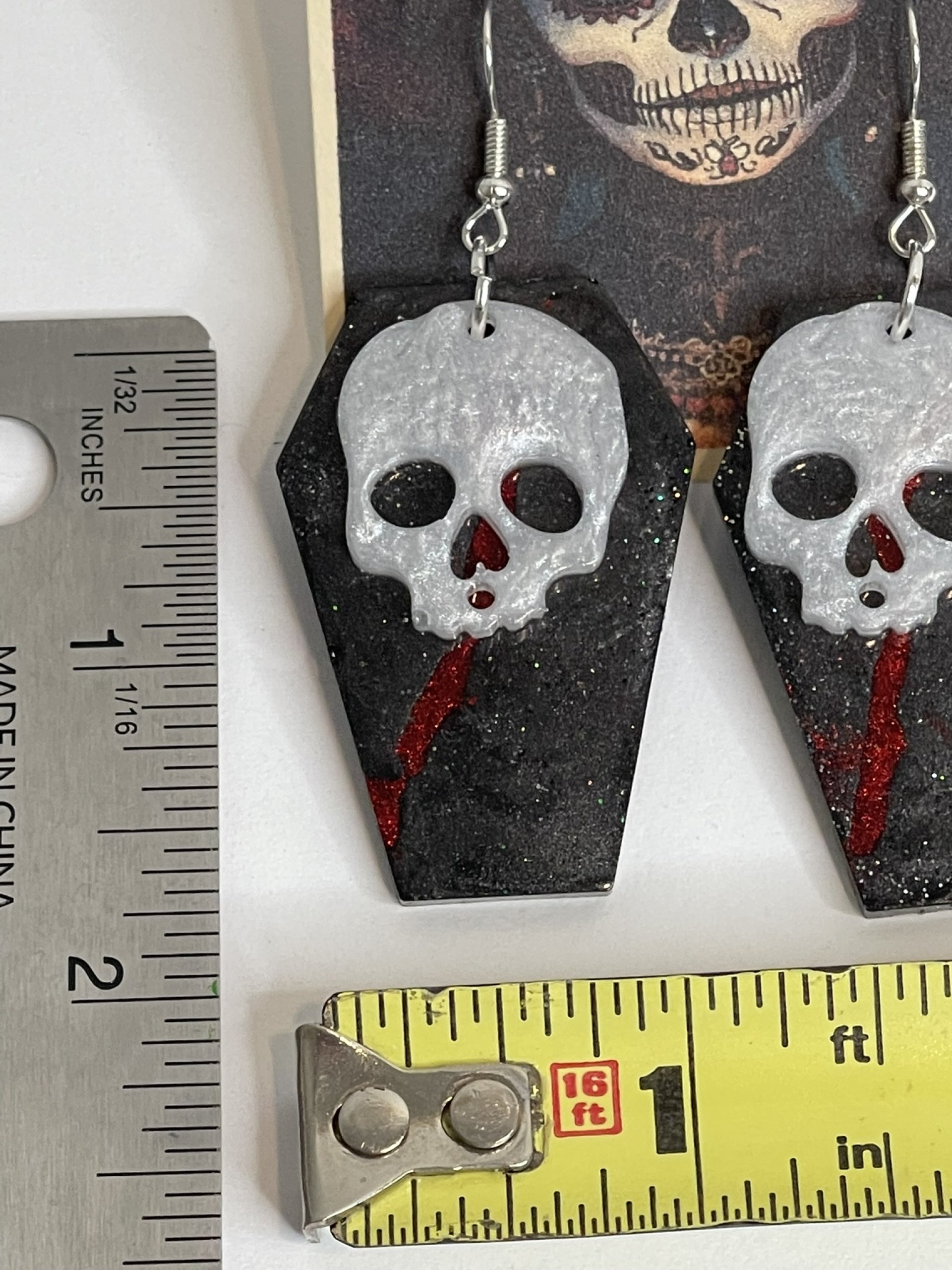 Hand poured array of Halloween-themed earrings. Made with high quality resin, pigments, mica powders, glitters... Each are unique. Findings are made with base metals.