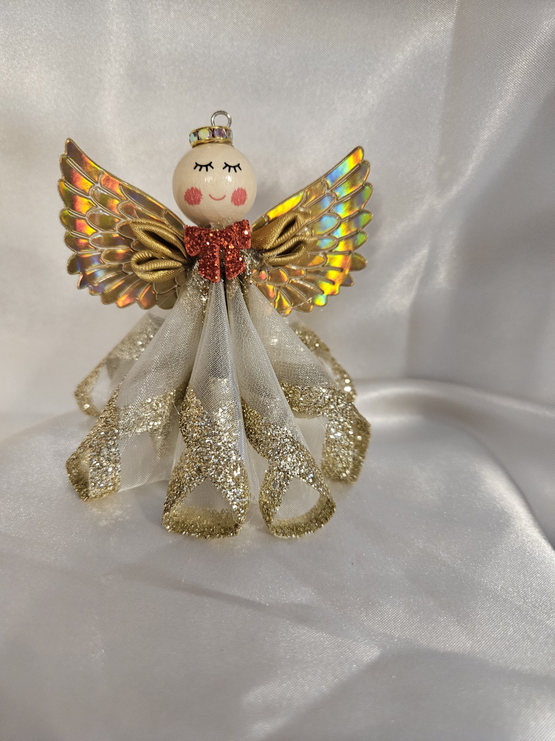 Gold with glitter embodies celestial magic and radiant joy. The gold represents heavenly light and spiritual enlightenment, while the glitter amplifies the brilliance. The sparkling effect evokes a sense of festivity and happiness. The gold is associated with wealth and blessings, suggesting the angel will bring good fortune.