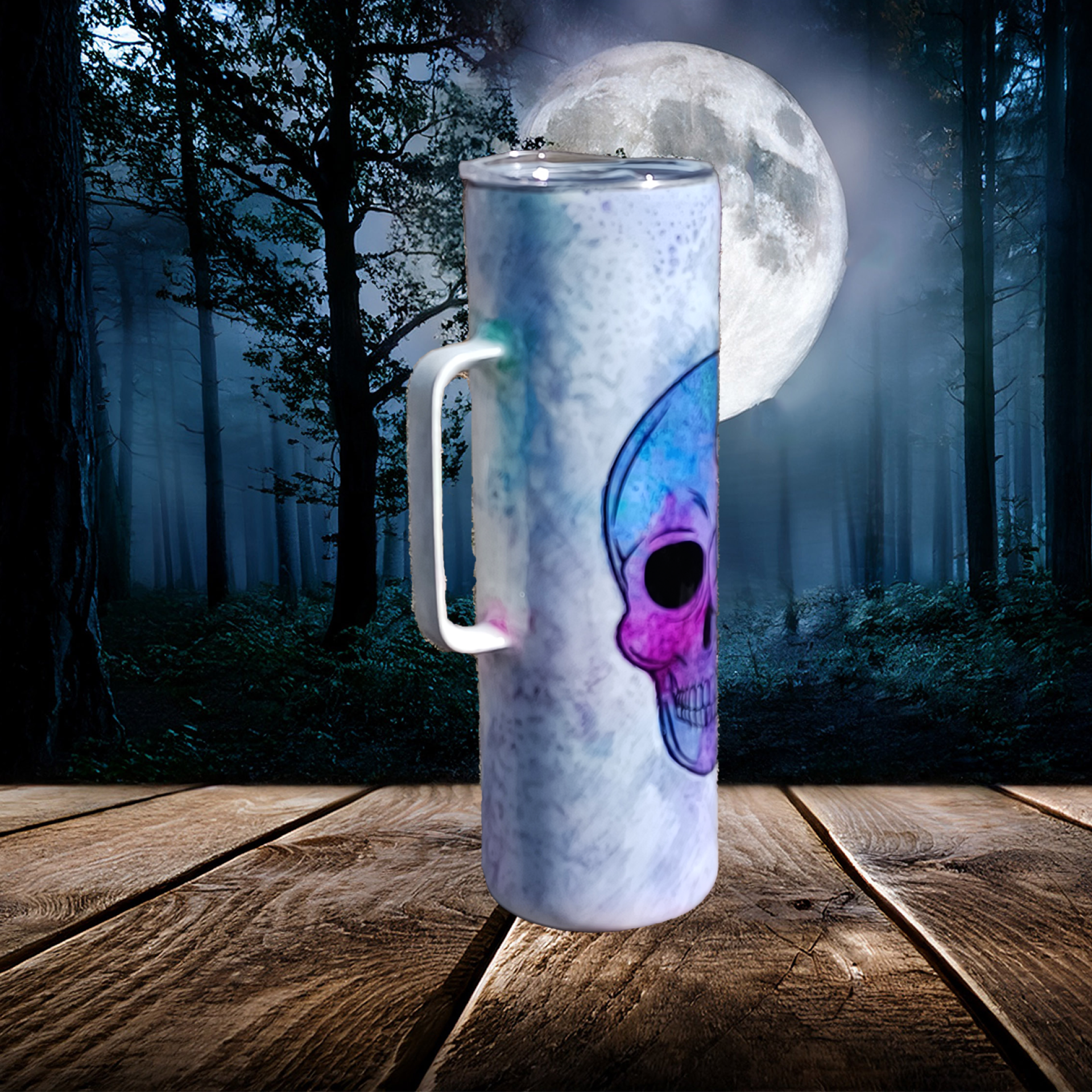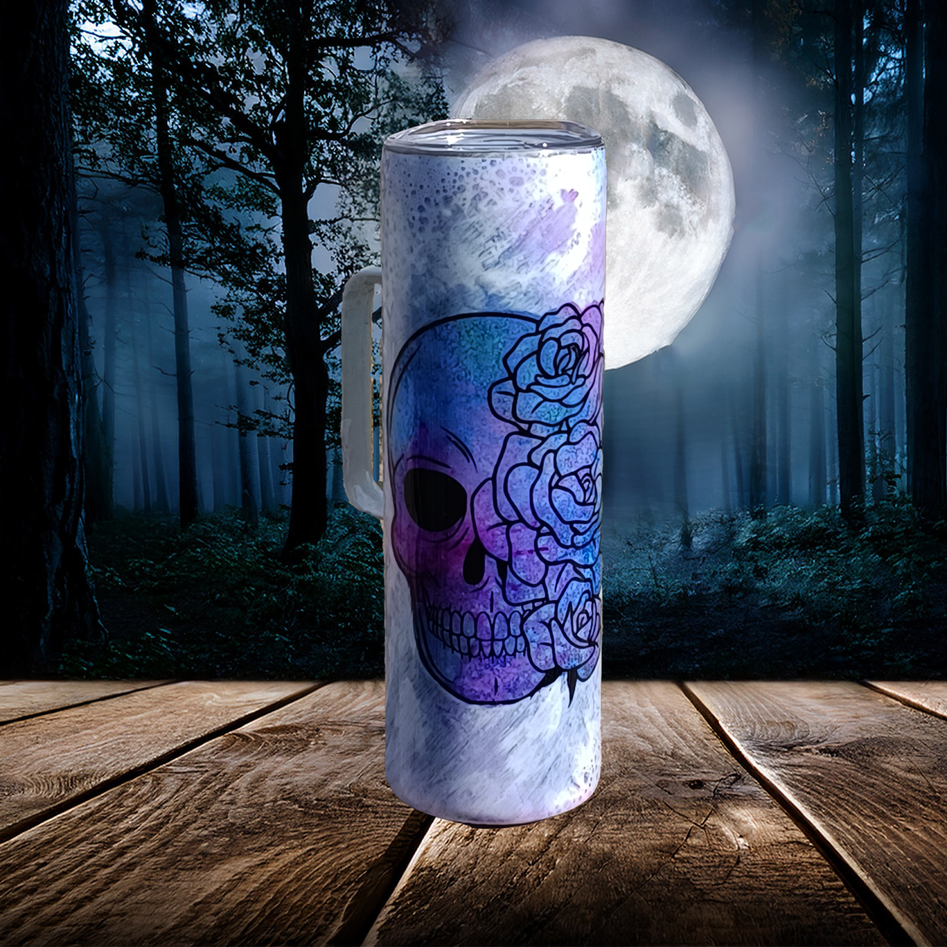 Celebrate the haunting harmony of life and decay with our Grave Beauty tumbler. This striking design features a vivid watercolor-style skull intertwined with blooming roses in rich hues of violet, magenta, and electric blue. The soft, marbled background gives the piece a dreamy, ghostly atmosphere—making it the perfect statement piece for those who live life a little offbeat. Whether you’re sipping iced coffee, herbal tea, or something wickedly stronger, this tumbler is a conversation starter you’ll carry with pride.