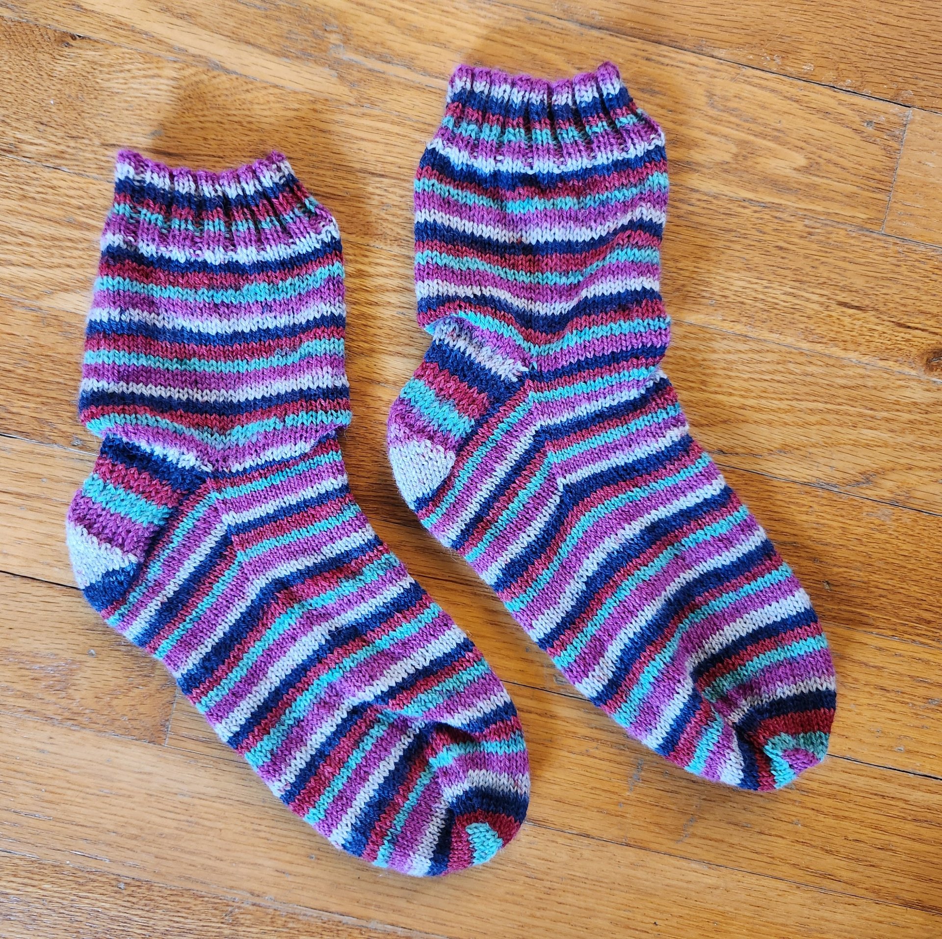 Hand knit wool socks. Warm and rugged. Perfect for all of your outdoor adventures. Fits women's shoe sizes 7-9. Machine washable. Free shipping over $100.