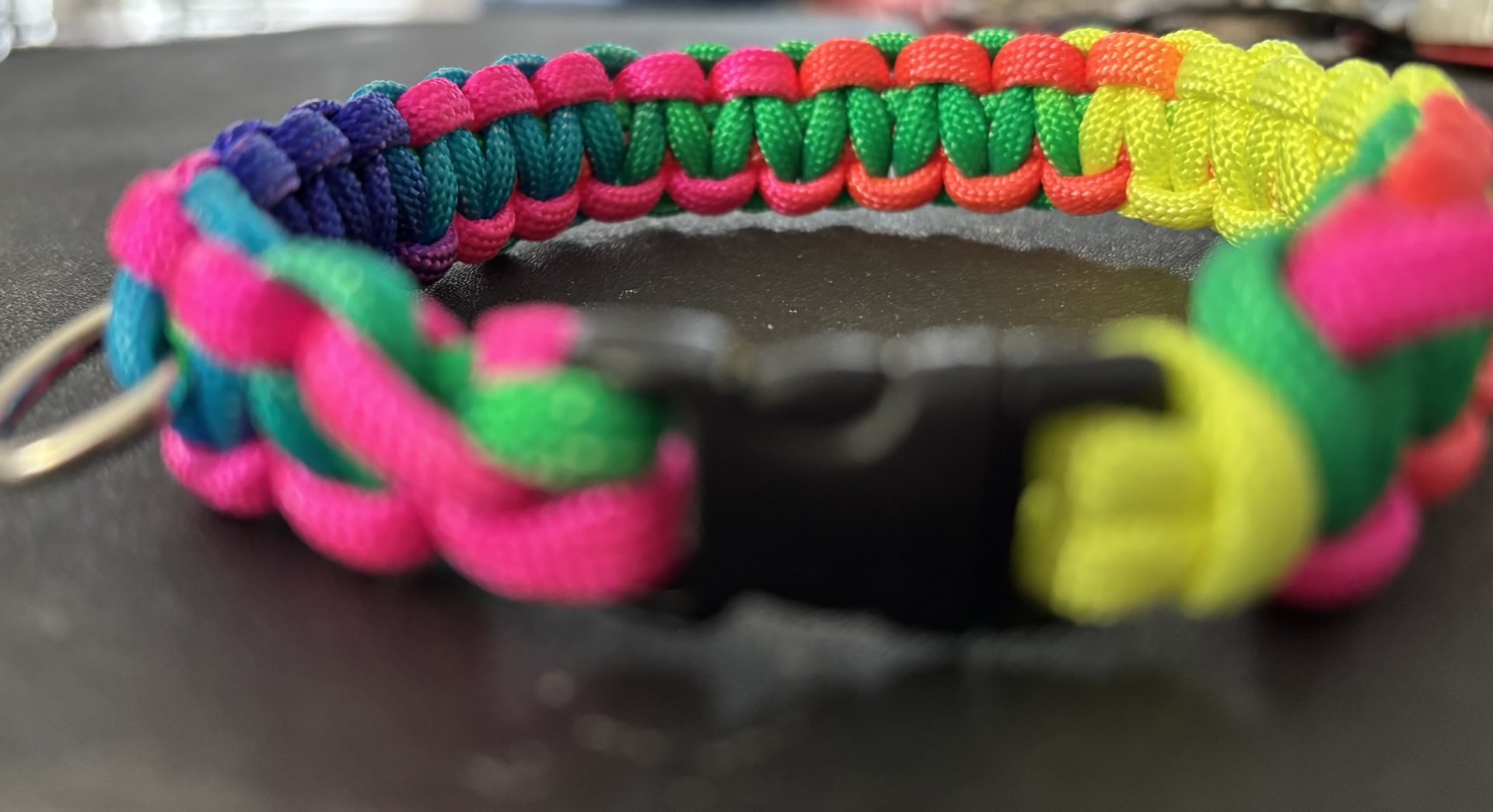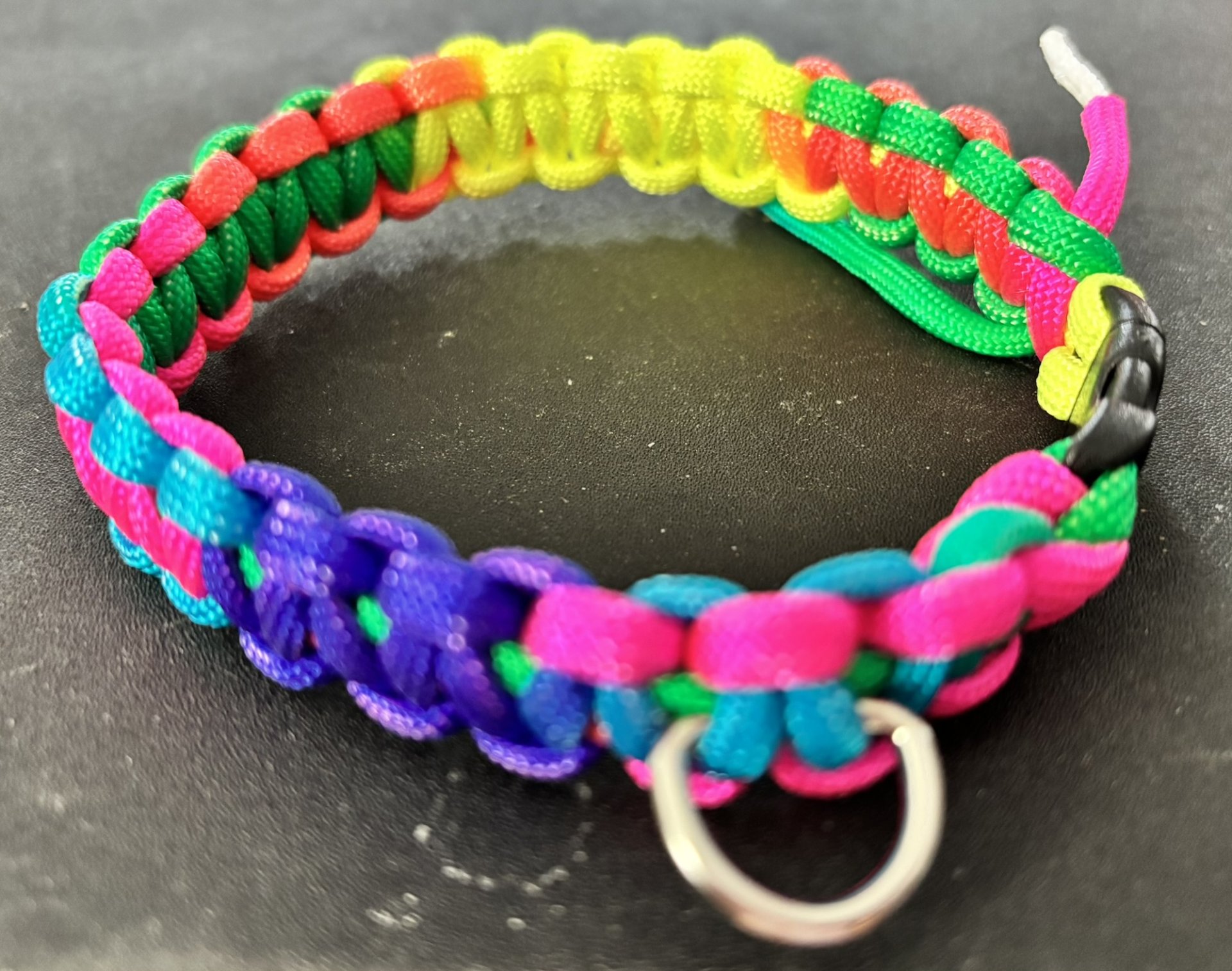 Colorful Rainbow Paracord 550# weight handwoven pet collar 12" in length for small dogs or cats. Matching leash can be made.