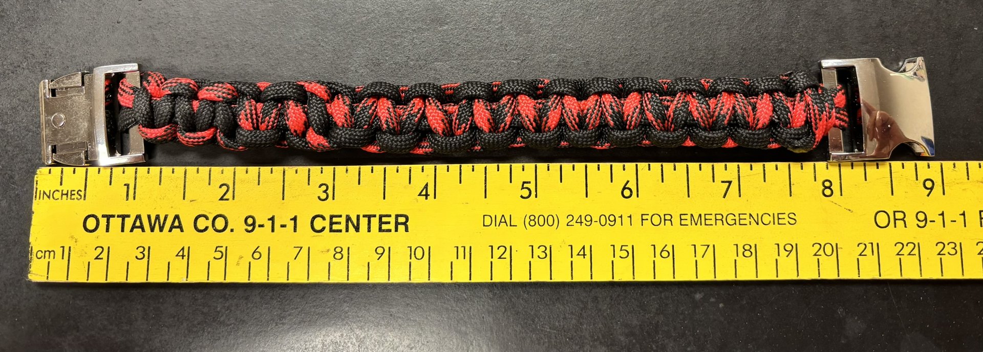 Hand woven men's paracord bracelet 9" length. 550# paracord and stainless steel clasp