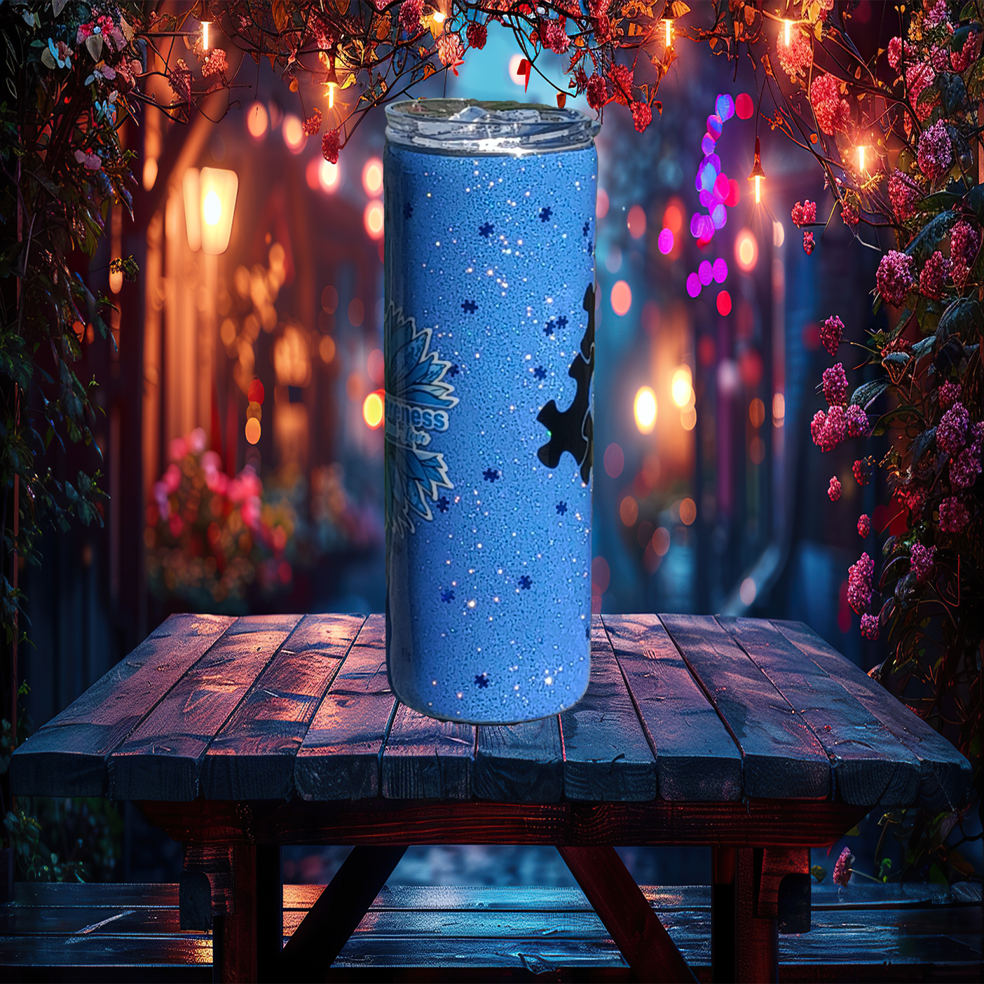 Celebrate uniqueness and spread love with our “Hope in Every Petal” tumbler—a vibrant tribute to Autism Awareness. Featuring a bold blue sunflower design with puzzle piece accents and shimmering blue glitter, this tumbler is a stunning reminder that every mind blooms in its own way.