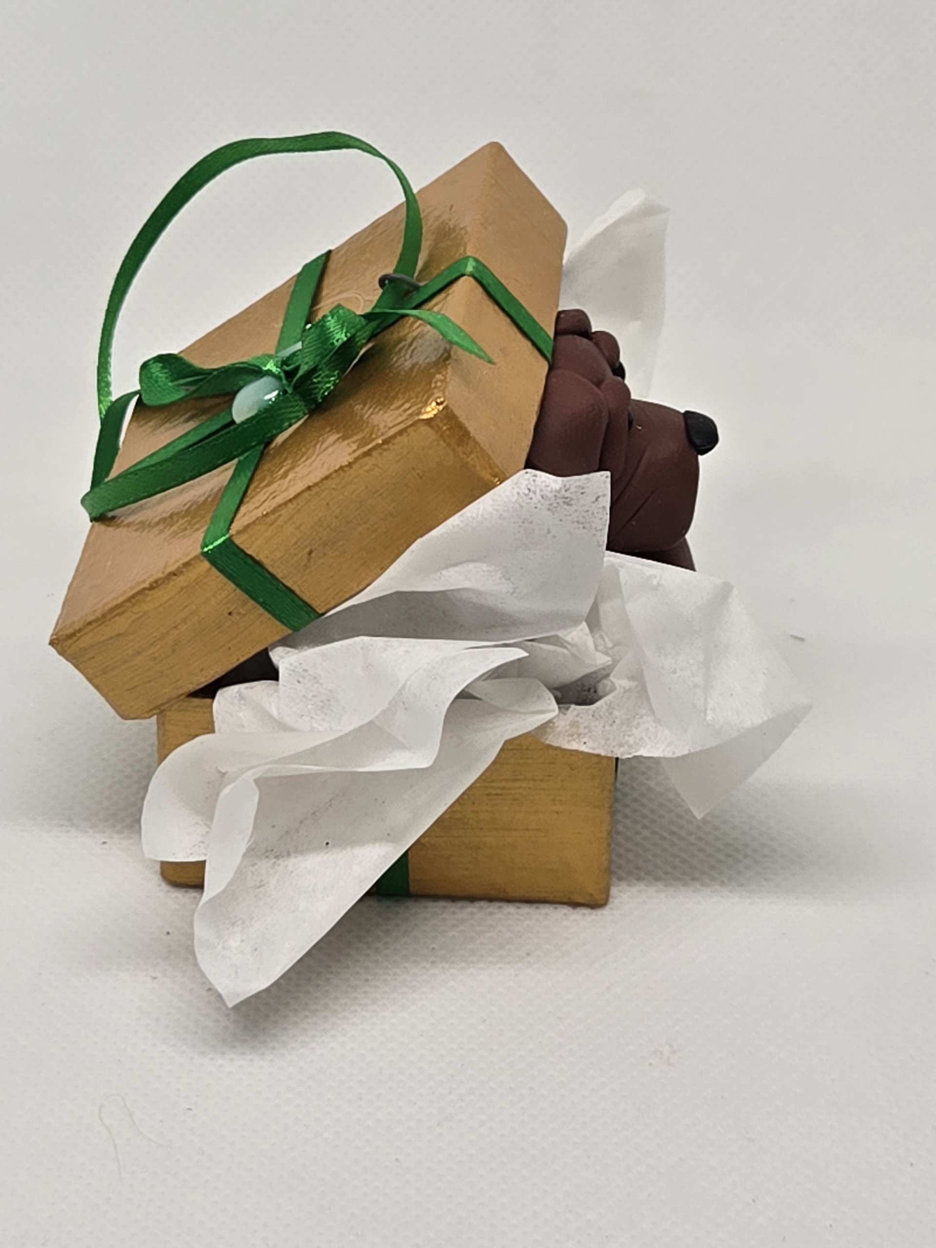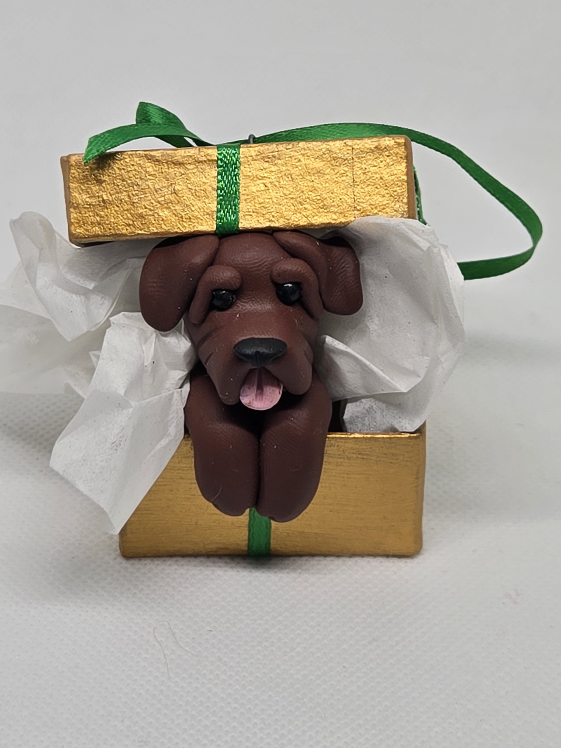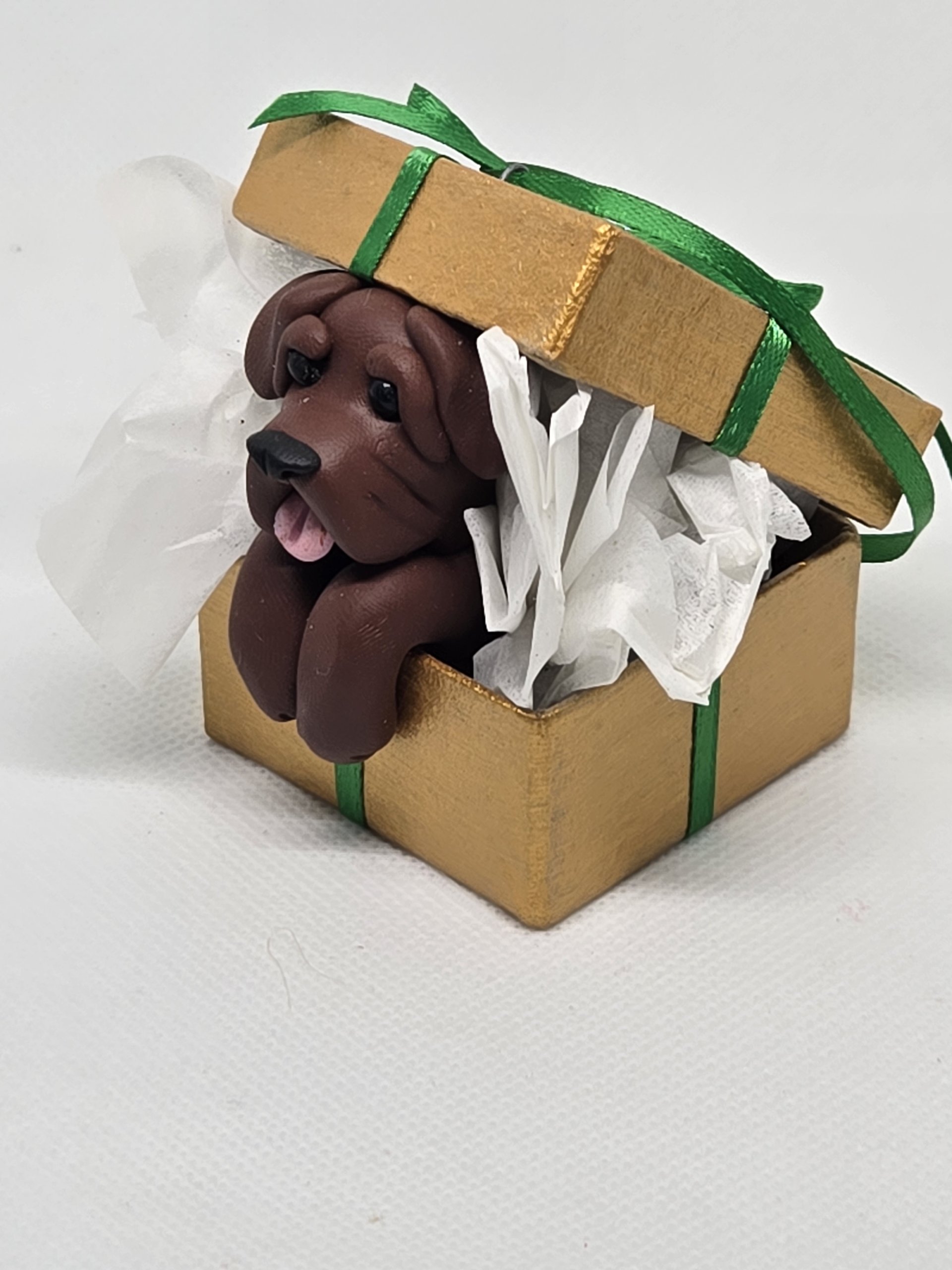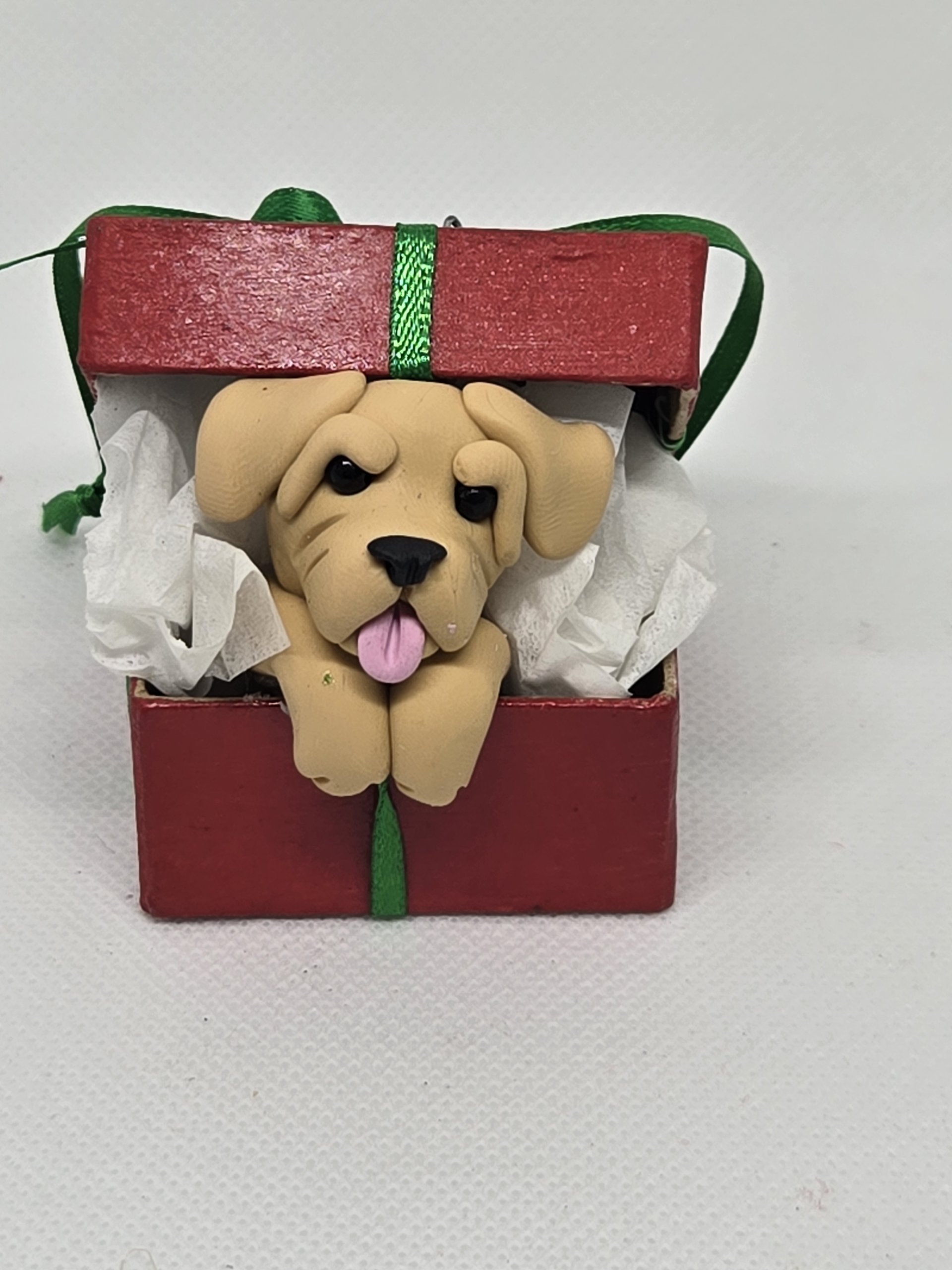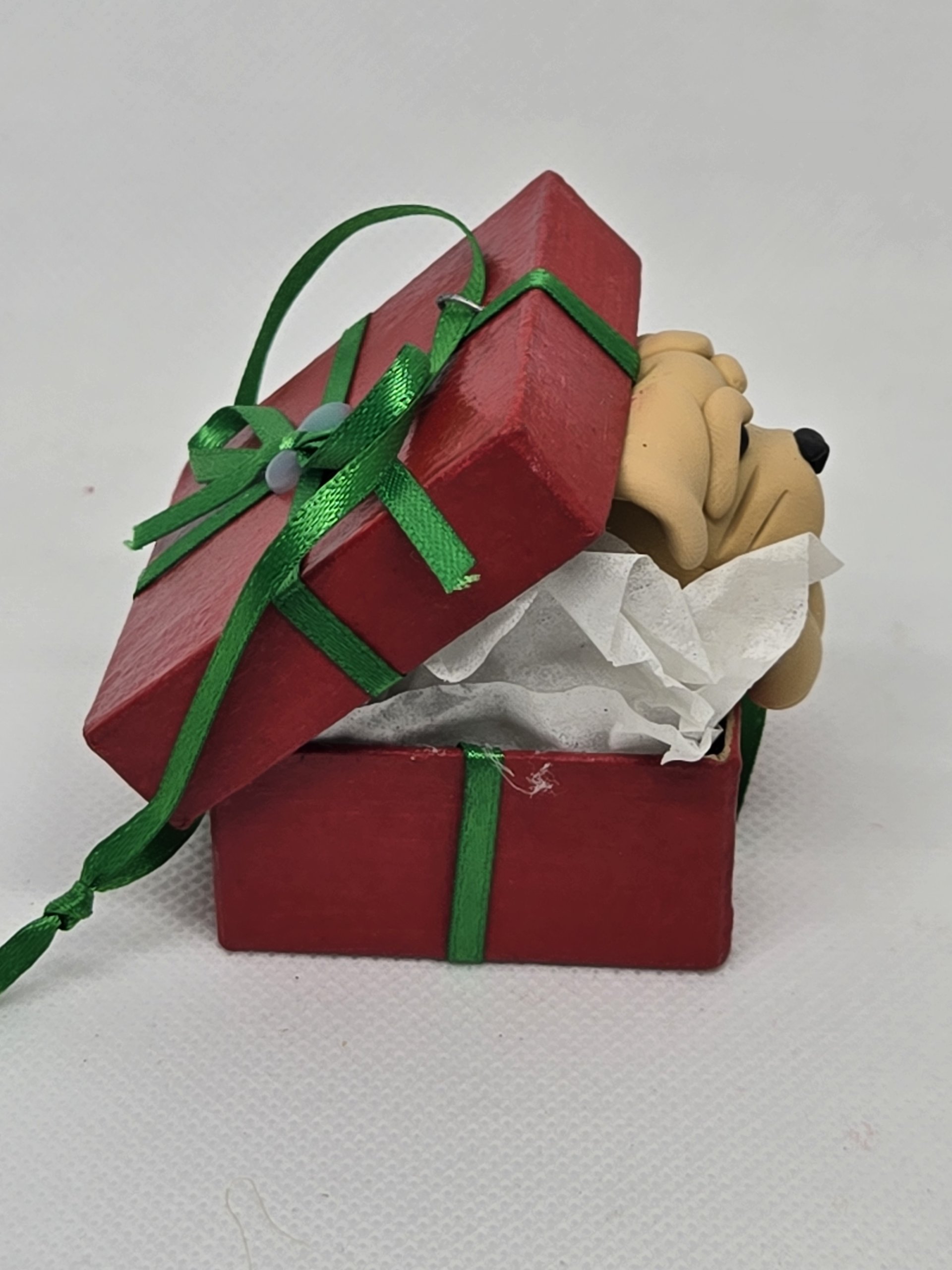 I have meticulously hand-sculpted the dogs using colored polymer clay and placed them inside a beautifully hand-painted gift box. Please note that each ornament is uniquely crafted, so there may be slight variations from the one shown in the picture.