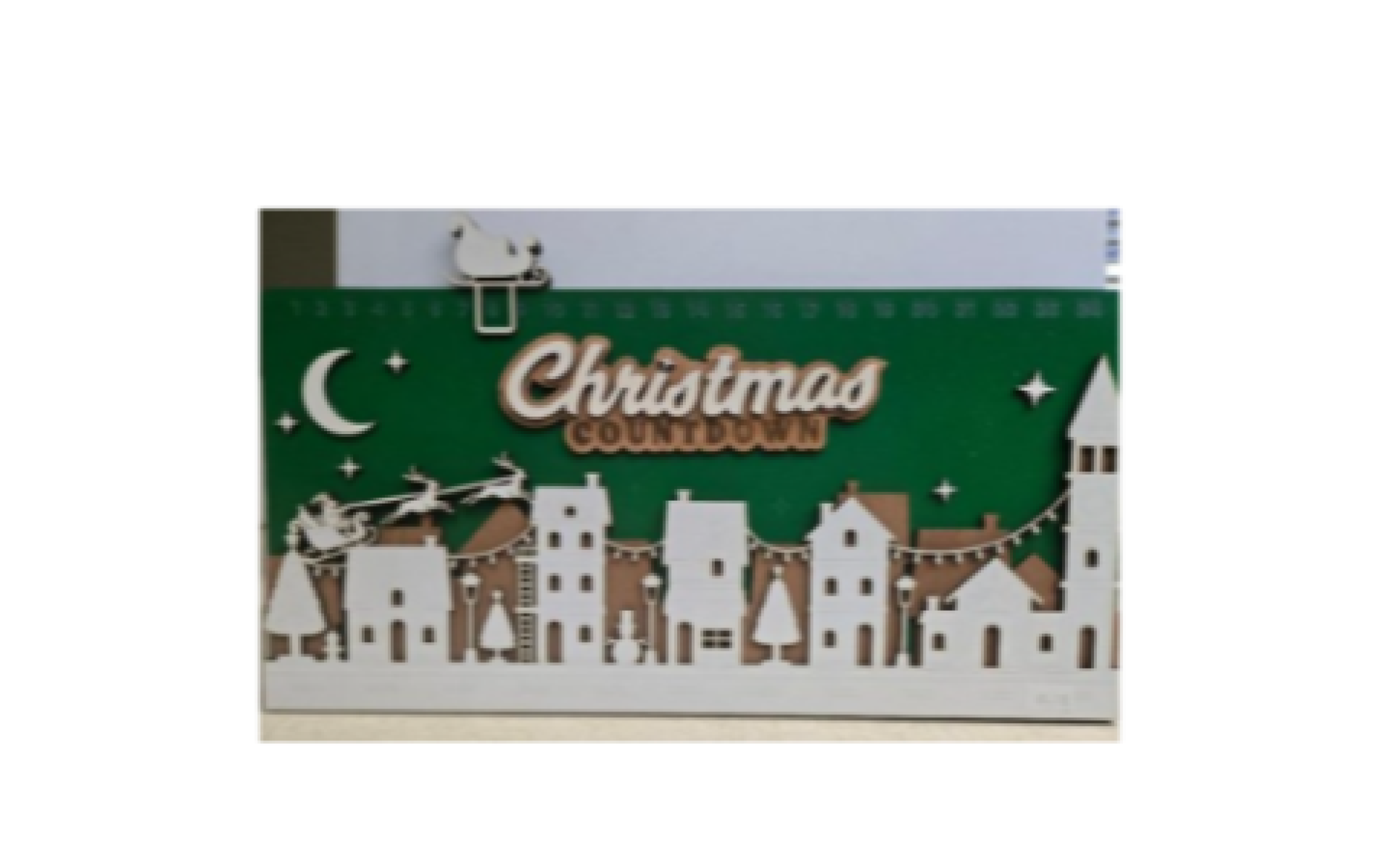 Celebrate the magic of the holiday season with this laser cut wooden Christmas Countdown Sign. Beautifully designed with a festive Christmas village scene and crisp countdown numbers displayed across the top. This charming piece brings warmth, nostalgia, and excitement to any holiday décor setup.