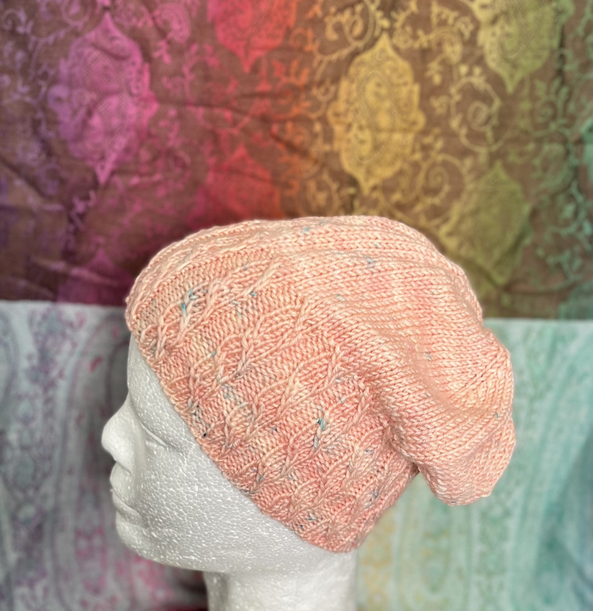 This slouchy beanie has been handknit using an indie-dyed merino wool. The twisted brim makes this beanie standout from the more basic beanie. This beanie is lightweight enough to keep in your coat pocket for those unpredictable upcoming weather, and will still keep you cozy and warm! Thank you for supporting my small business!