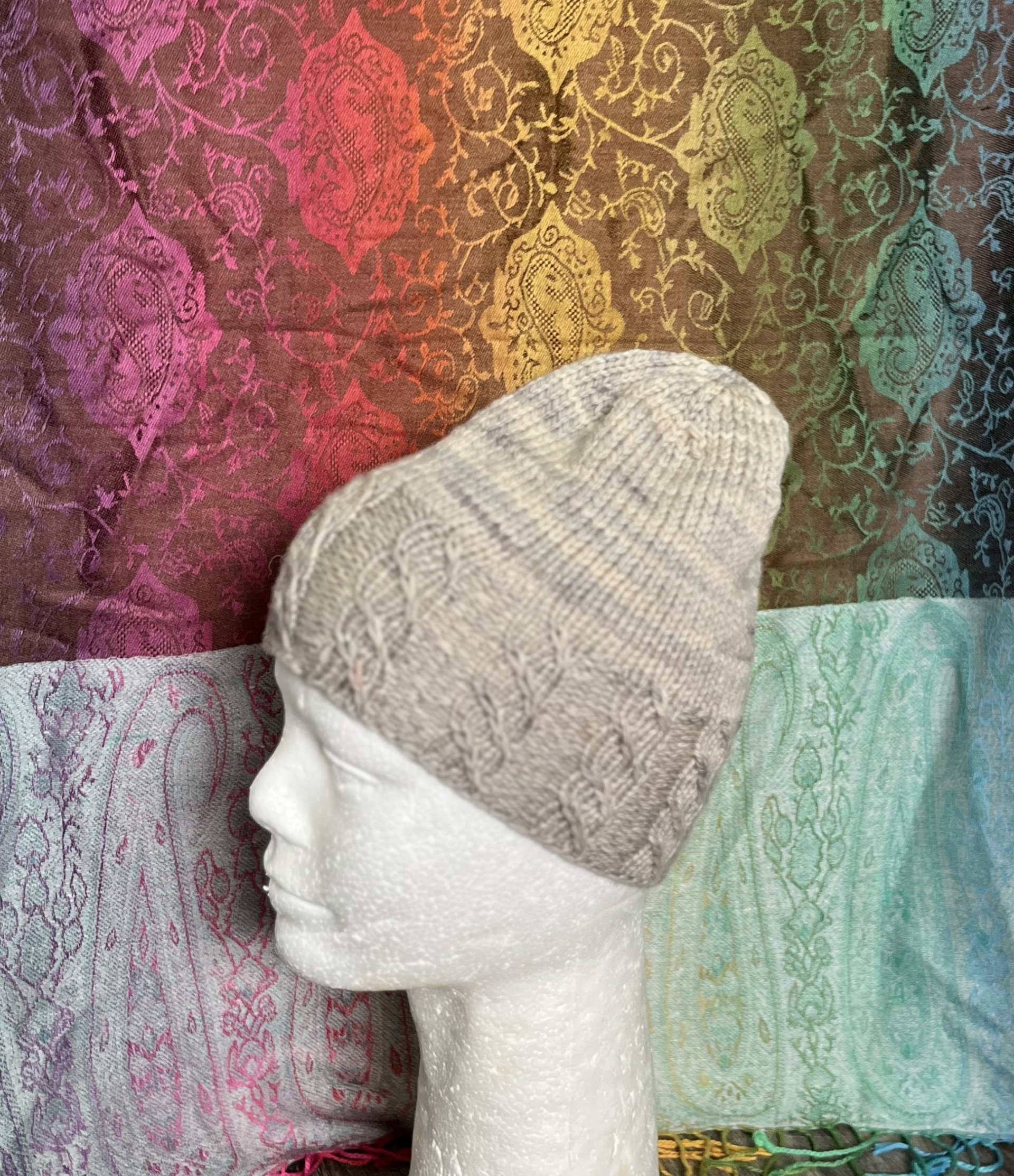 This slouchy beanie has been handknit using an indie-dyed merino wool. The twisted brim makes this beanie standout from the more basic beanie. This beanie is lightweight enough to keep in your coat pocket for those unpredictable upcoming weather, and will still keep you cozy and warm!
