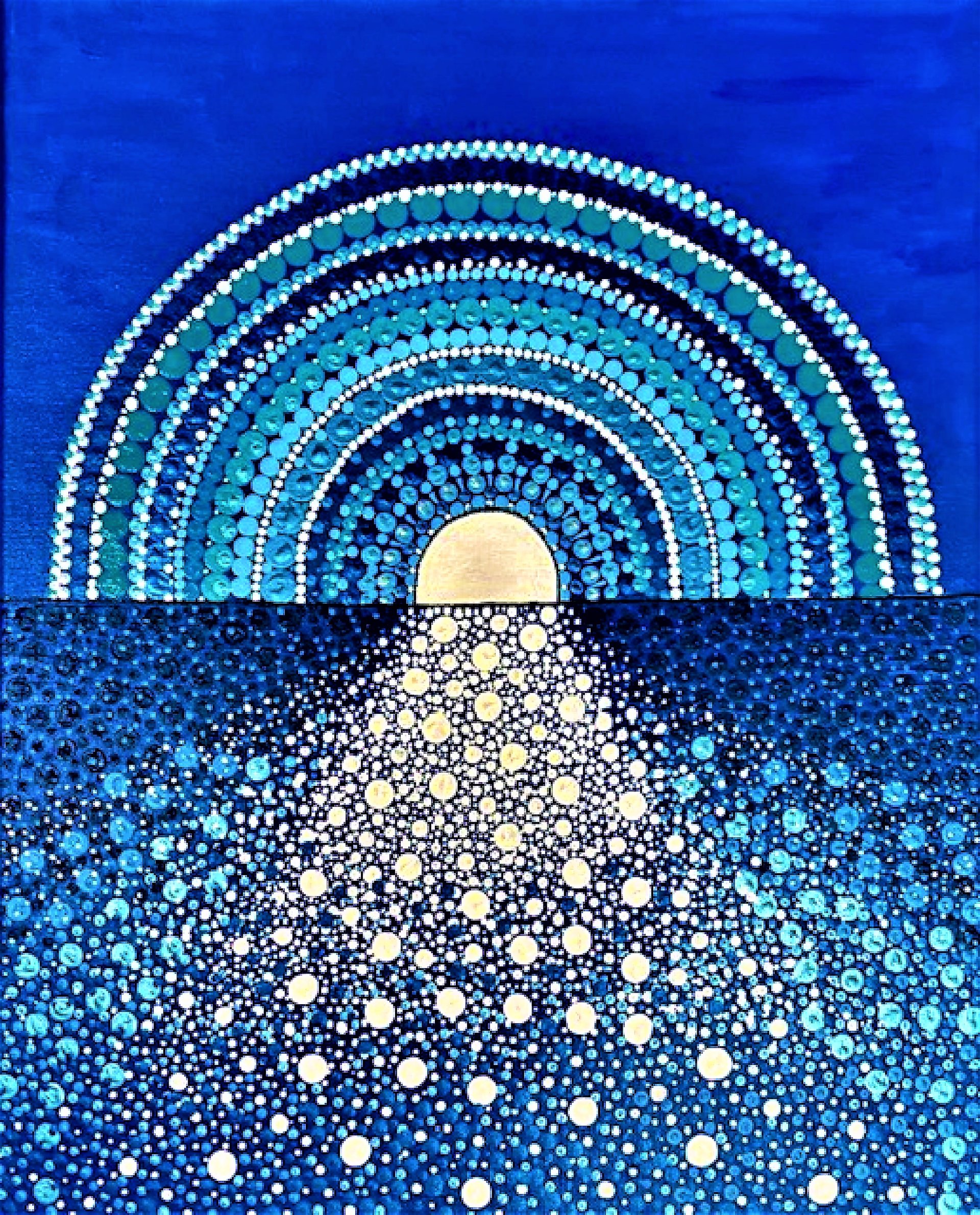 This was a commissioned piece that has sold. I'm choosing to also make it available here! If interested, please reach out to me to discuss the details of what might be of interest to you. This piece was made with acrylic paint using the Dot Art technique. This particular piece shown here was made on a 12" x 12" canvas.