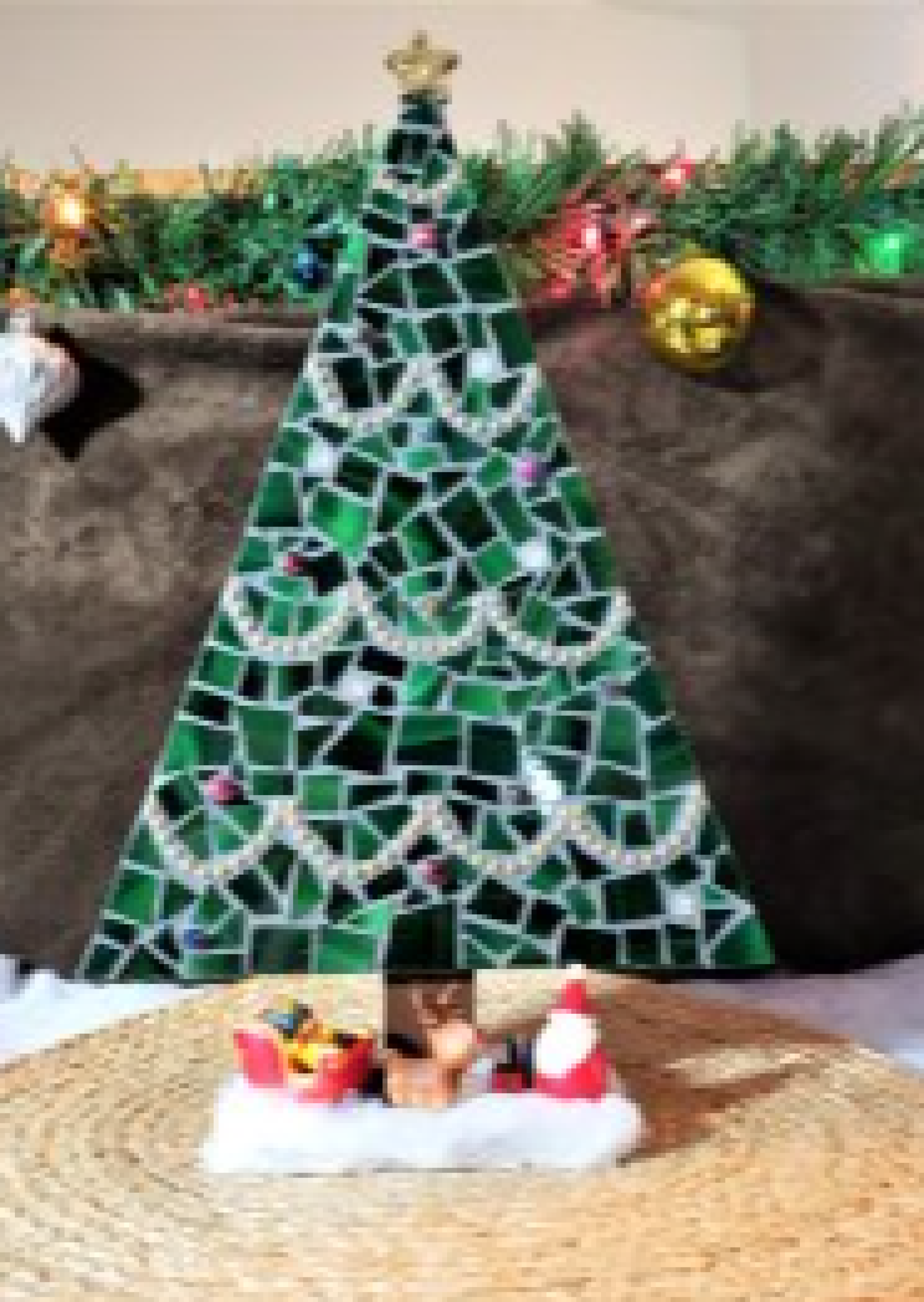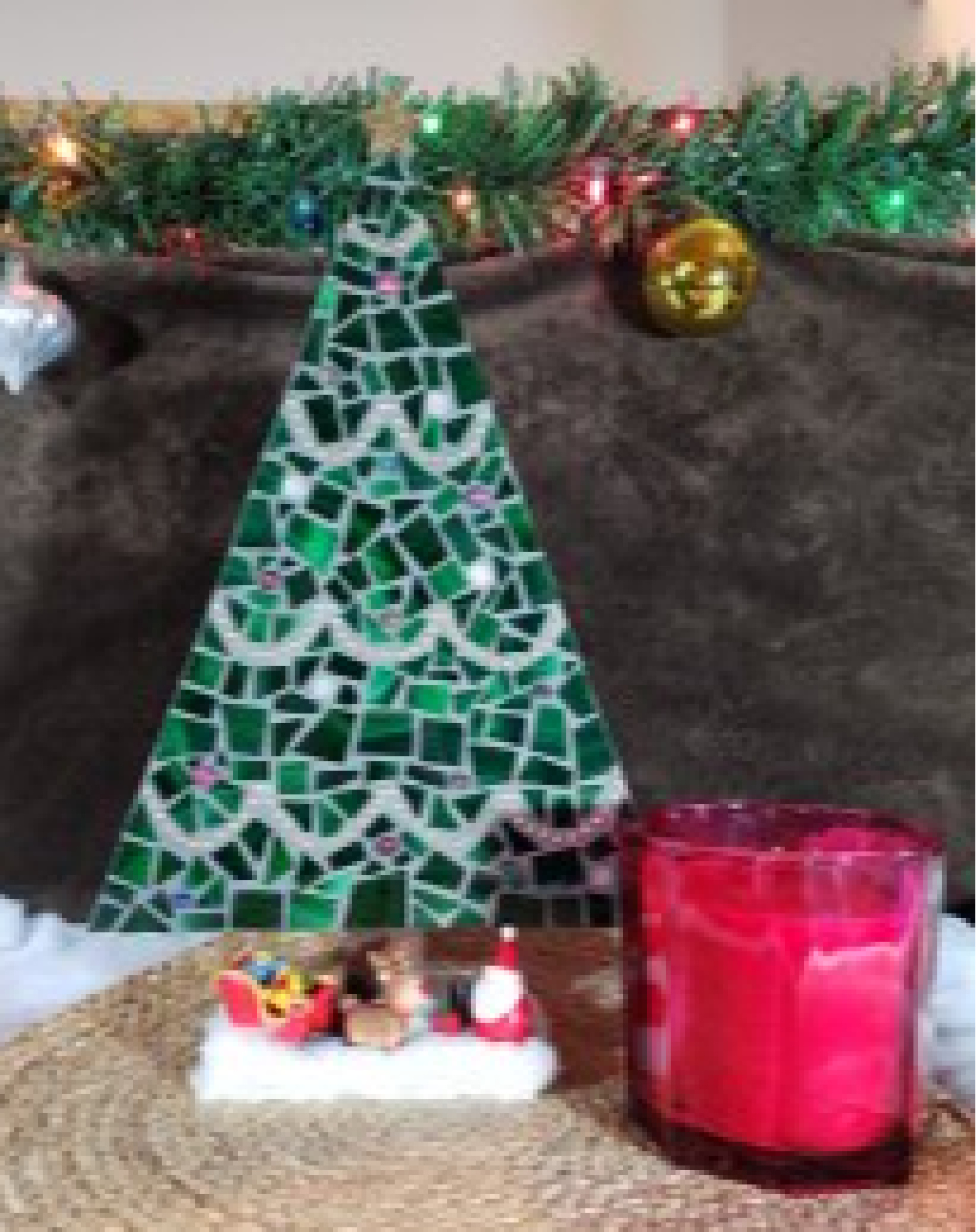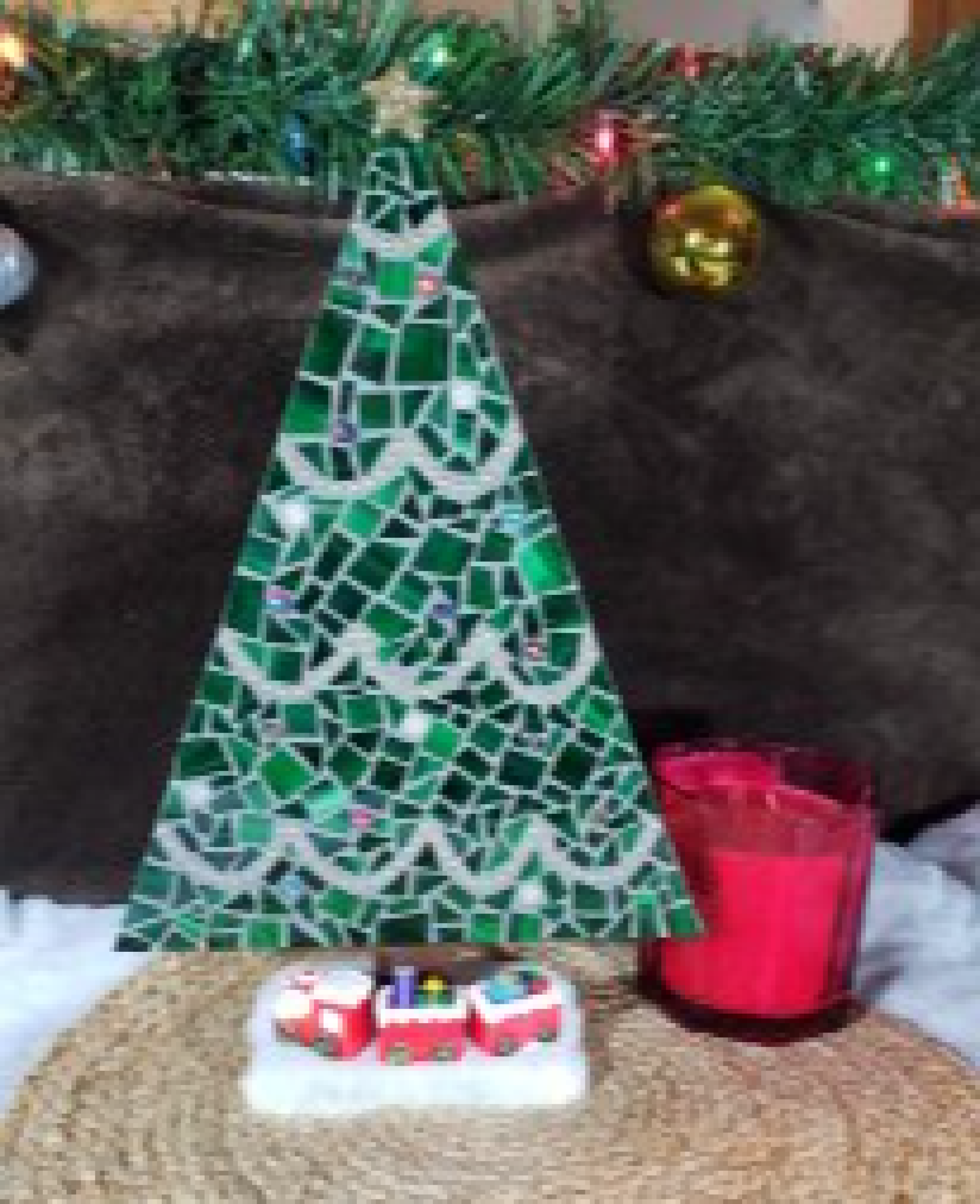 Handcrafted Mosaic Christmas Tree Scene – Festive Holiday Decor