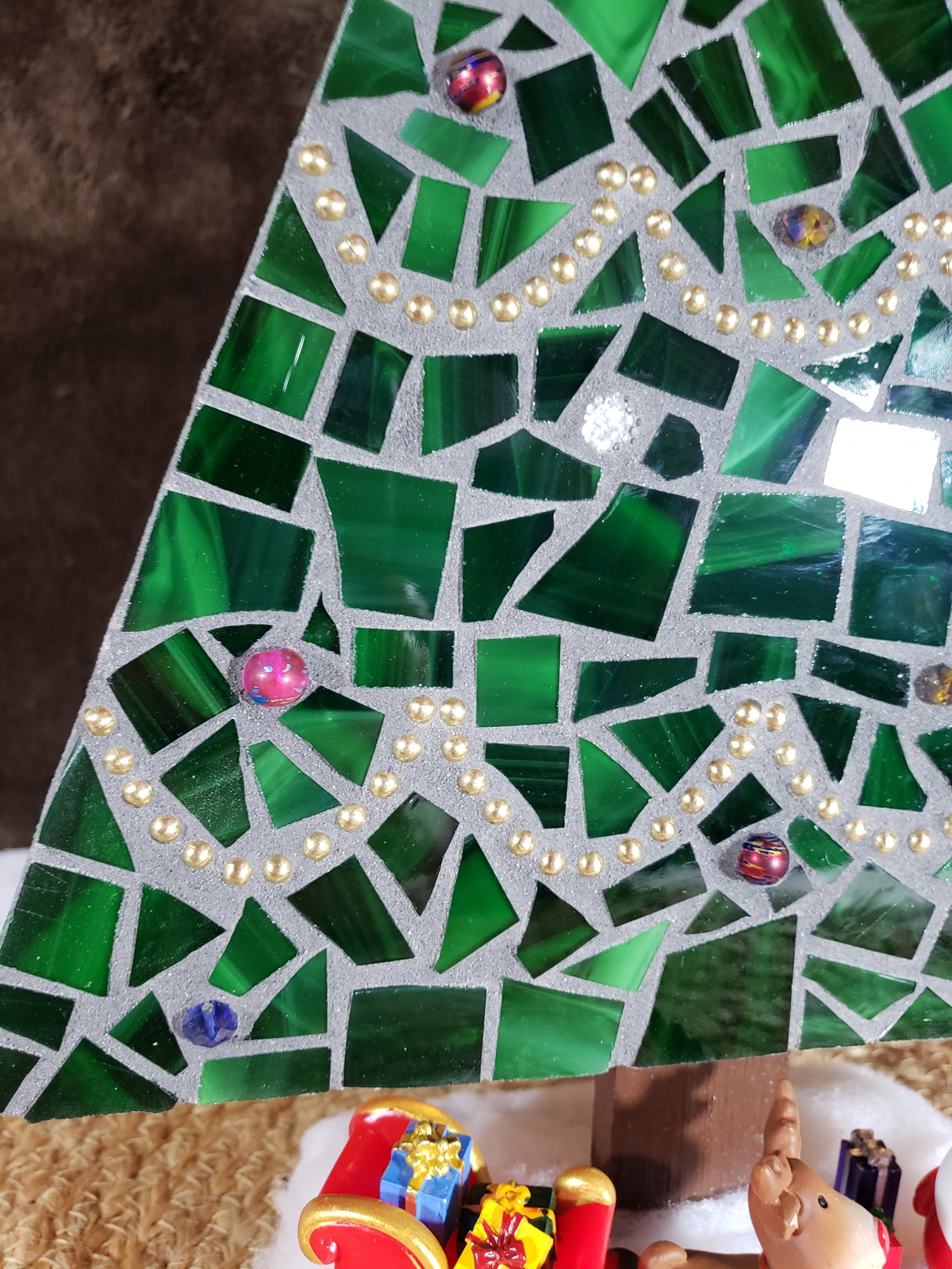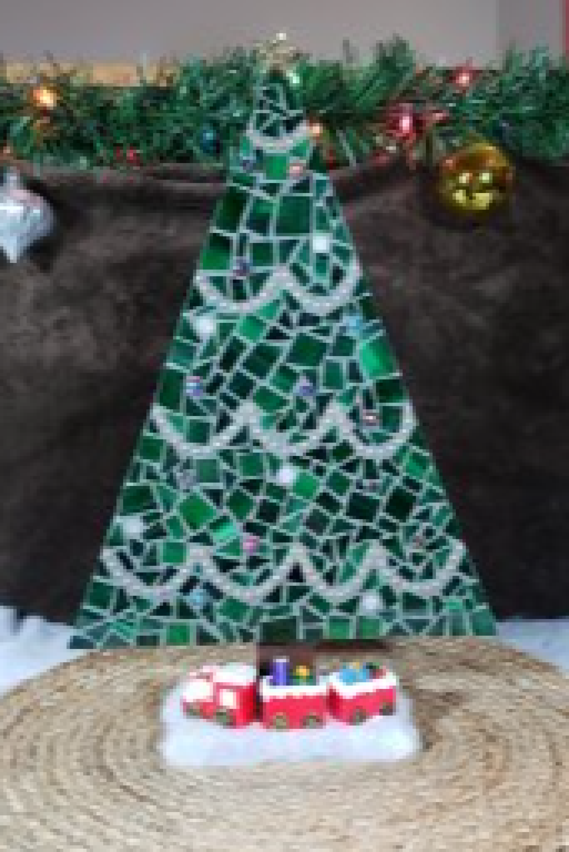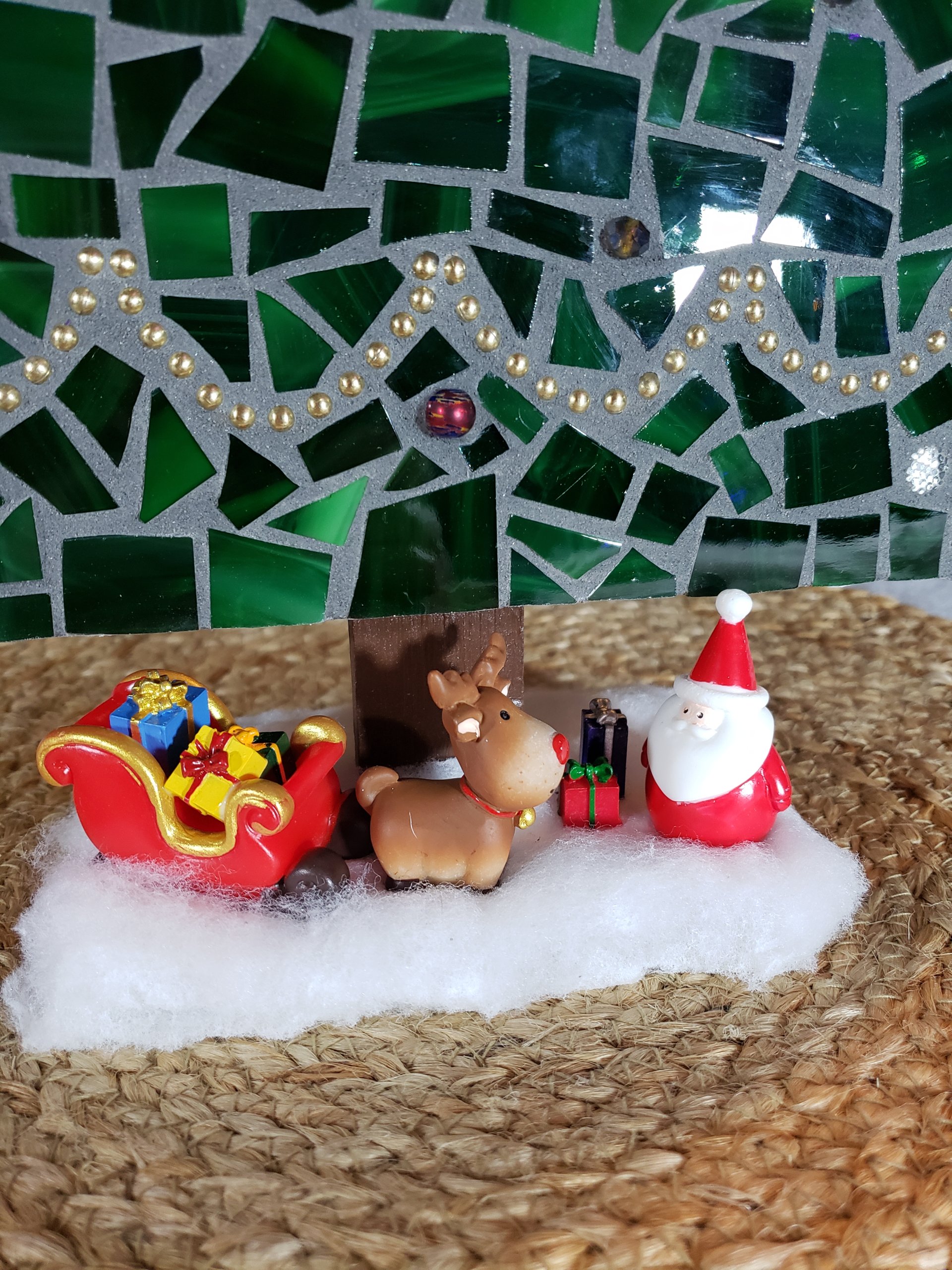 Handcrafted Mosaic Christmas Tree Scene – Festive Holiday Decor