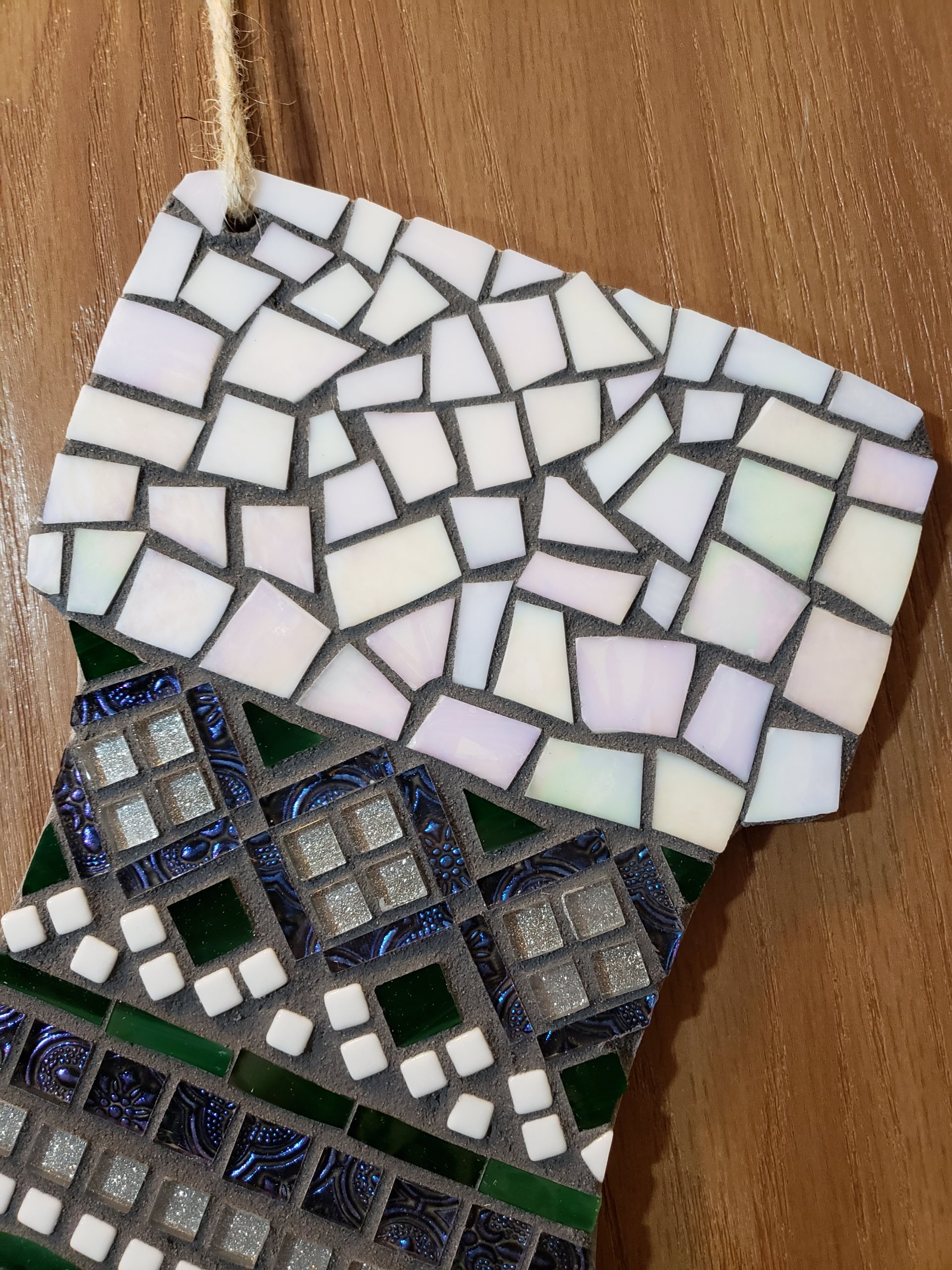 ✨ Wooden base | Glass mosaic | Jute hanging cord | Handmade holiday décor