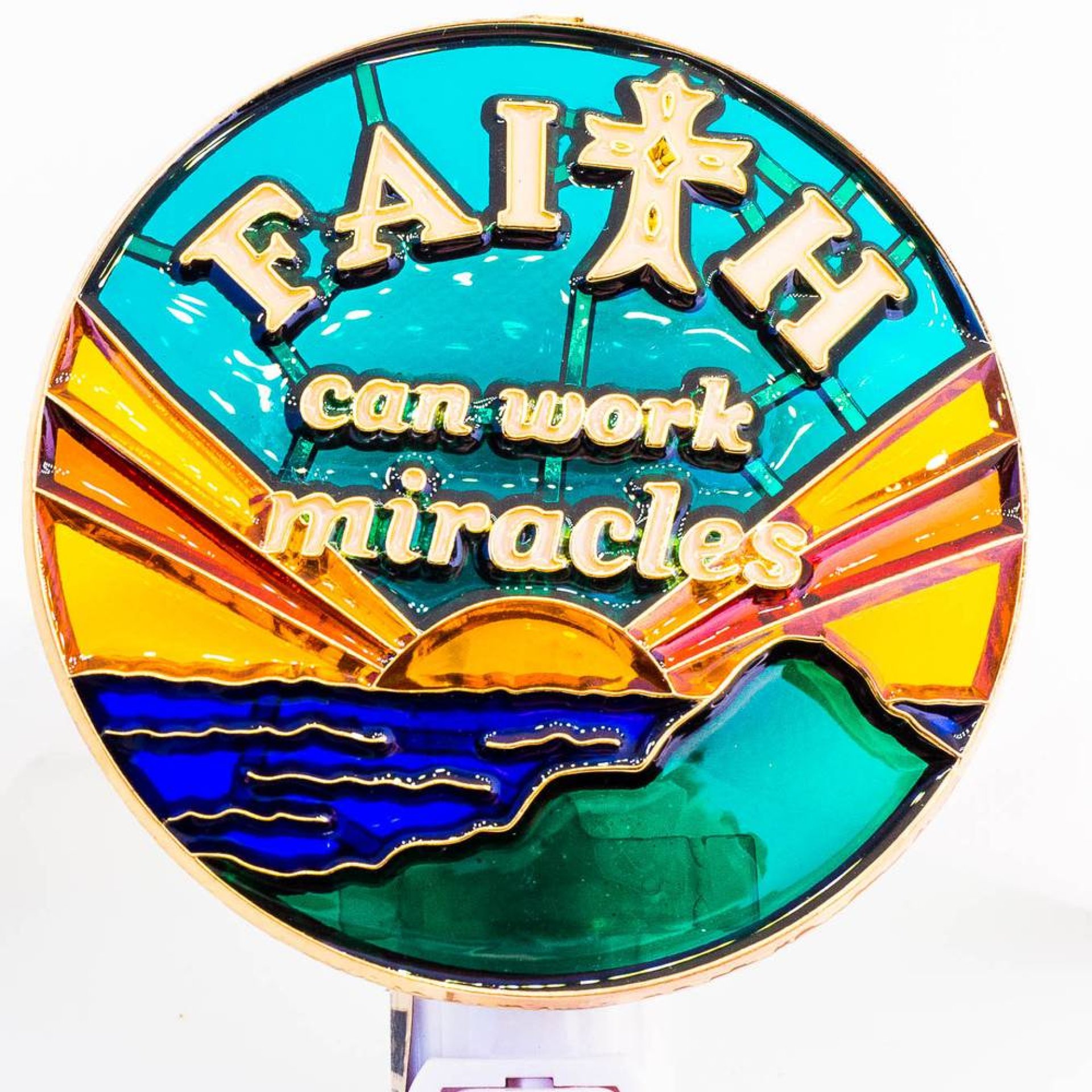 Nightlight featuring bright sunrise with the words "Faith Can Work Miracles"