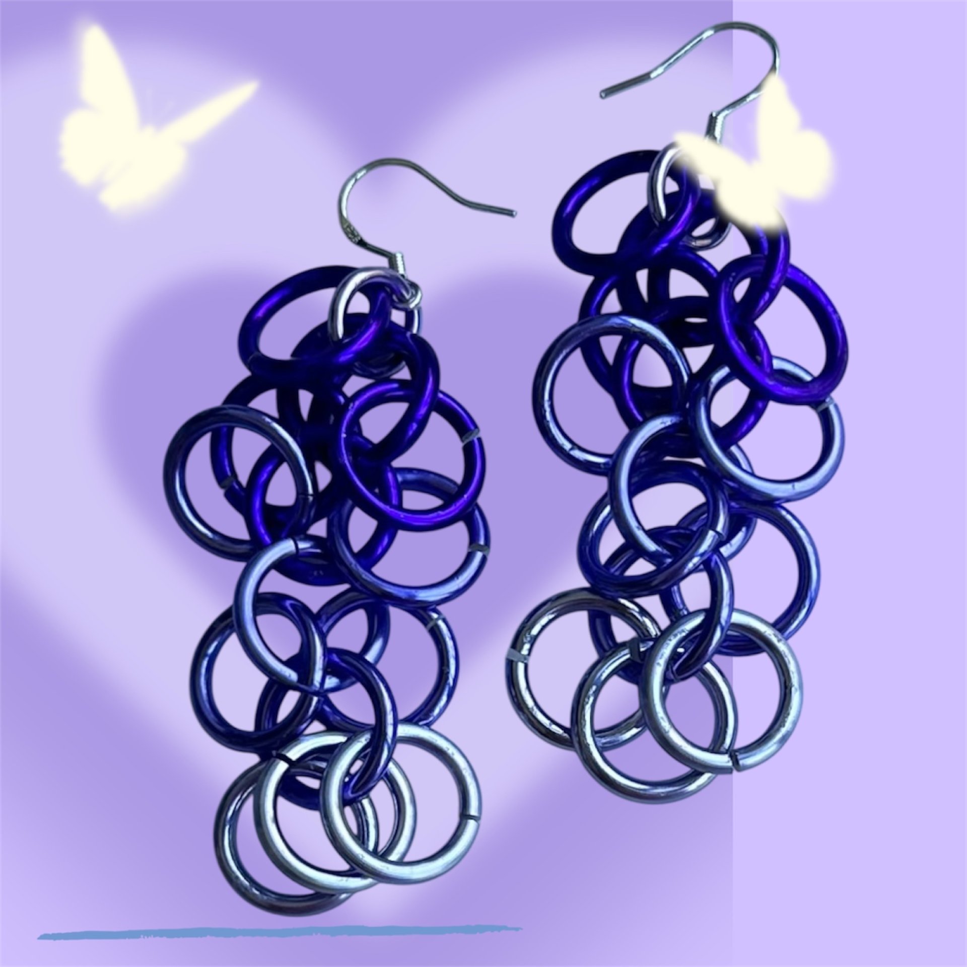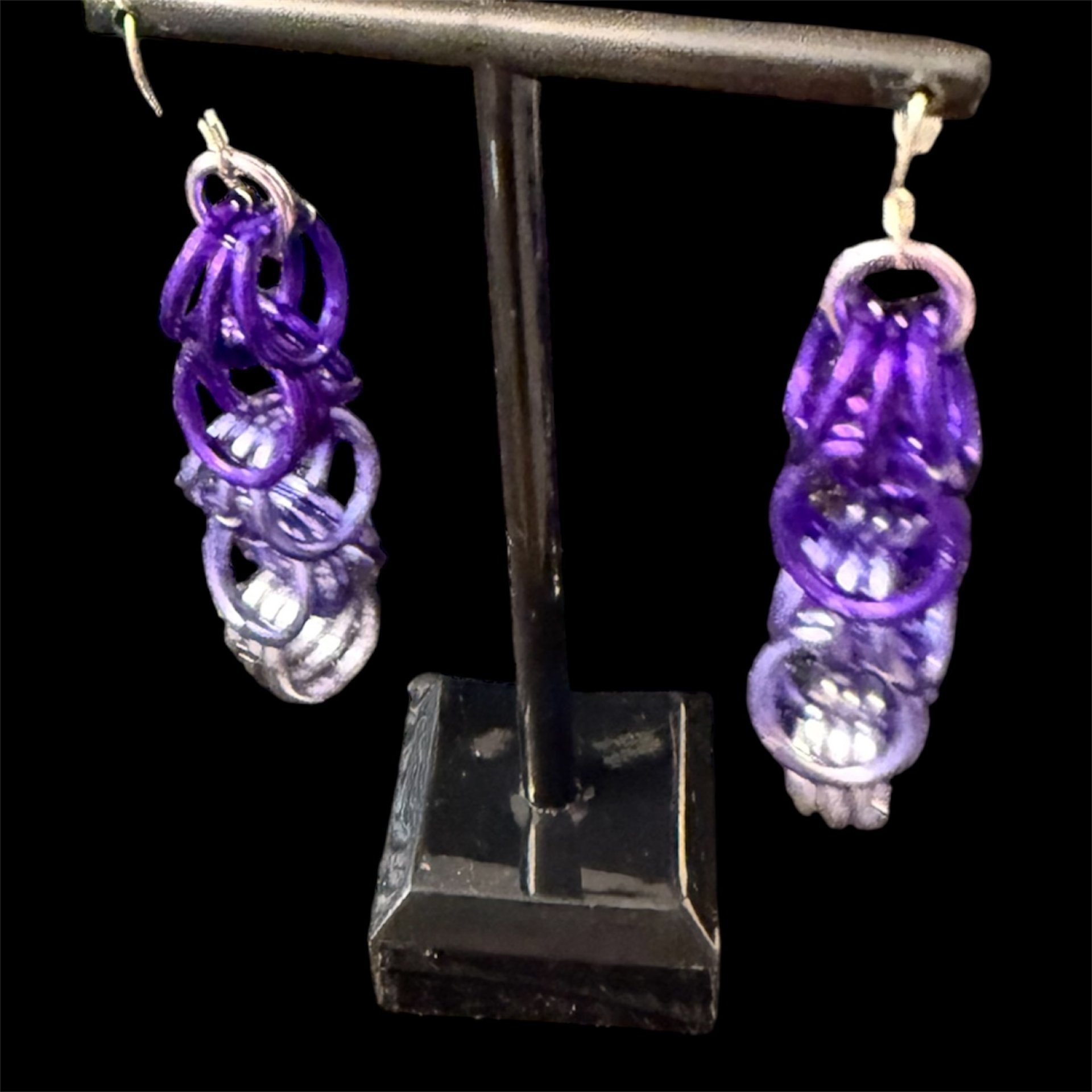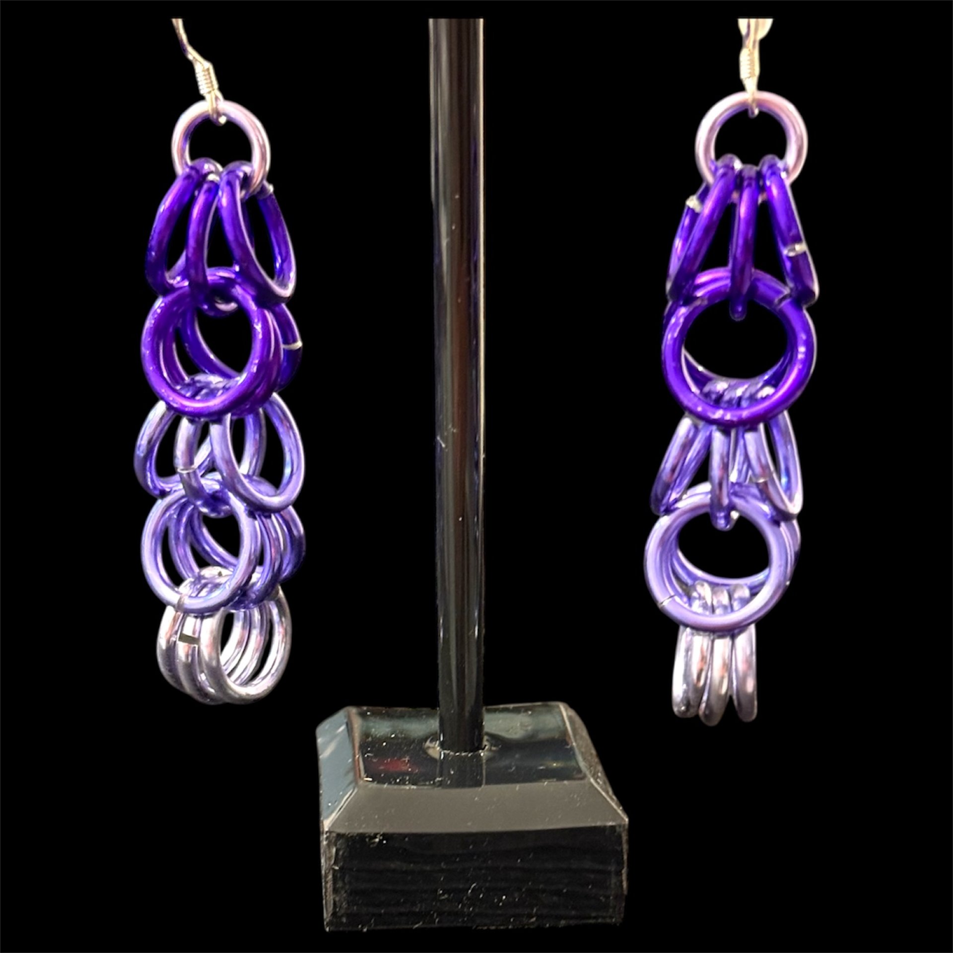 I hand-wove these jump rings together using the "shaggy loop" chain maille design. The purples form an ombre effect.
