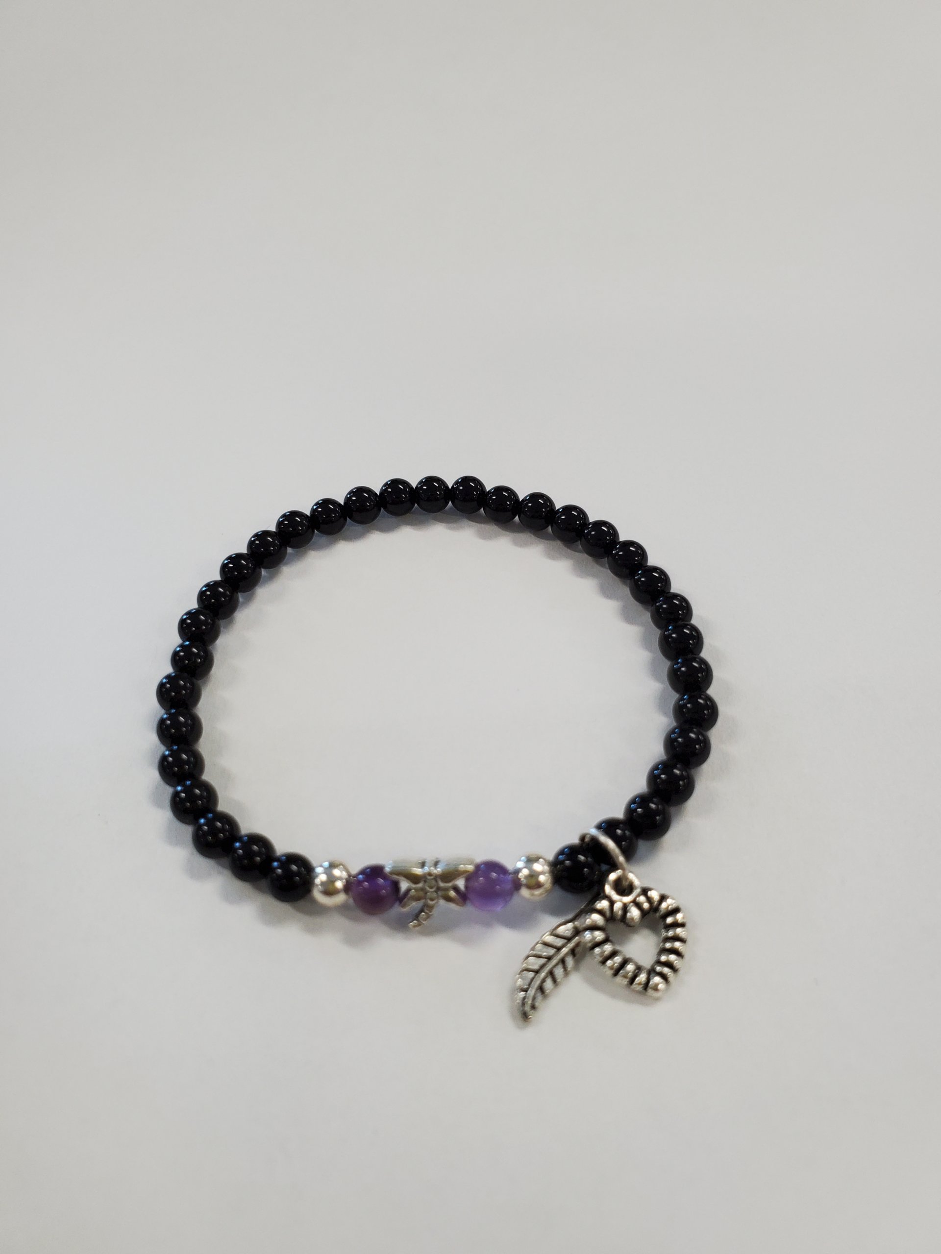This bracelet includes beads of onyx and amethyst and serves as a reminder of the challenges faced by those affected by addiction and overdose, as well as the hope for recovery and support from the community.