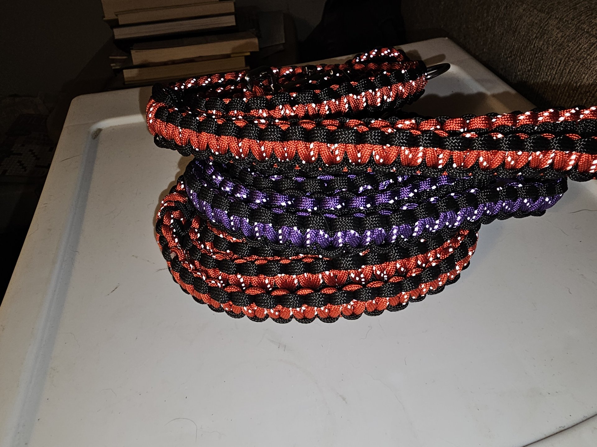 Elevate your dog-walking experience with our durable and stylish Reflective Paracord Leashes. These leashes are designed for ultimate safety and convenience.