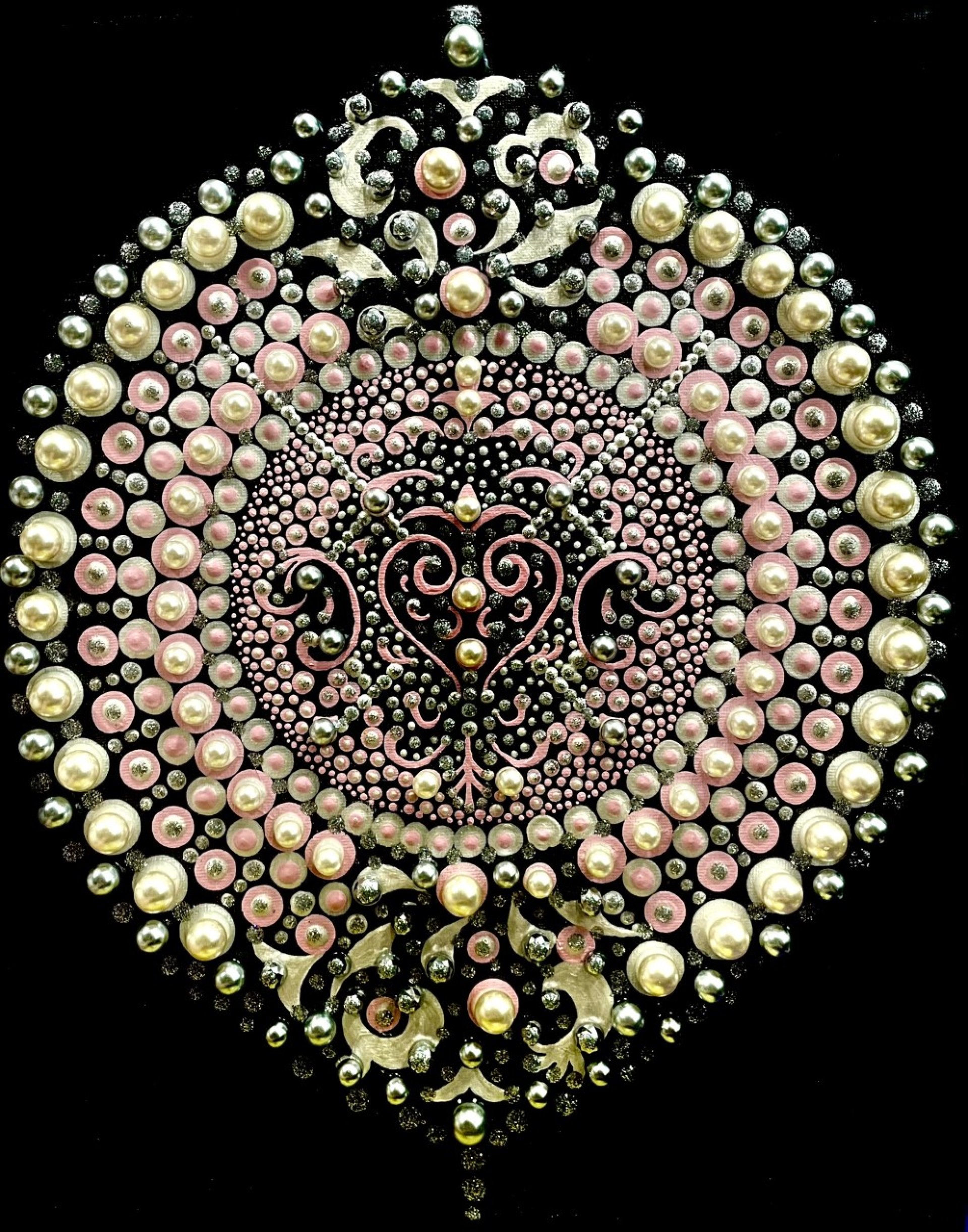 This piece is offered as a special request commissioned piece. This was a commissioned piece that was sold. If interested, please reach out to me to discuss the details of what might be of interest to you. This piece was made with acrylic paints using Dot Art technique, then I added both ivory and light pink pearls for the finished look. This particular piece was made on a 12" x 12" canvas. Prices will be determined by size and specific requests.