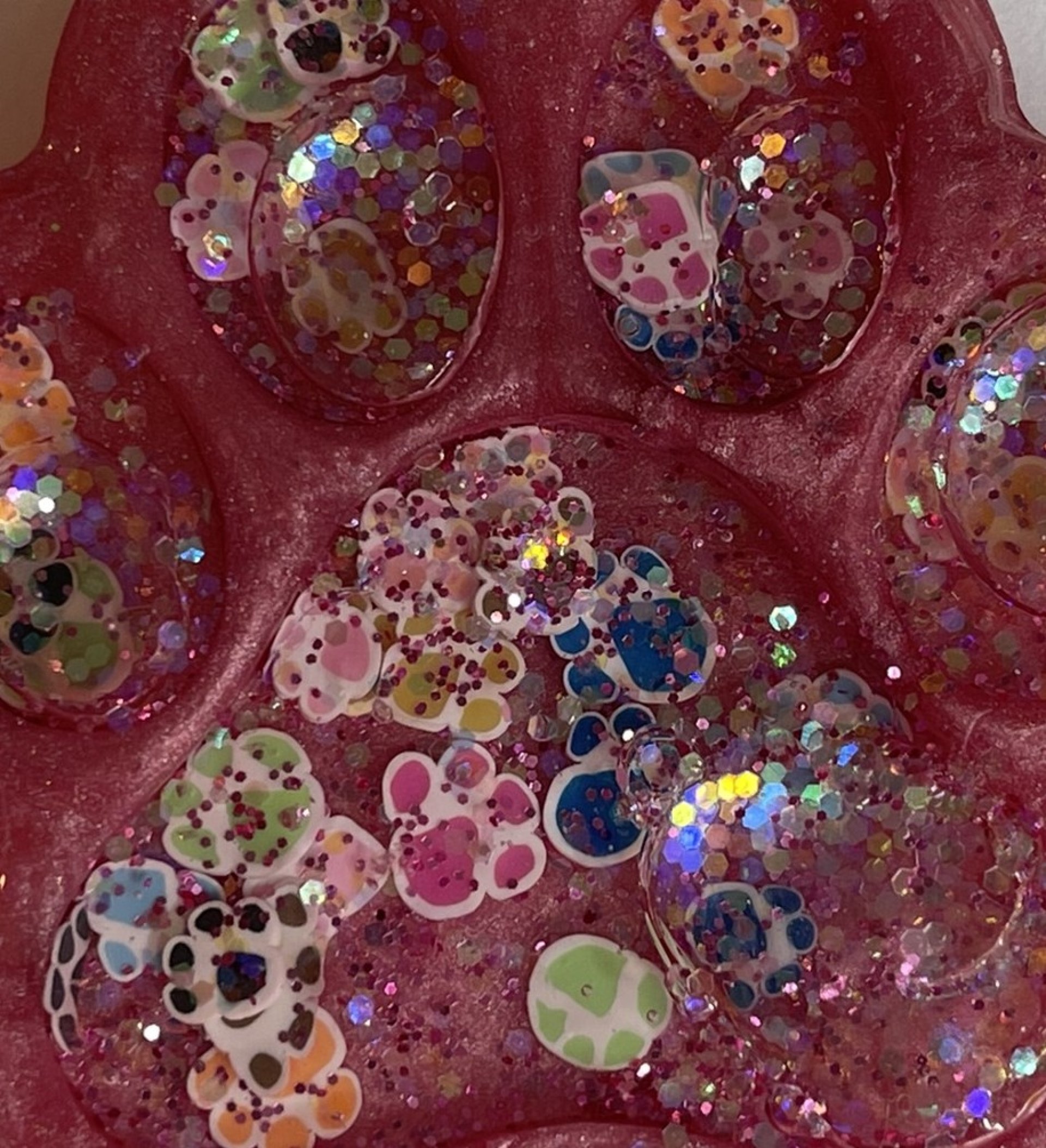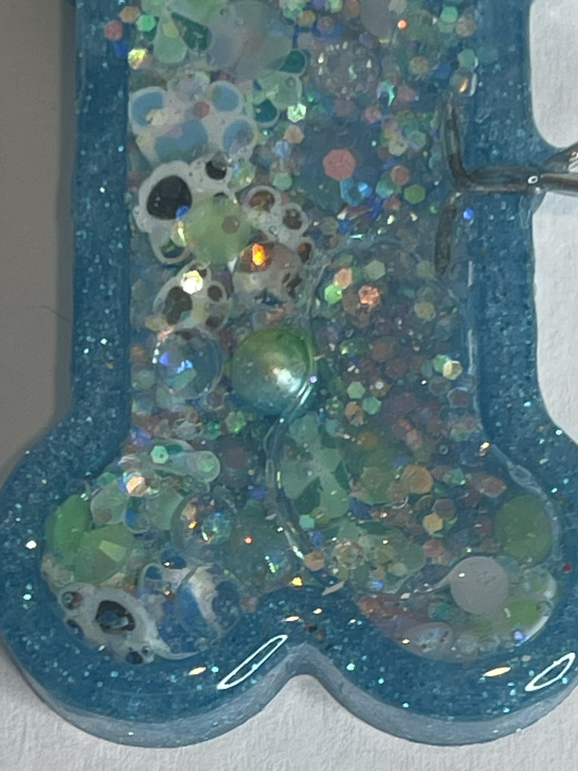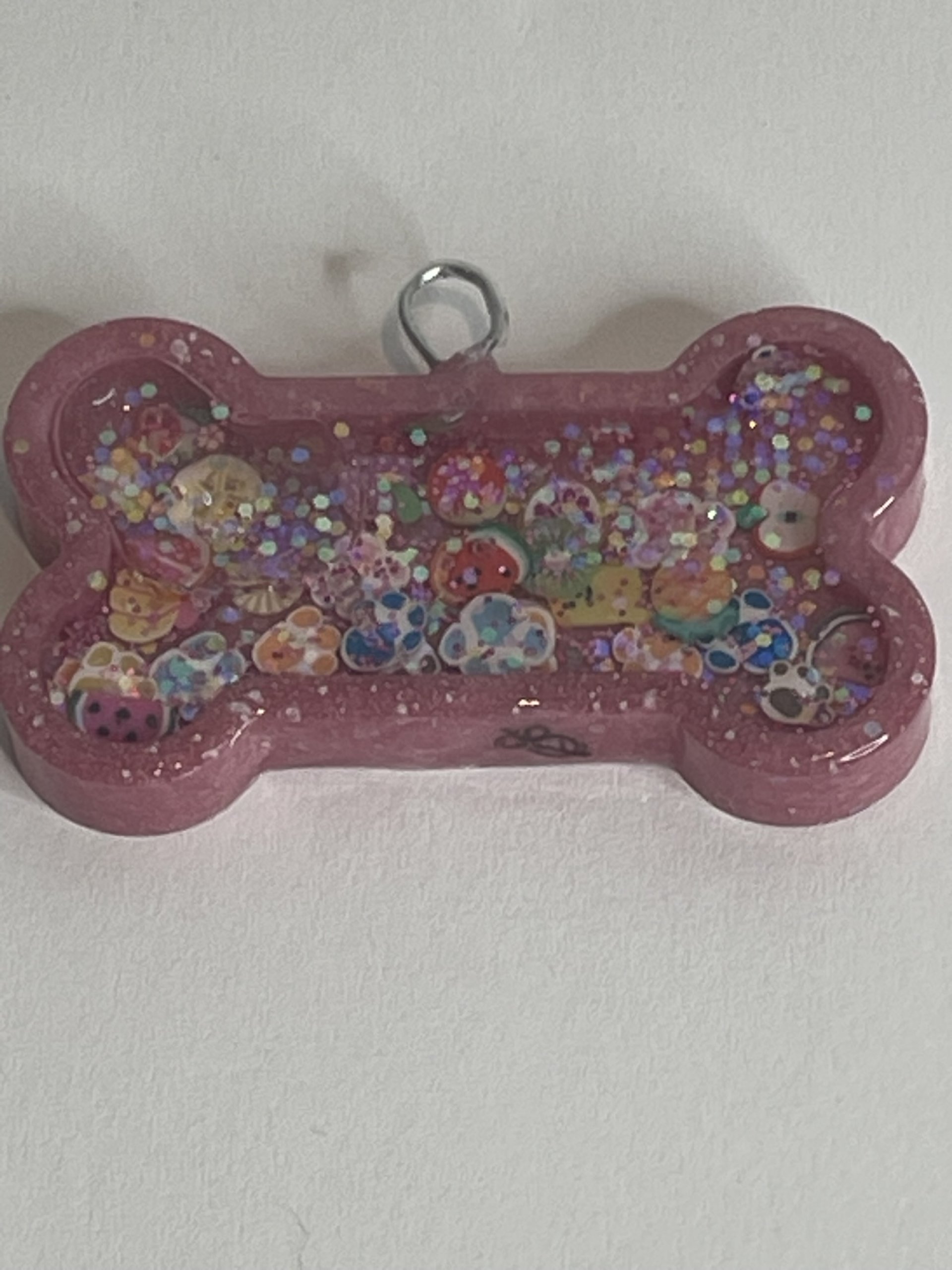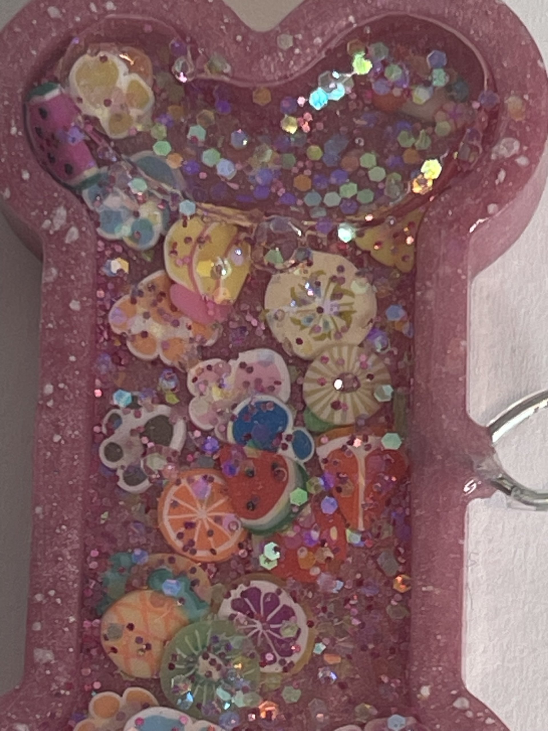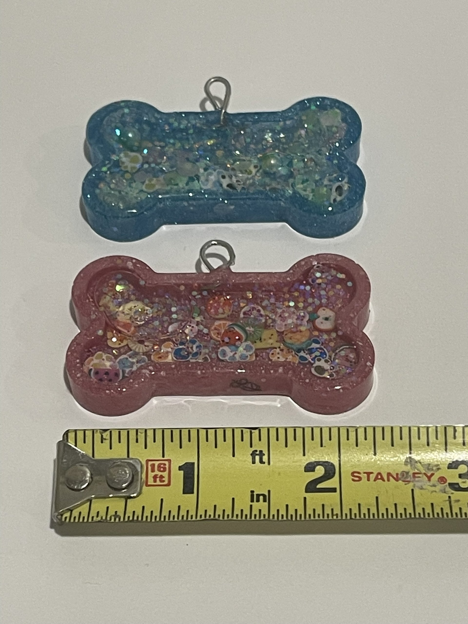These fun, handmade shakers are great accessories for your dog or cat collar, for showing your love on a key ring, or to decorate your purse/handbag. They are all handmade and are unique. They great fidget toys. They are hand-poured with pigments and/or glitters. The interiors have fun glitters, shapes, etc. and some are filled with liquid. They can be personalized - just contact me to arrange.
