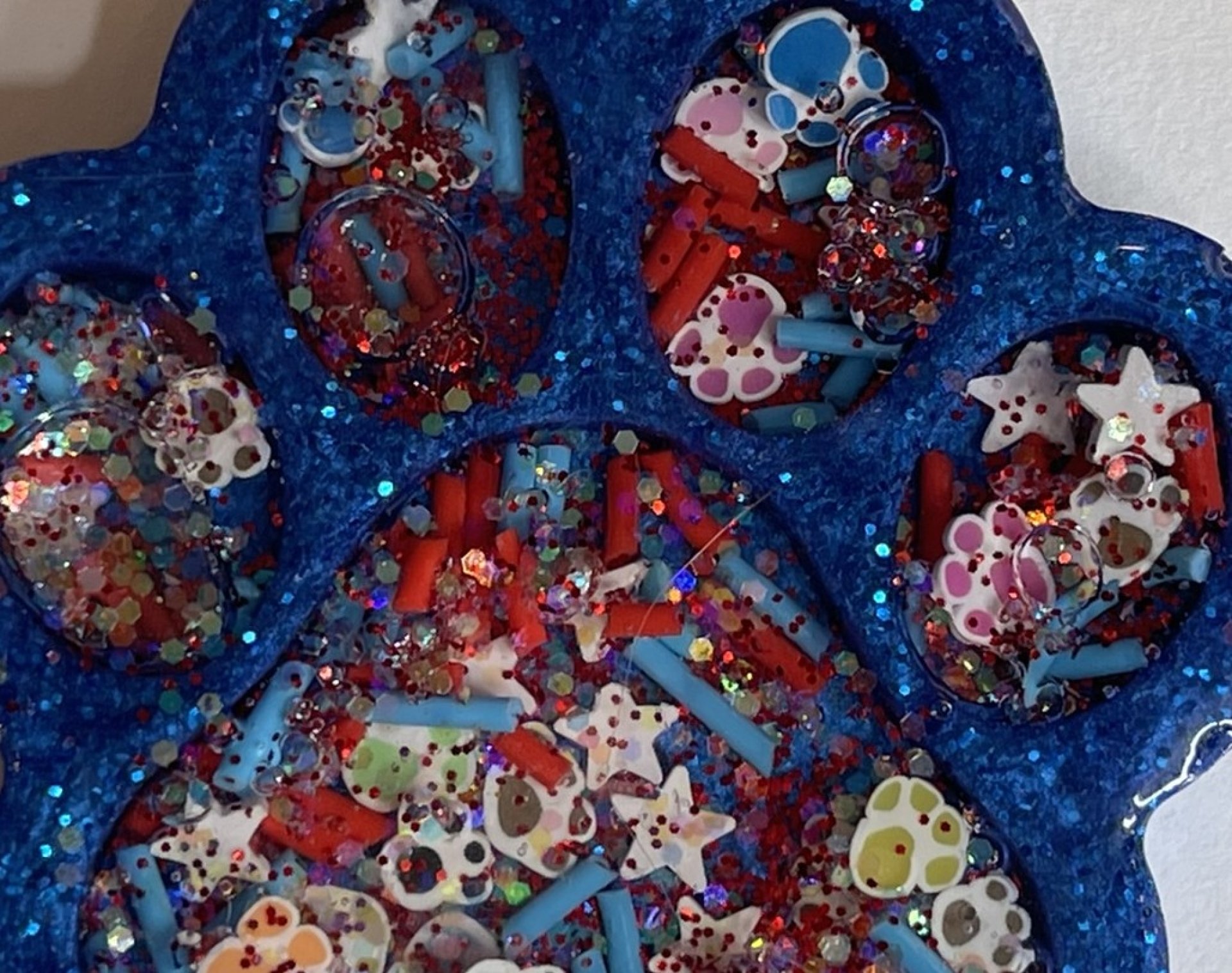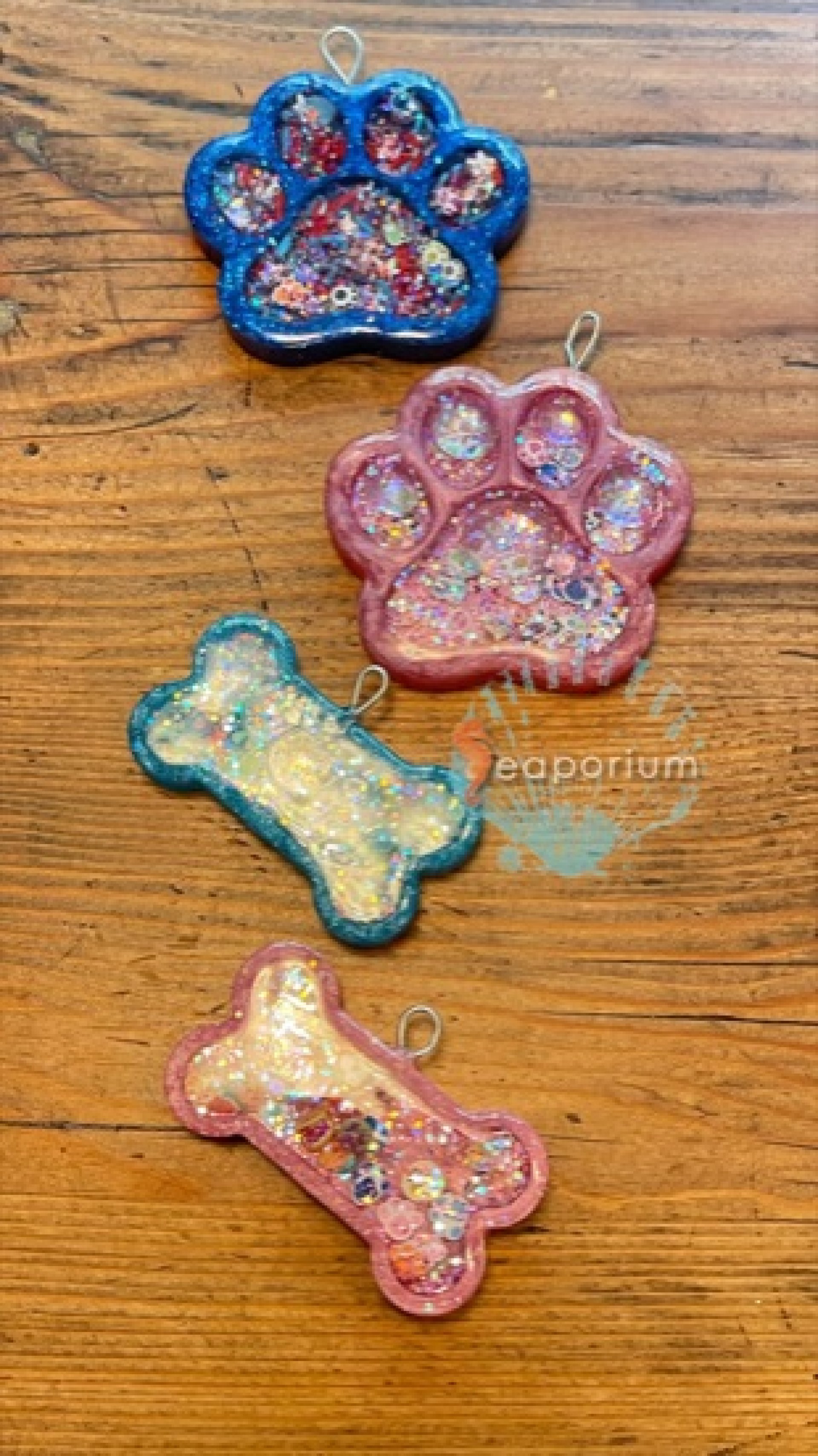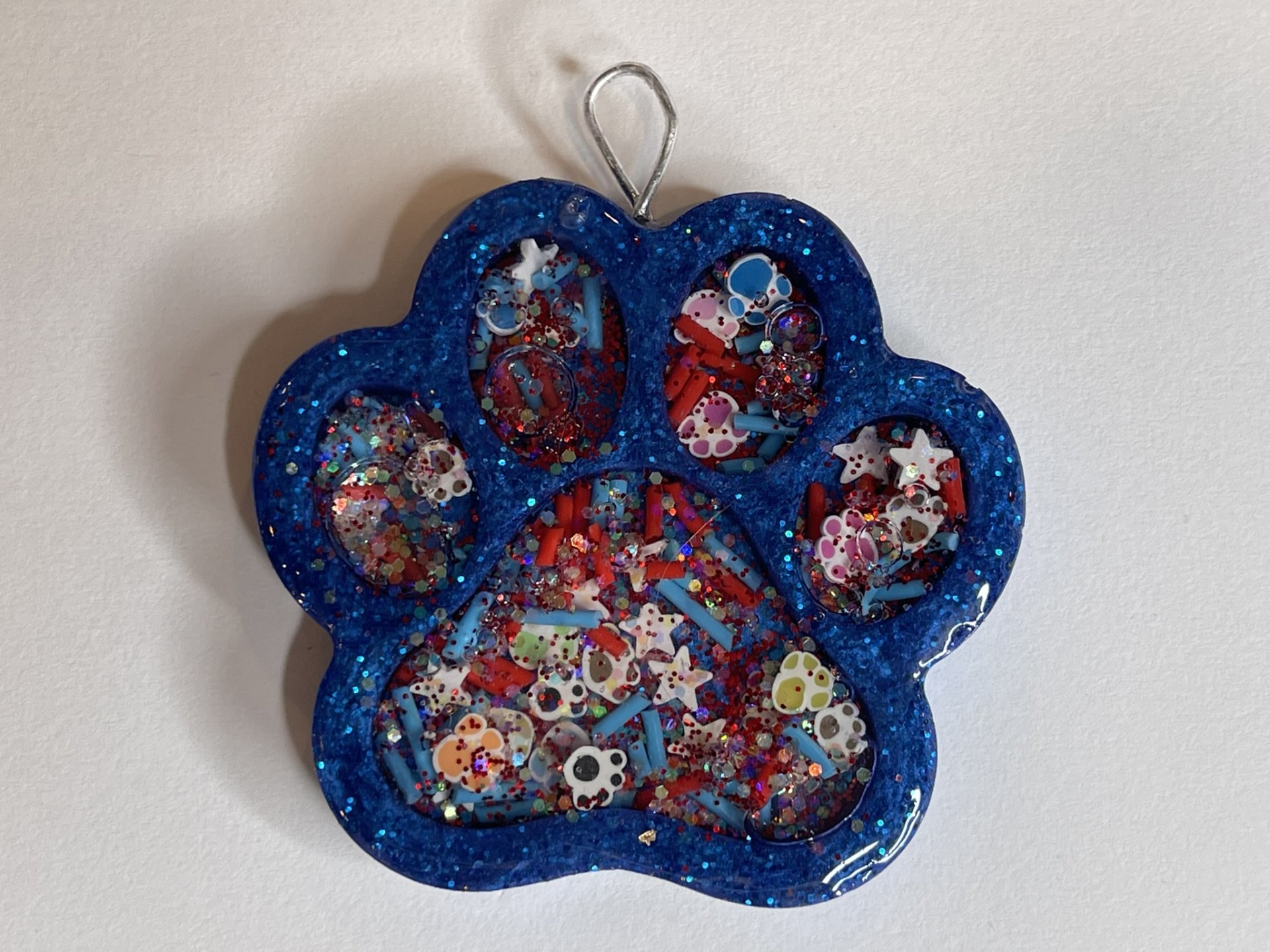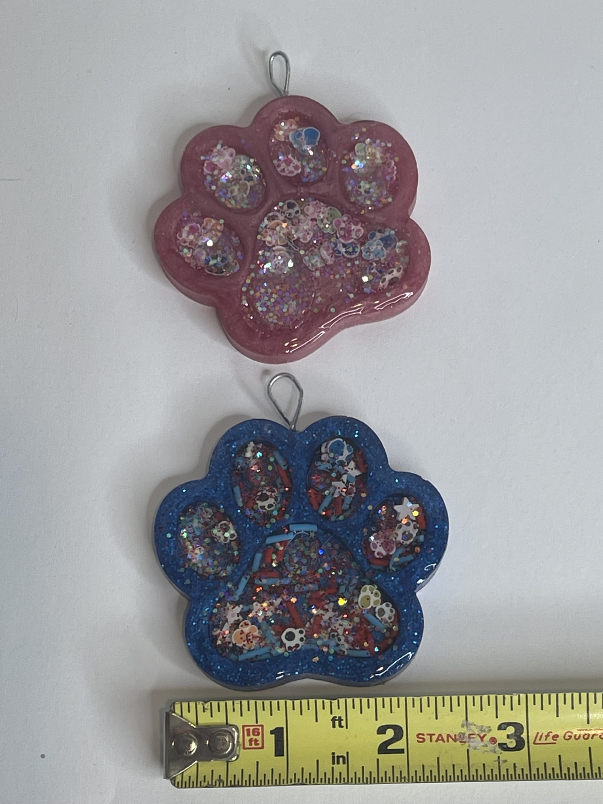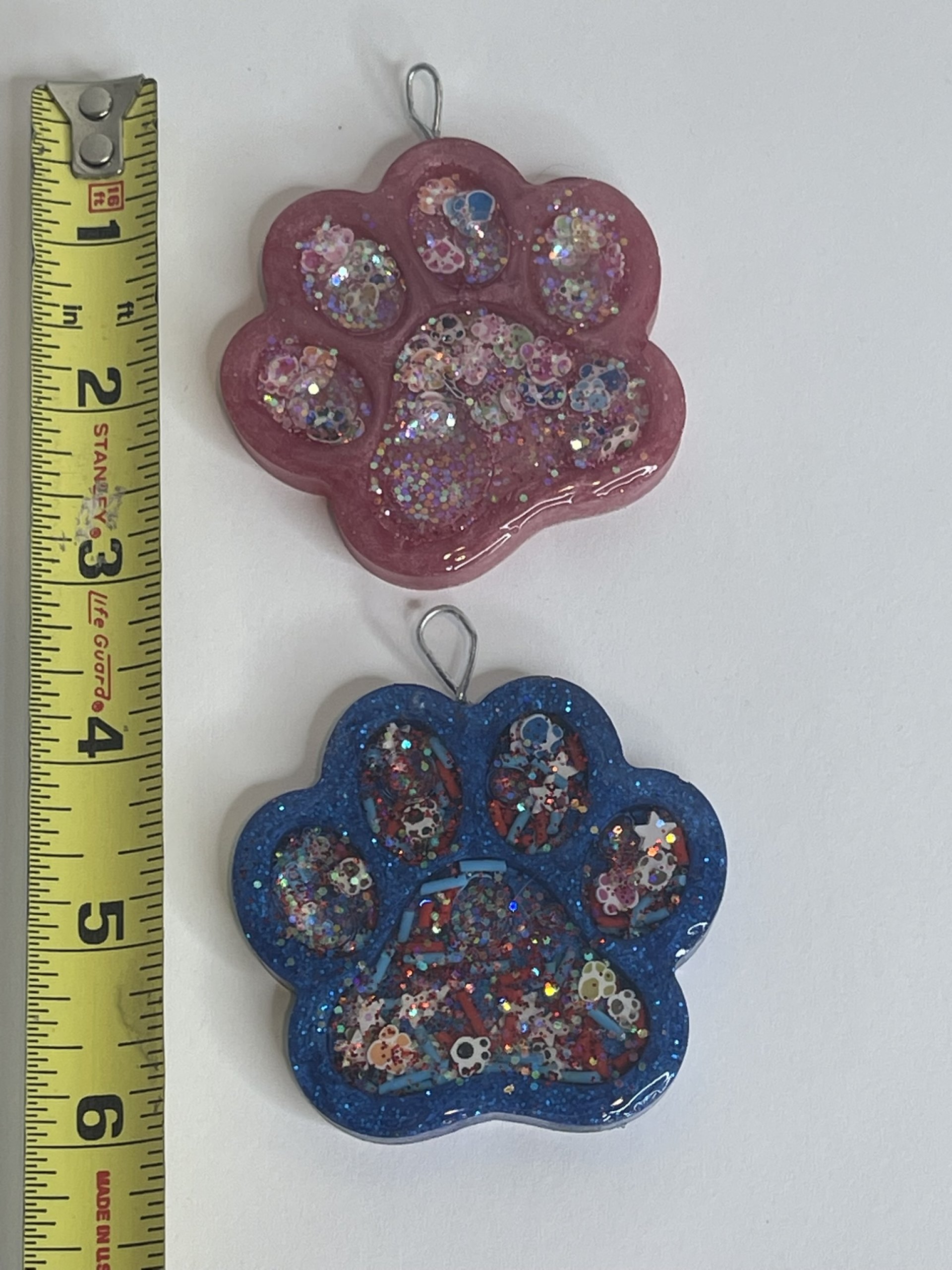 These fun, handmade shakers are great accessories for your dog or cat collar, for showing your love on a key ring, or to decorate your purse/handbag. They are all handmade and are unique. They great fidget toys. They are hand-poured with pigments and/or glitters. The interiors have fun glitters, shapes, etc. and some are filled with liquid. They can be personalized - just contact me to arrange.