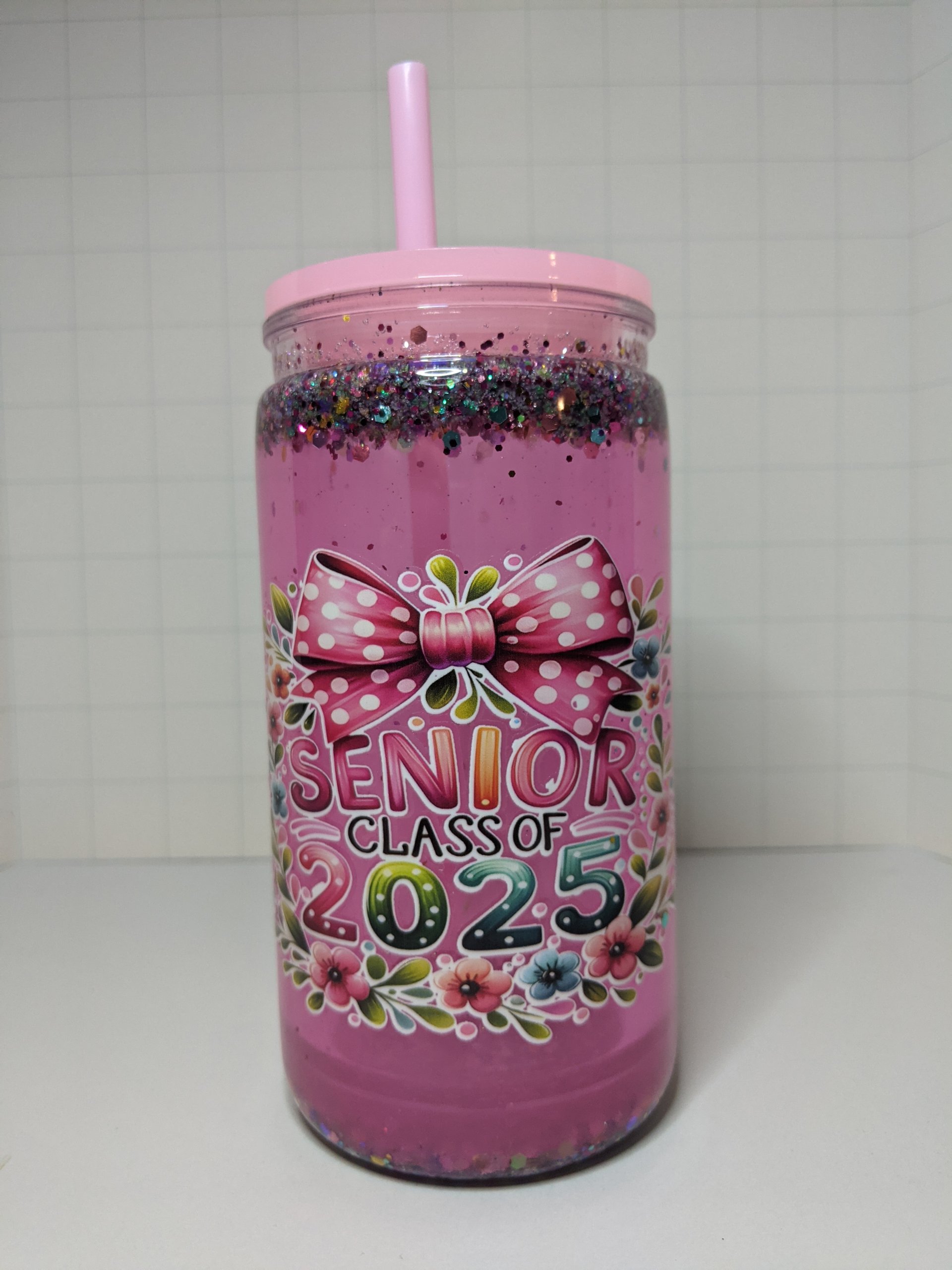 Pink Snow Globe Tumbler 16oz Graduation Senior 2025