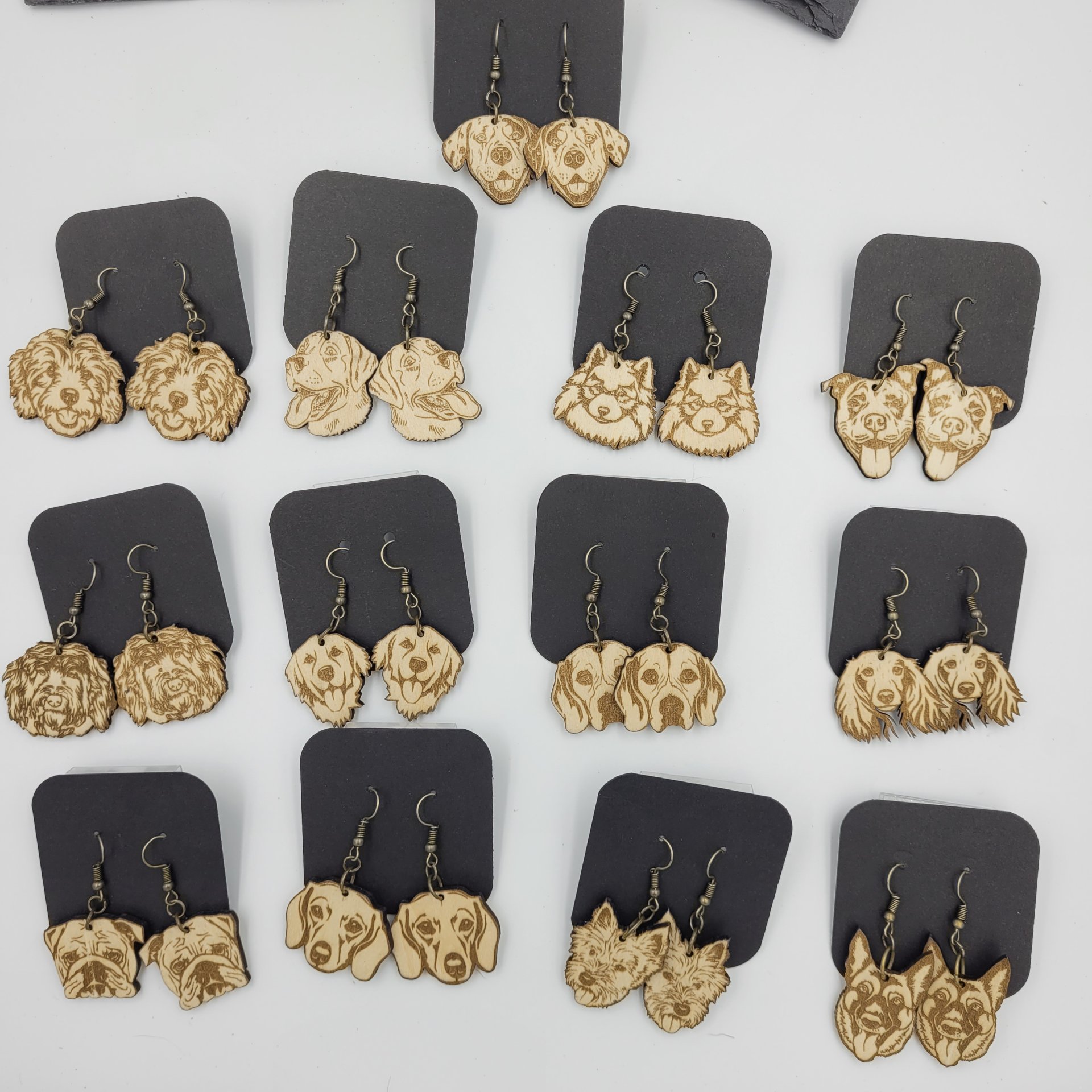 These lightweight, wood-burned dog earrings are a charming accessory for any occasion. With hypoallergenic hooks, they are ideal for those with sensitive ears. Available in a variety of breeds, don't forget to check out my other styles too! Whether you're dressing up for a special event or adding a fun element to your everyday look, these earrings are sure to make an impression. Each pair beautifully showcases the unique features of different dog breeds. They also make a wonderful gift for the dog lovers in your life. Seize the opportunity to own a piece of wearable art that honors the joy and companionship of our furry friends. Happy shopping!