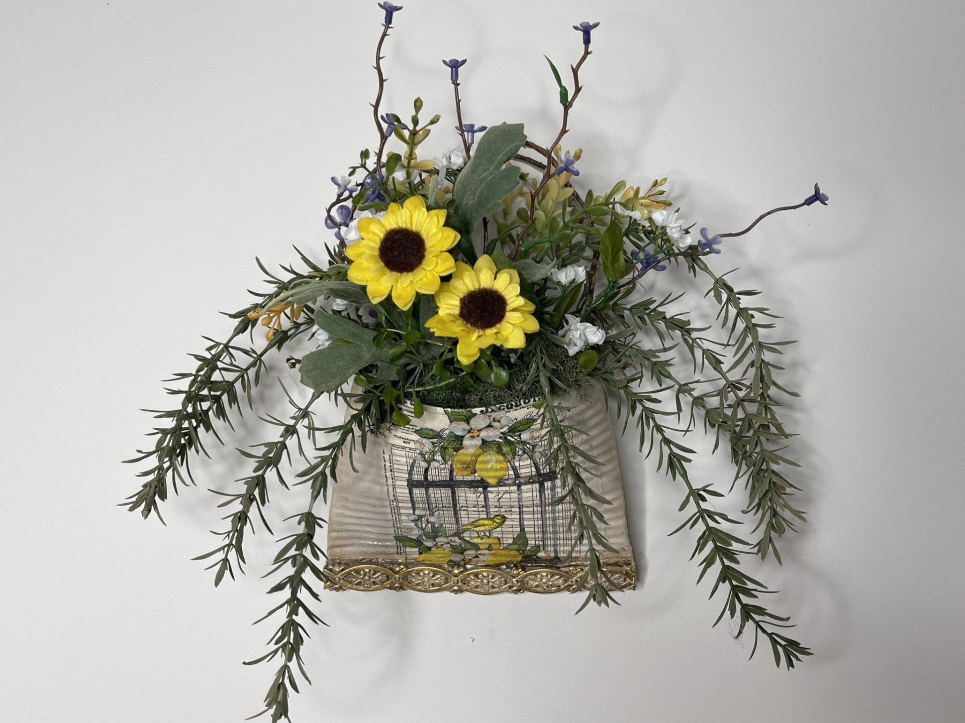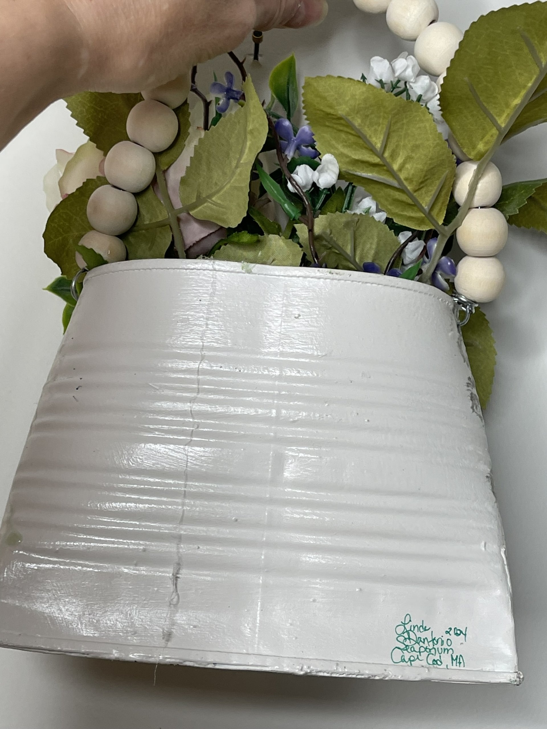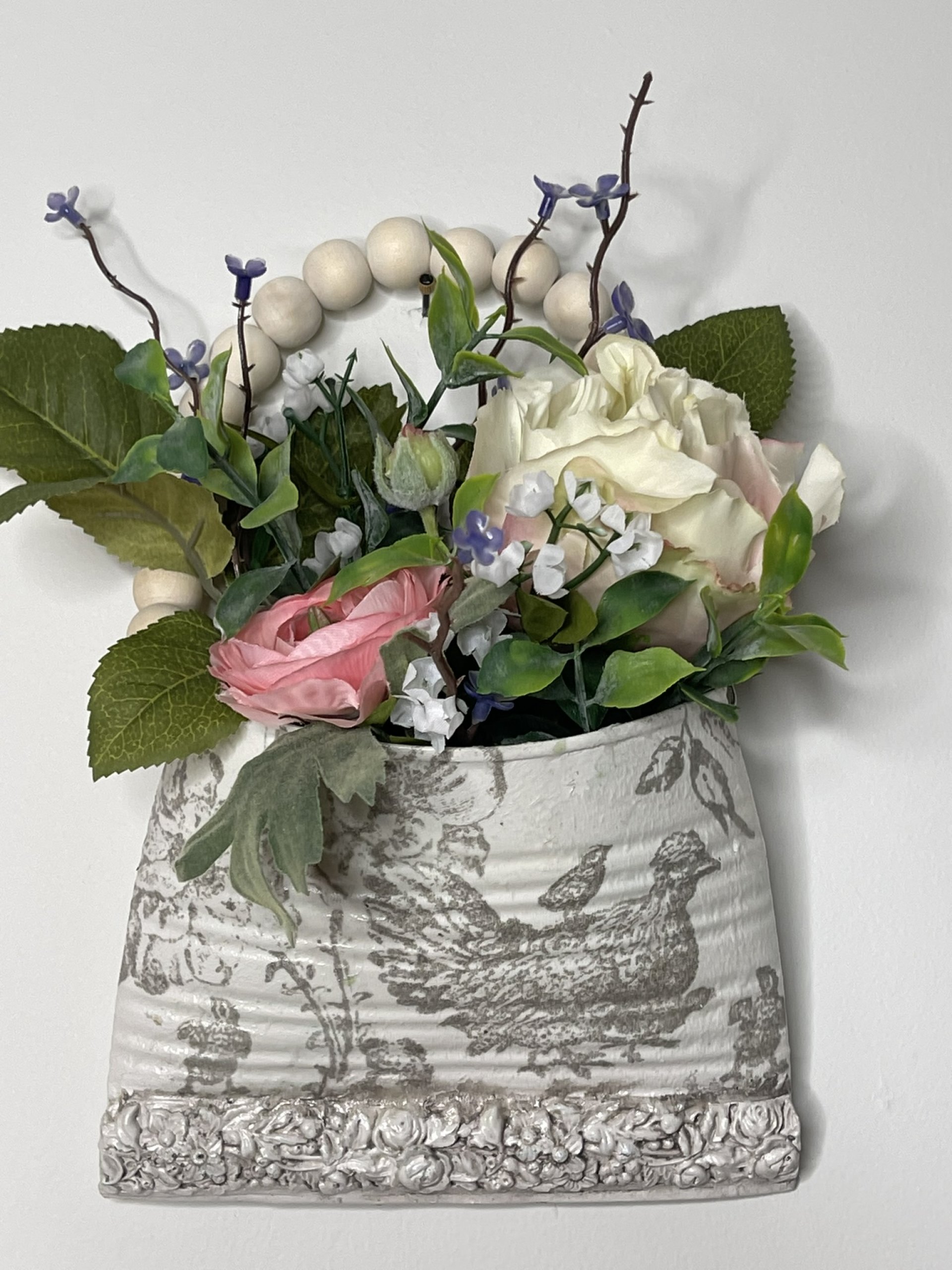 Posie Pockets are made from reycyled tin cans. Yup! That's right! I recycle soup cans, sauce cans... into these cute wall mounted Posie Pockets. You don't have to use as a flower sconce. You can remove the flowers and use as a wall organizer for mail, papers, homework, pens, brushes...