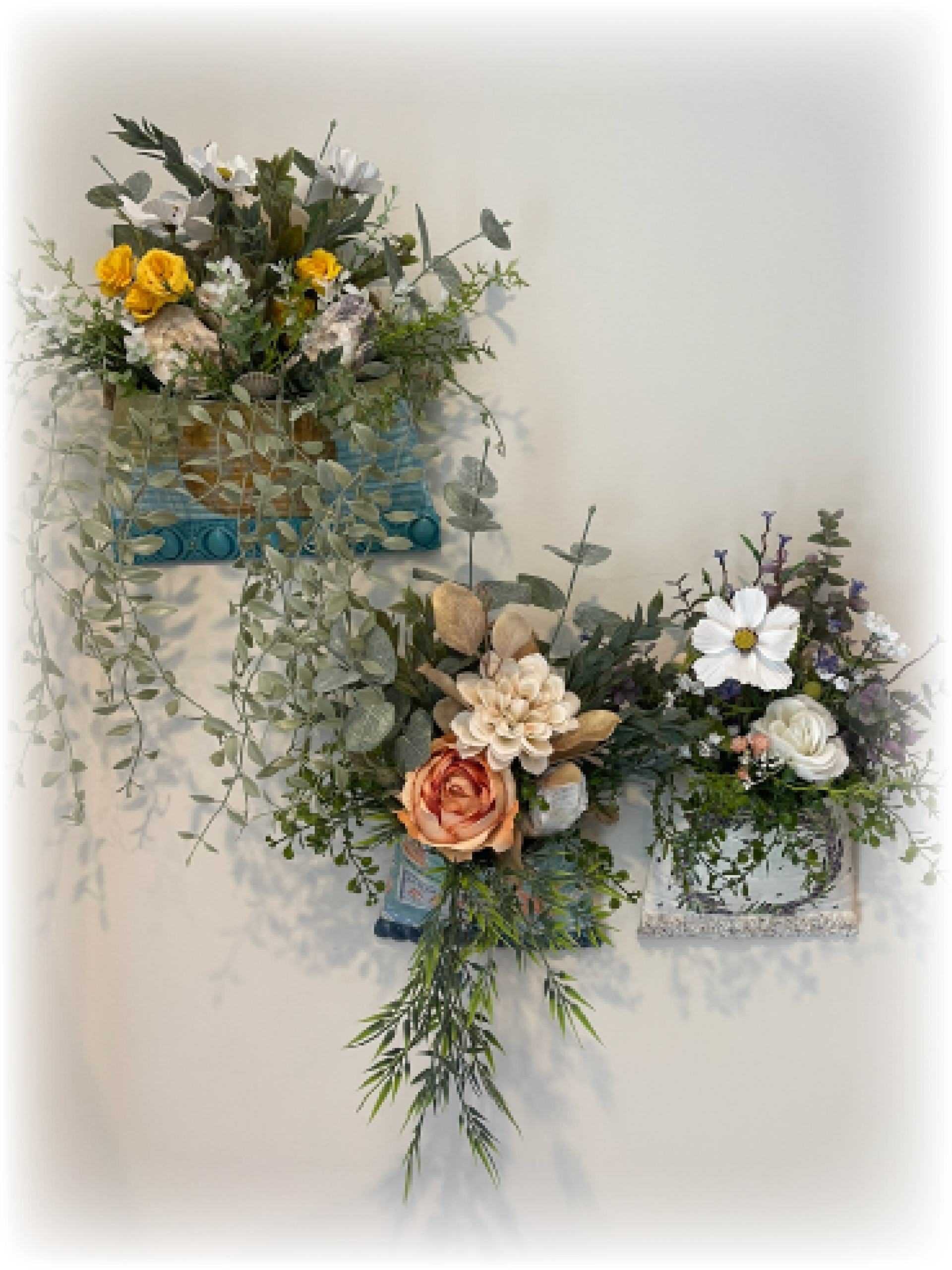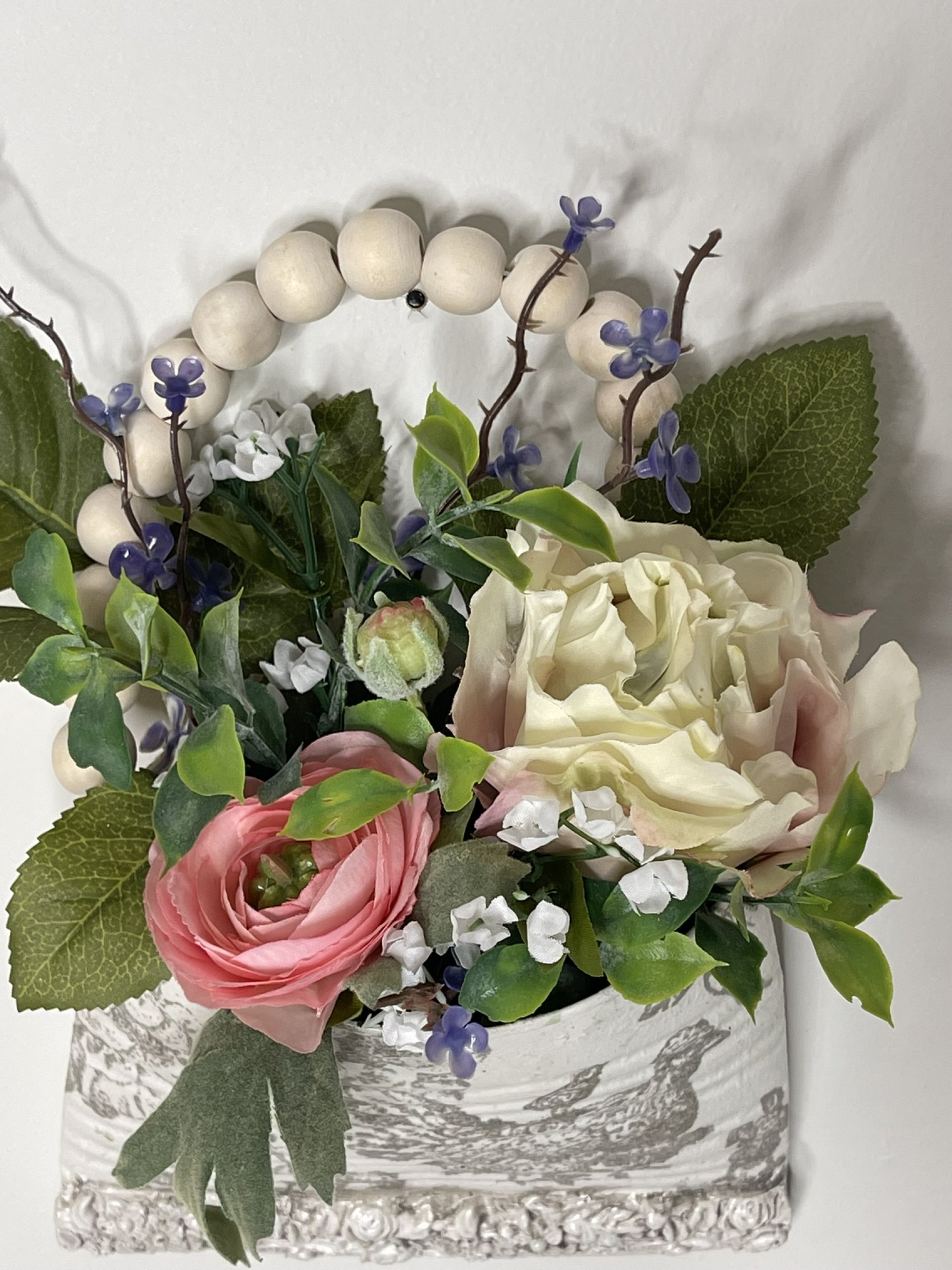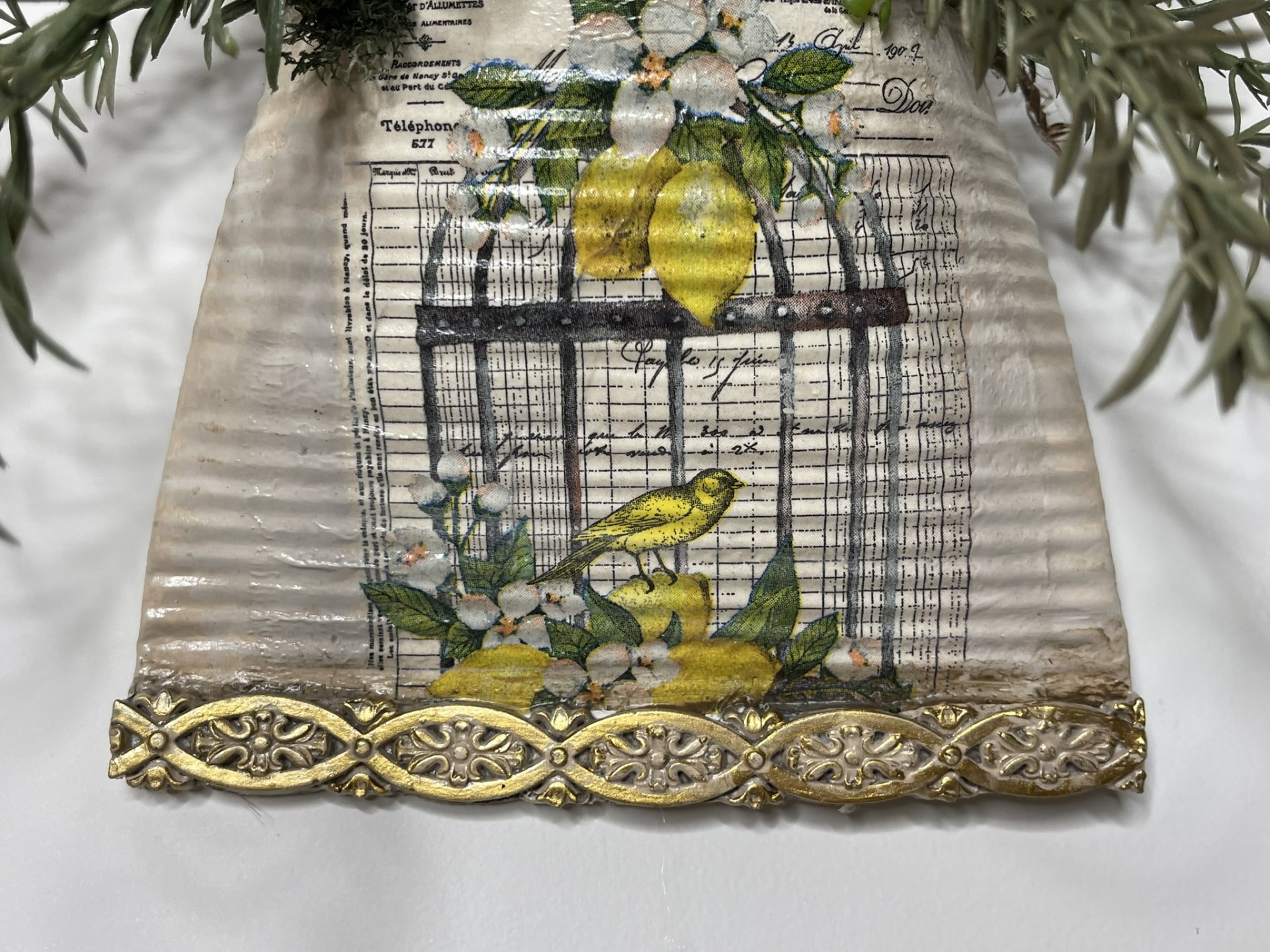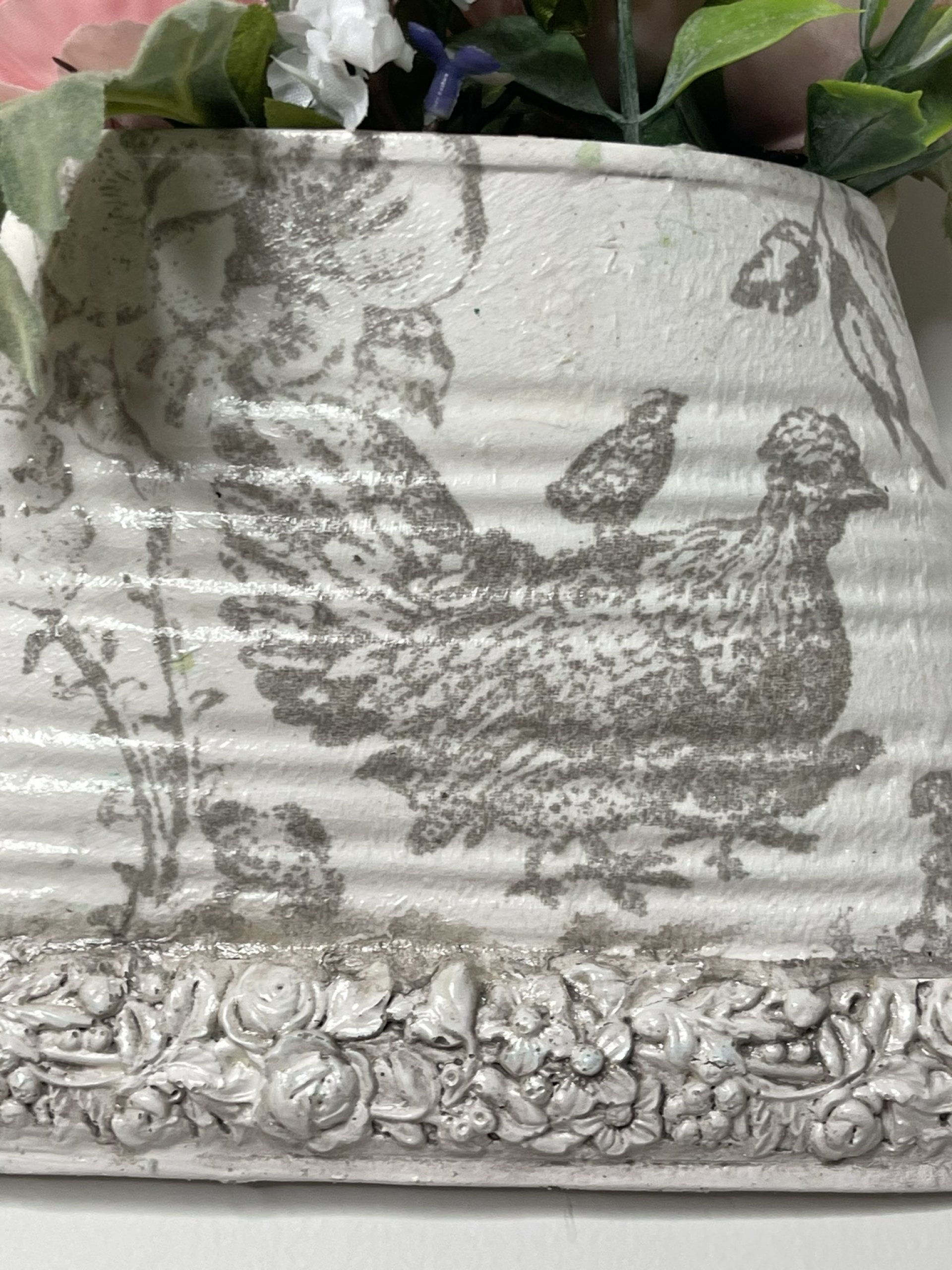 Posie Pockets are made from reycyled tin cans. Yup! That's right! I recycle soup cans, sauce cans... into these cute wall mounted Posie Pockets. You don't have to use as a flower sconce. You can remove the flowers and use as a wall organizer for mail, papers, homework, pens, brushes...