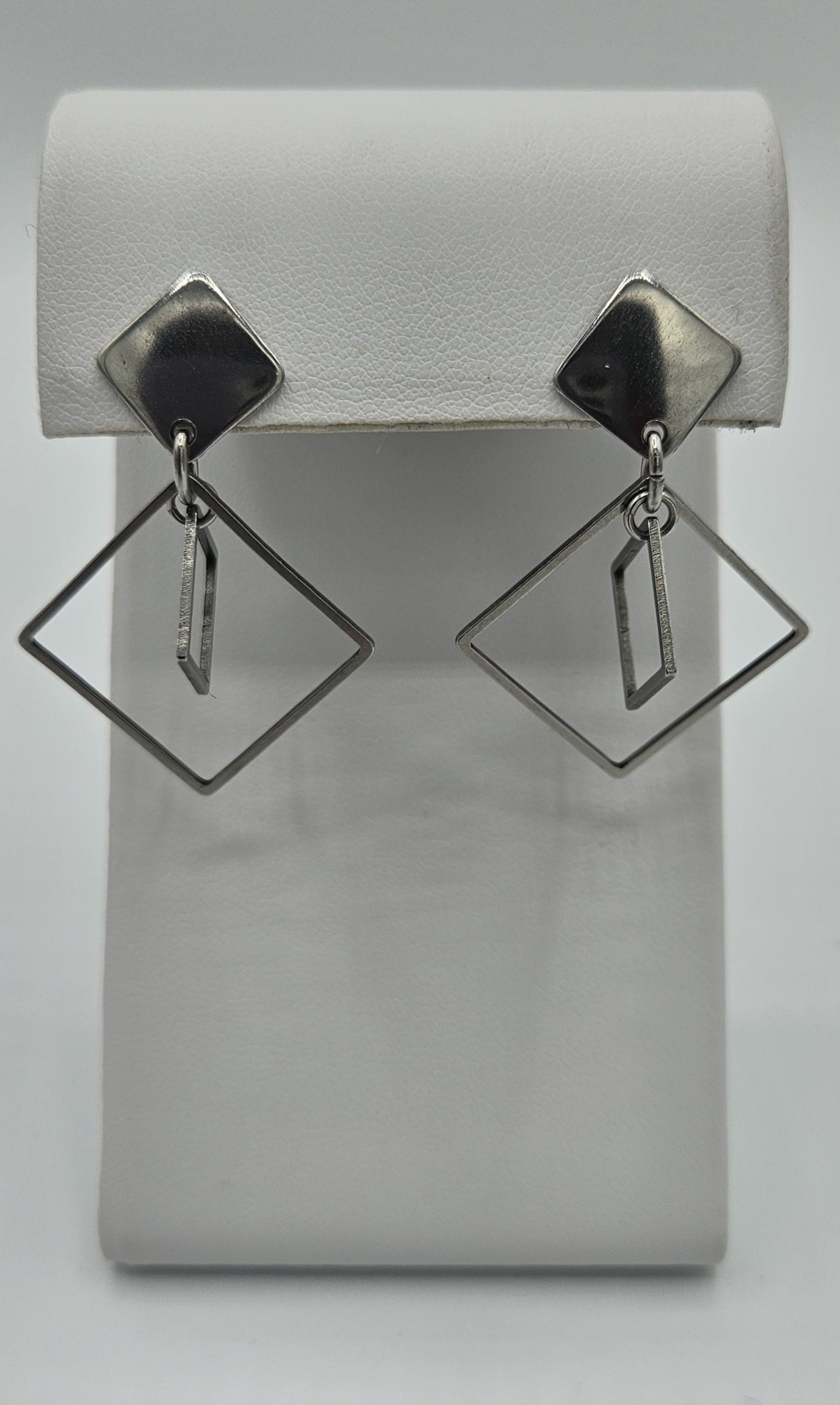 These earrings are made of hypoallergenic stainless steel. They are about 1.5 inches total length by about an inch wide.